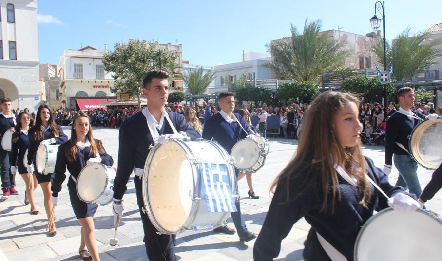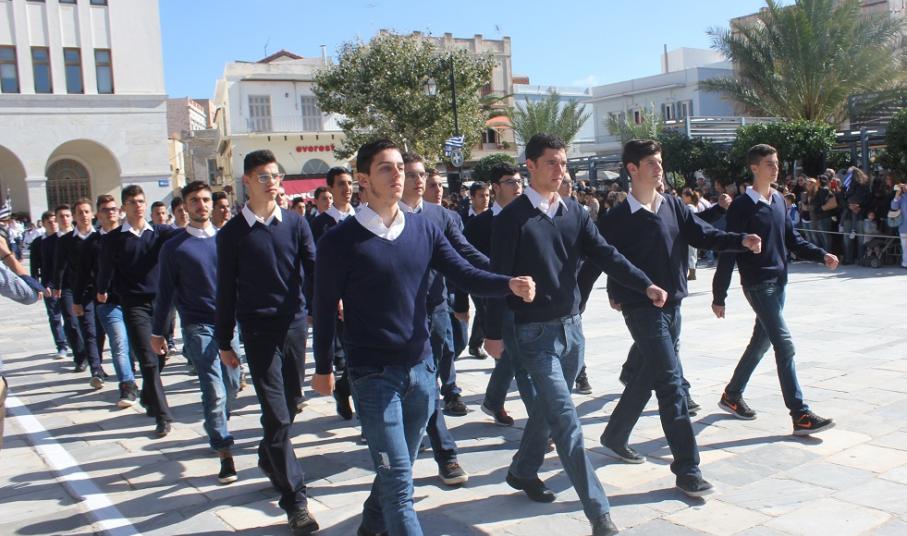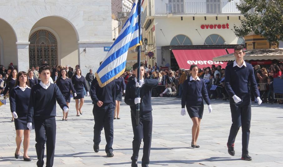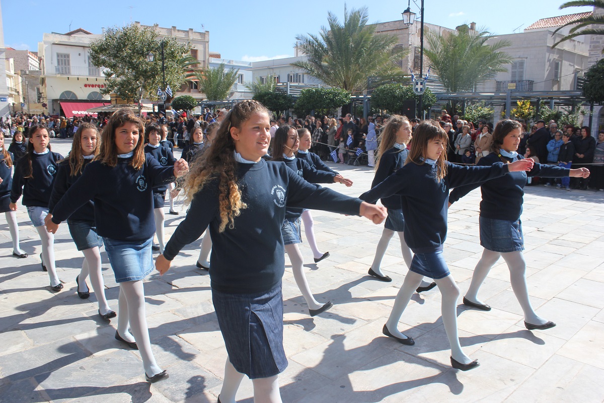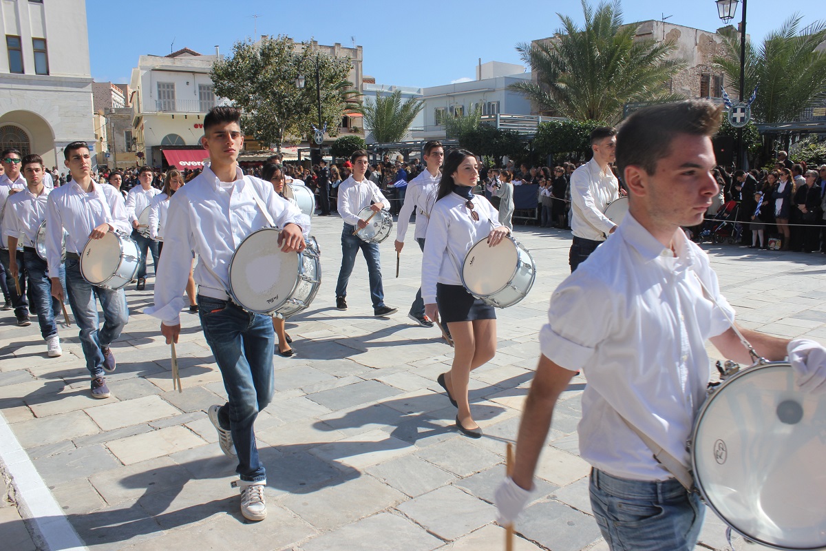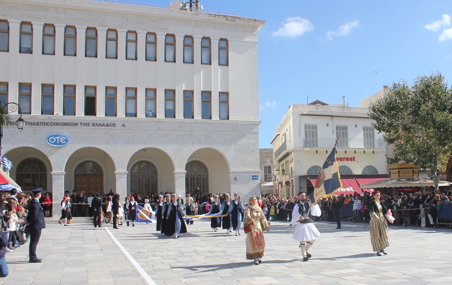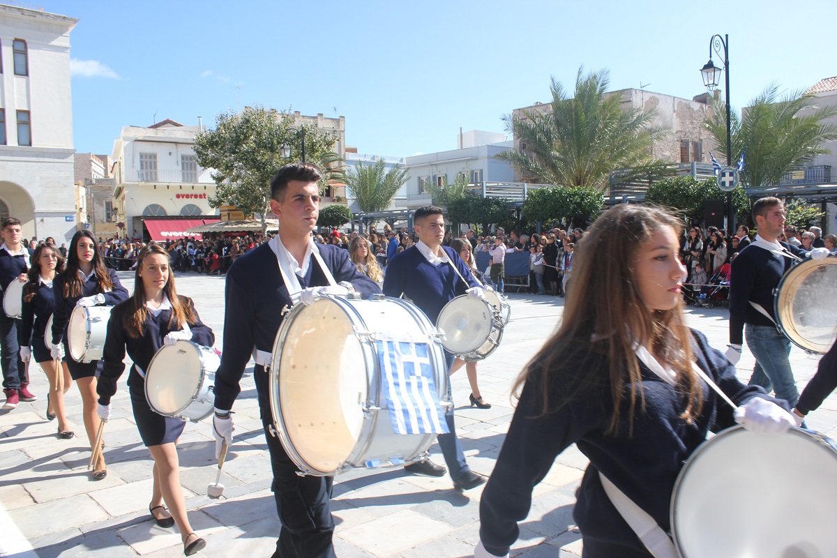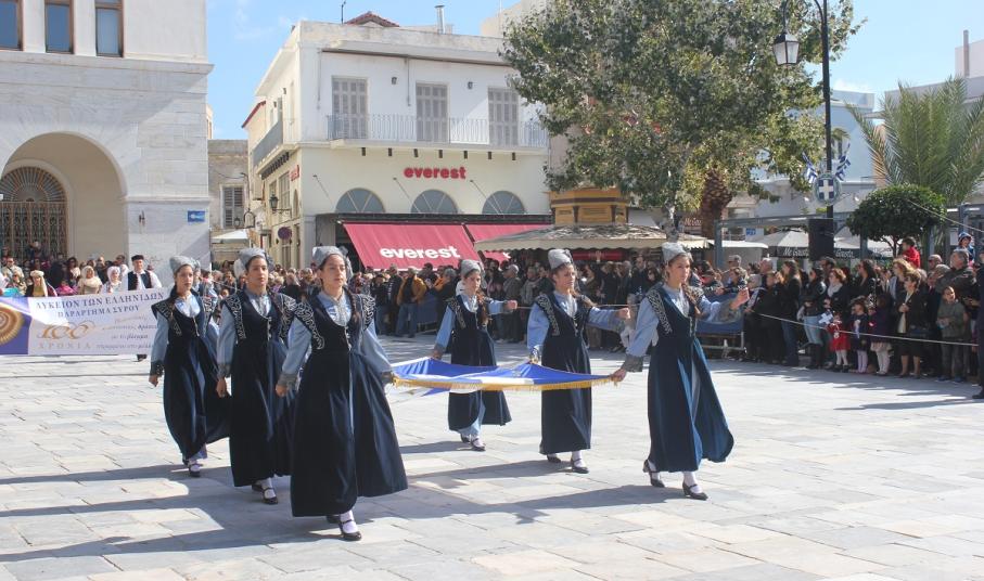 Στη συνέχεια πραγματοποιήθηκε η καθιερωμένη μαθητική παρέλαση στην πλατεία Μιαούλη, στην οποία συμμετείχαν επίσης η Φιλαρμονική του Δήμου Σύρου – Ερμούπολης, το Λύκειο Ελληνίδων Σύρου, ο Πολιτιστικός Σύλλογος Κρητών Σύρου, ο Σύλλογος Ποντίων και Βορειοελλαδιτών Σύρου ο Λαογραφικός Χορευτικός Όμιλος «η σοφία της παράδοσης», σπουδαστές της Ακαδημίας Εμπορικού Ναυτικού Σύρου, ο Ναυτικός Όμιλος Σύρου, ο Αθλητικός Σύλλογος Tae Kwon Do Ερμούπολης και το Σώμα Ελλήνων Προσκόπων.