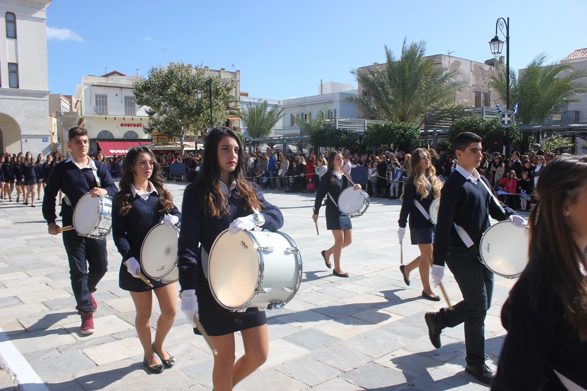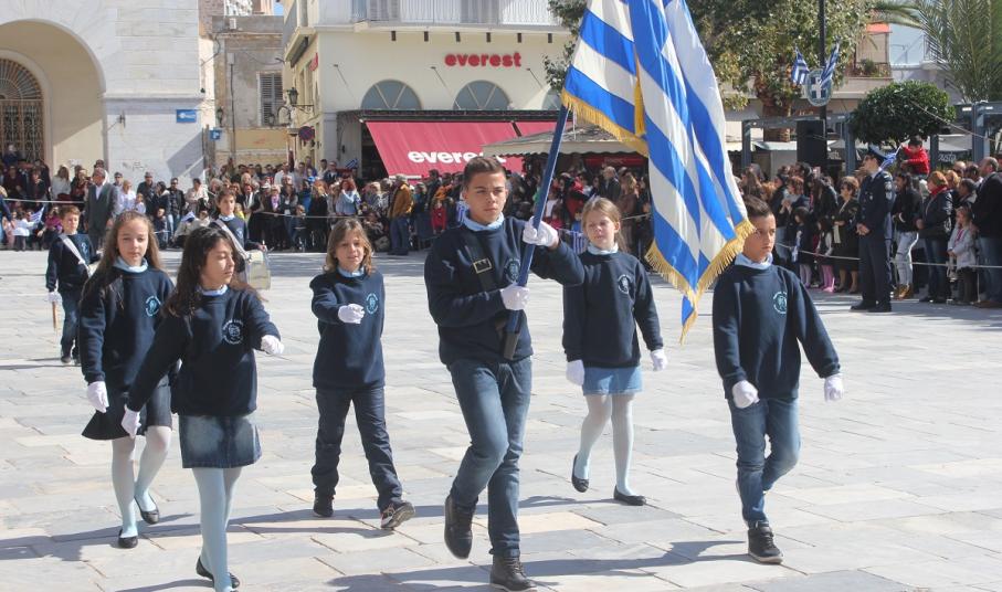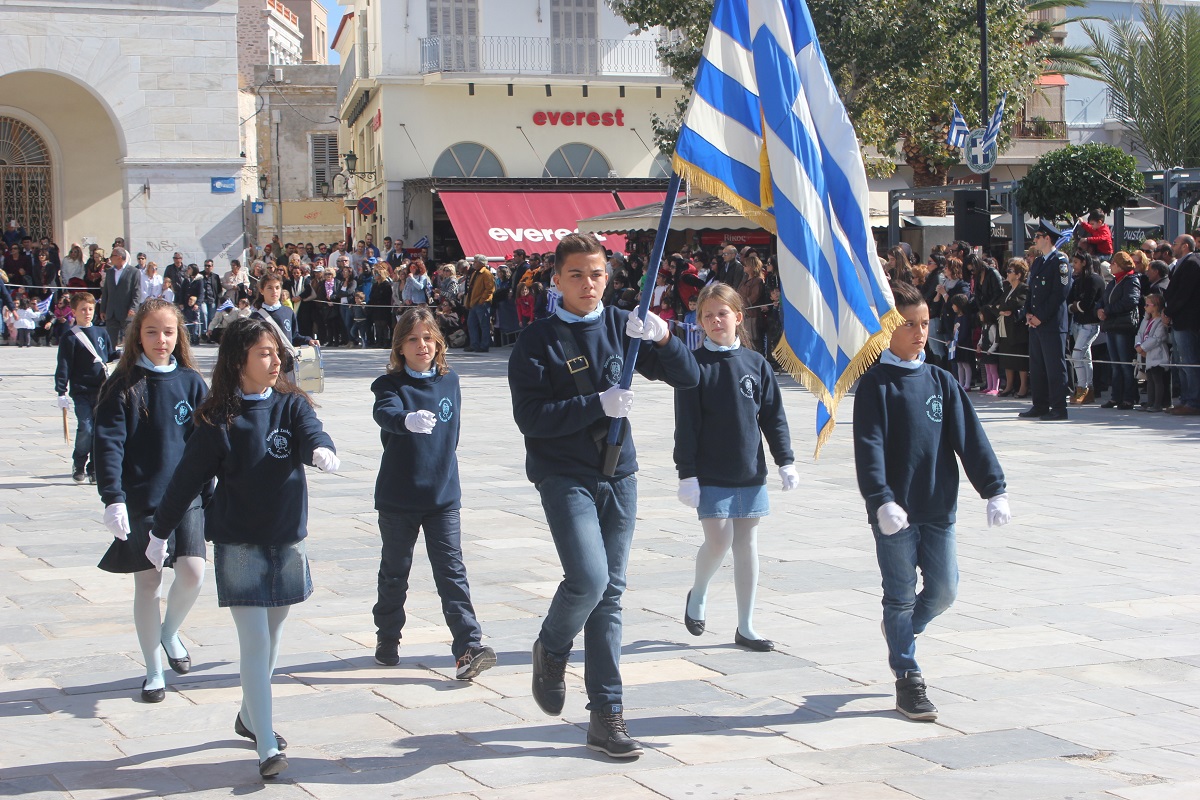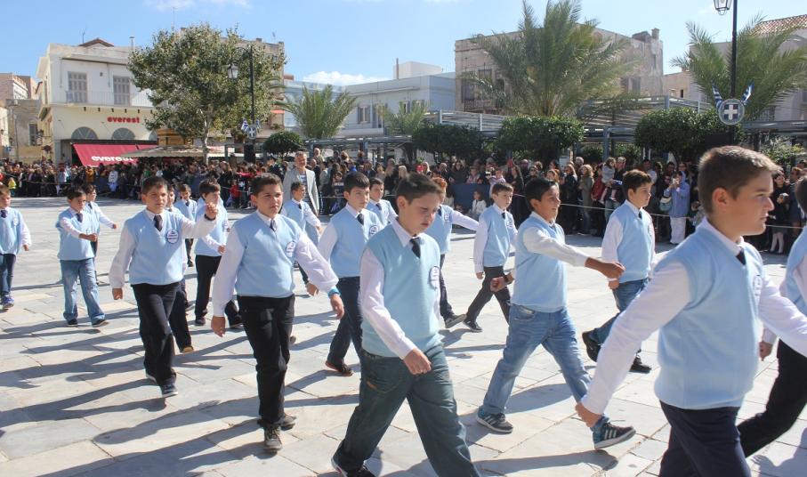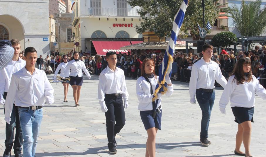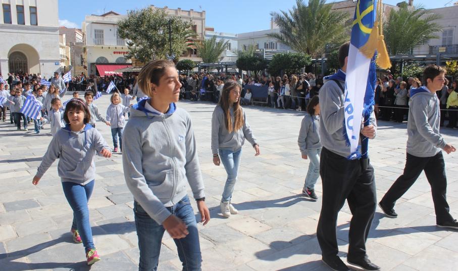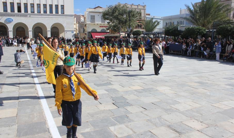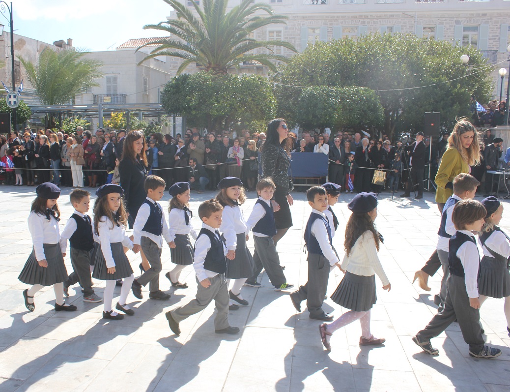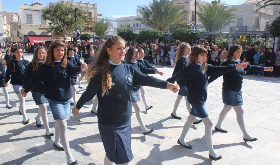 Στη συνέχεια πραγματοποιήθηκε η καθιερωμένη μαθητική παρέλαση στην πλατεία Μιαούλη, στην οποία συμμετείχαν επίσης η Φιλαρμονική του Δήμου Σύρου – Ερμούπολης, το Λύκειο Ελληνίδων Σύρου, ο Πολιτιστικός Σύλλογος Κρητών Σύρου, ο Σύλλογος Ποντίων και Βορειοελλαδιτών Σύρου ο Λαογραφικός Χορευτικός Όμιλος «η σοφία της παράδοσης», σπουδαστές της Ακαδημίας Εμπορικού Ναυτικού Σύρου, ο Ναυτικός Όμιλος Σύρου, ο Αθλητικός Σύλλογος Tae Kwon Do Ερμούπολης και το Σώμα Ελλήνων Προσκόπων.