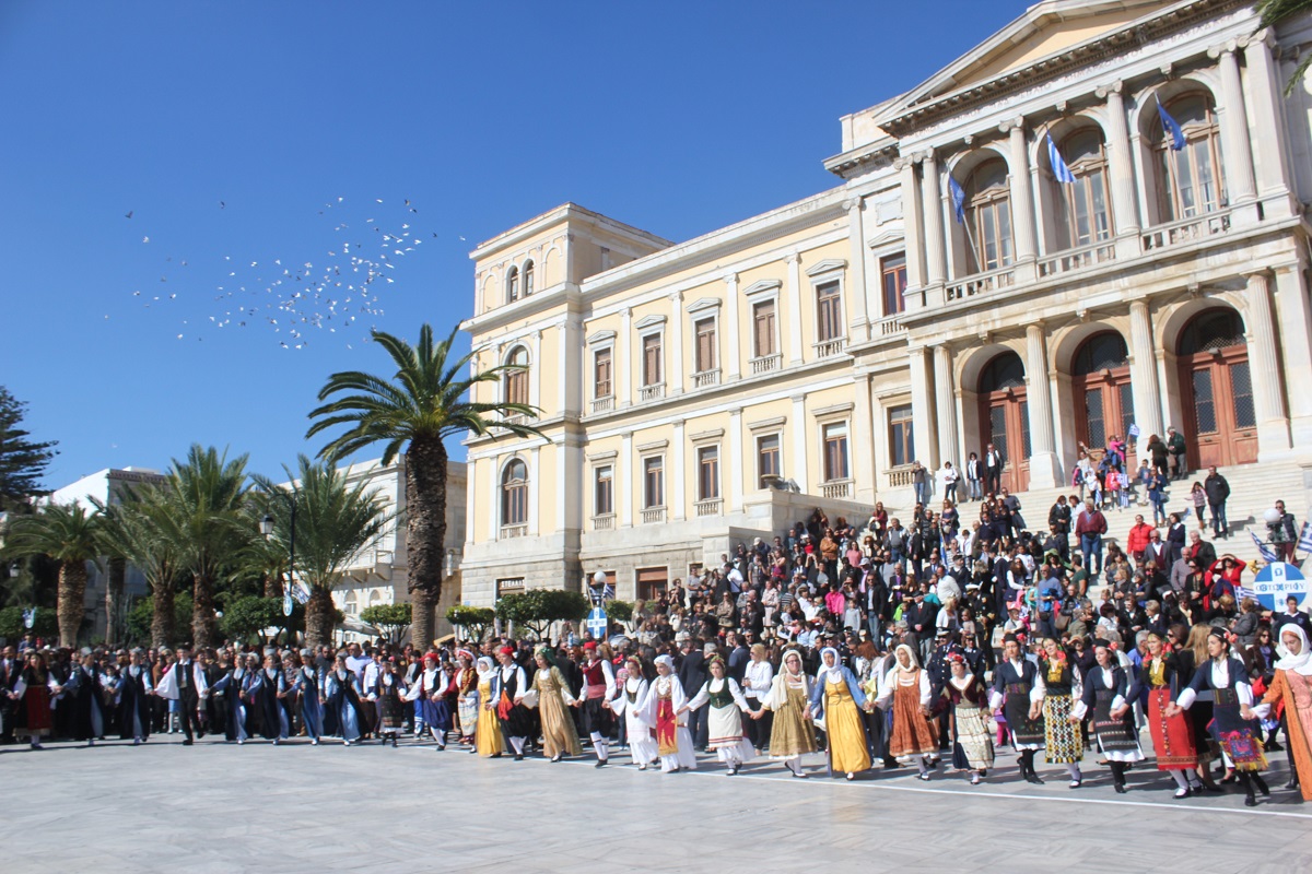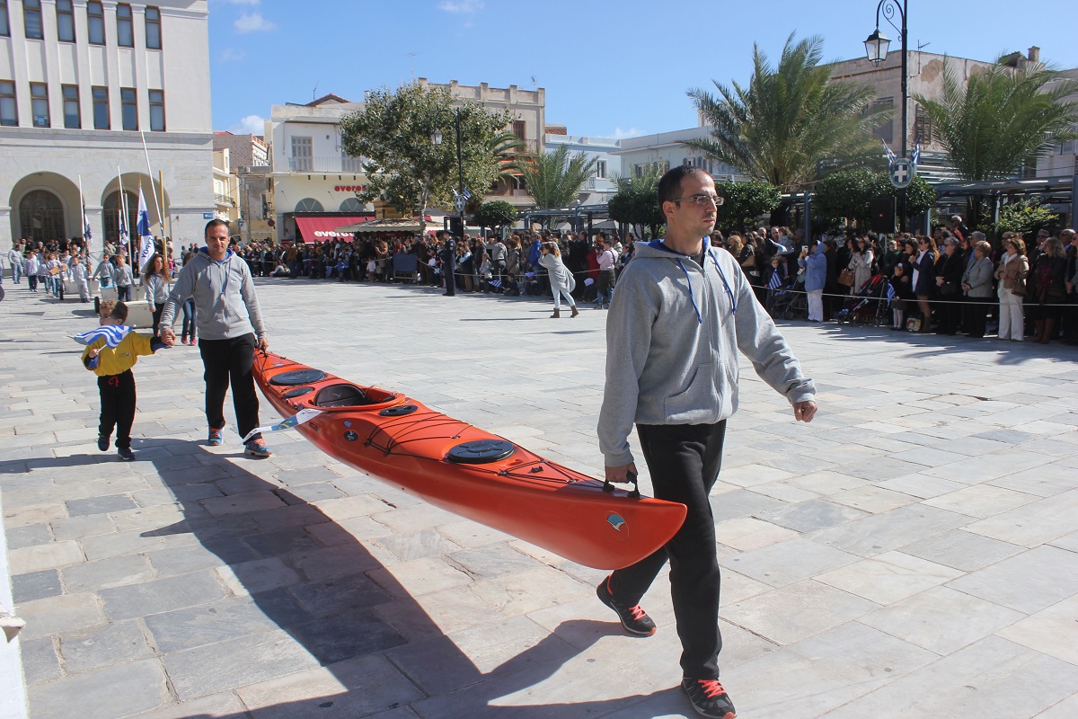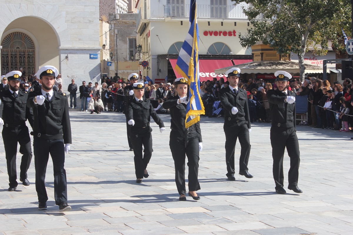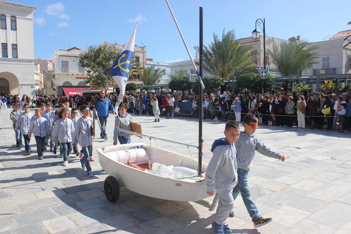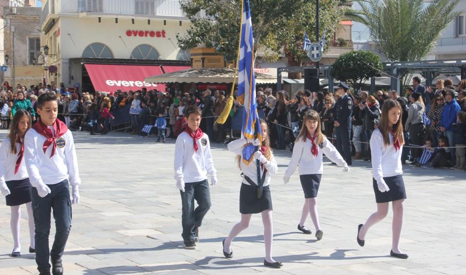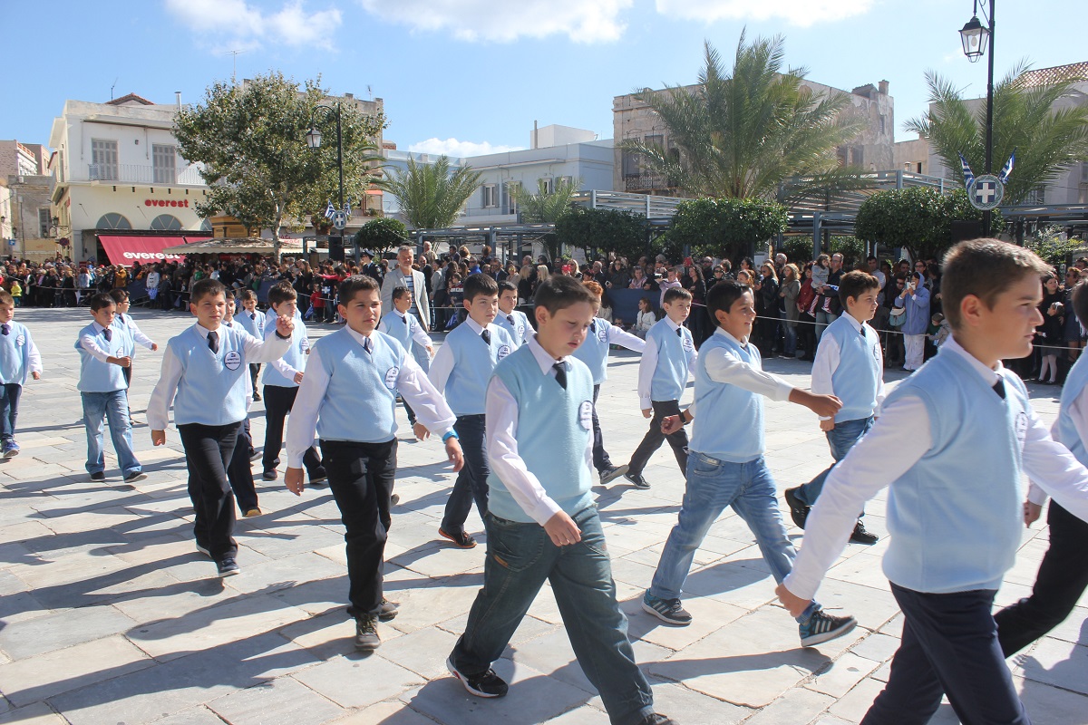 Στη συνέχεια πραγματοποιήθηκε η καθιερωμένη μαθητική παρέλαση στην πλατεία Μιαούλη, στην οποία συμμετείχαν επίσης η Φιλαρμονική του Δήμου Σύρου – Ερμούπολης, το Λύκειο Ελληνίδων Σύρου, ο Πολιτιστικός Σύλλογος Κρητών Σύρου, ο Σύλλογος Ποντίων και Βορειοελλαδιτών Σύρου ο Λαογραφικός Χορευτικός Όμιλος «η σοφία της παράδοσης», σπουδαστές της Ακαδημίας Εμπορικού Ναυτικού Σύρου, ο Ναυτικός Όμιλος Σύρου, ο Αθλητικός Σύλλογος Tae Kwon Do Ερμούπολης και το Σώμα Ελλήνων Προσκόπων.