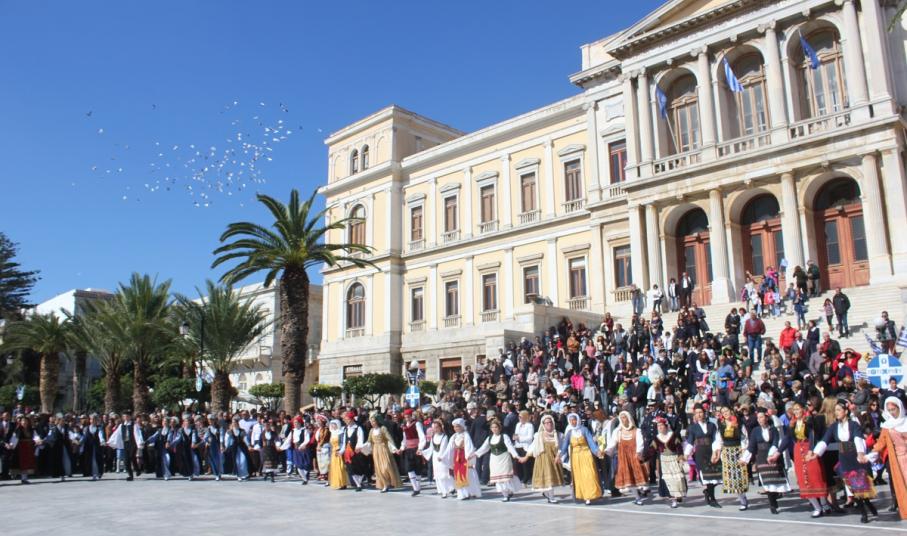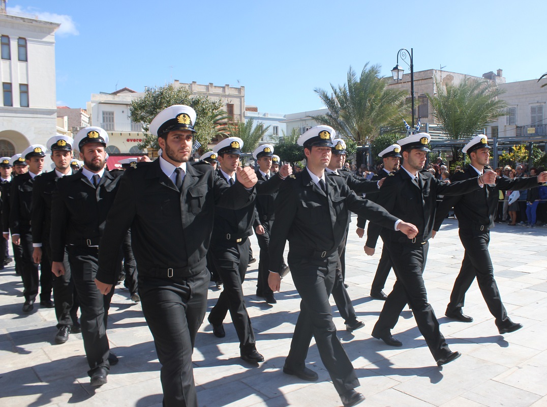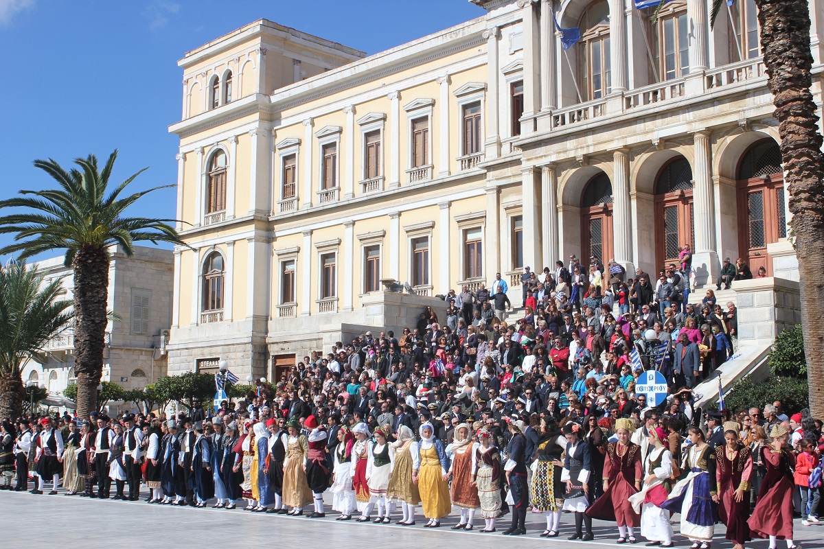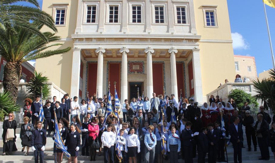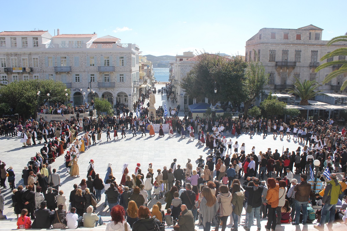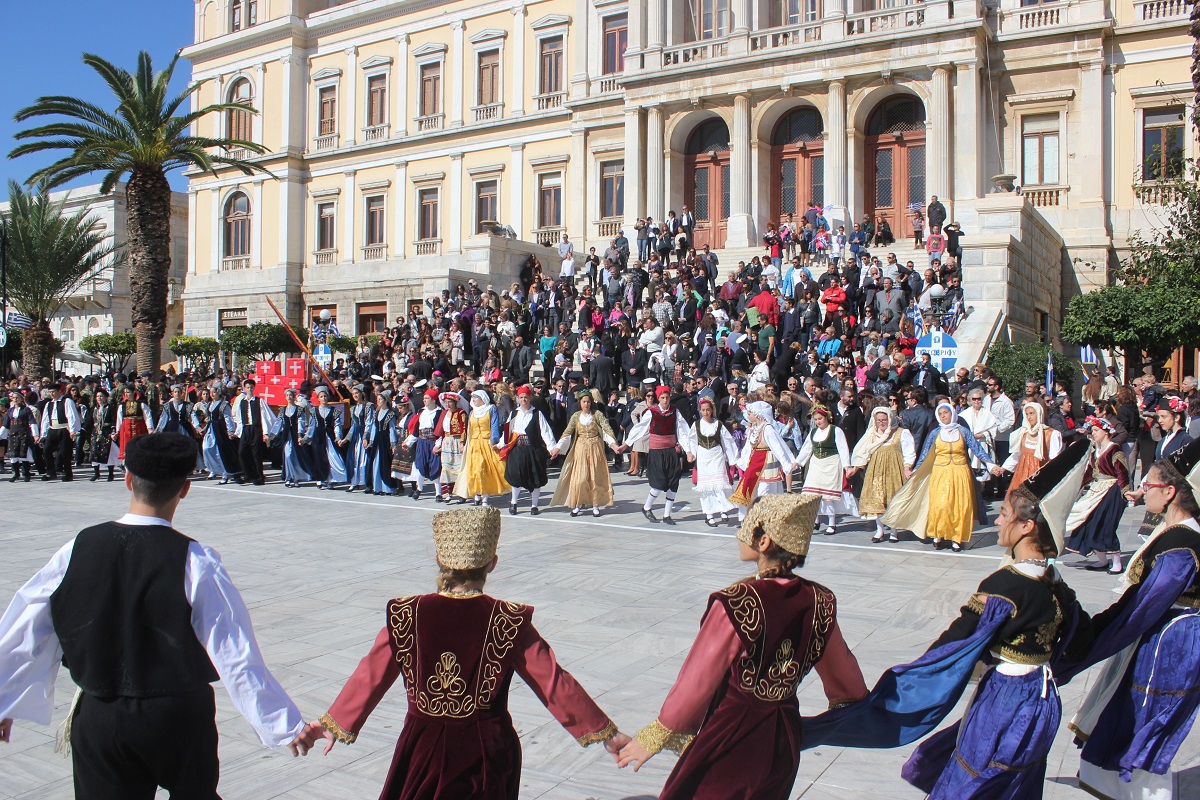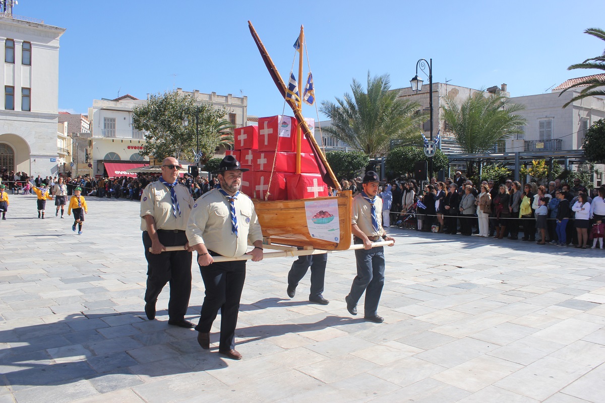 Στη συνέχεια πραγματοποιήθηκε η καθιερωμένη μαθητική παρέλαση στην πλατεία Μιαούλη, στην οποία συμμετείχαν επίσης η Φιλαρμονική του Δήμου Σύρου – Ερμούπολης, το Λύκειο Ελληνίδων Σύρου, ο Πολιτιστικός Σύλλογος Κρητών Σύρου, ο Σύλλογος Ποντίων και Βορειοελλαδιτών Σύρου ο Λαογραφικός Χορευτικός Όμιλος «η σοφία της παράδοσης», σπουδαστές της Ακαδημίας Εμπορικού Ναυτικού Σύρου, ο Ναυτικός Όμιλος Σύρου, ο Αθλητικός Σύλλογος Tae Kwon Do Ερμούπολης και το Σώμα Ελλήνων Προσκόπων.