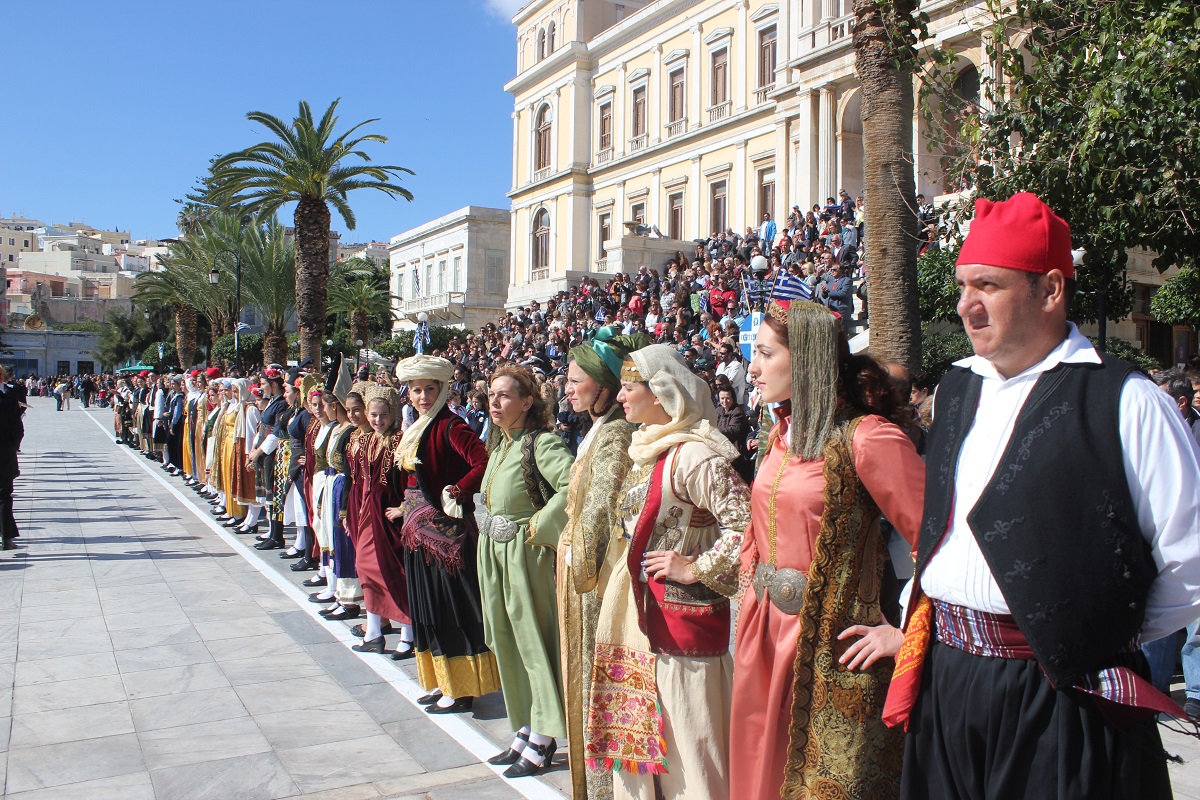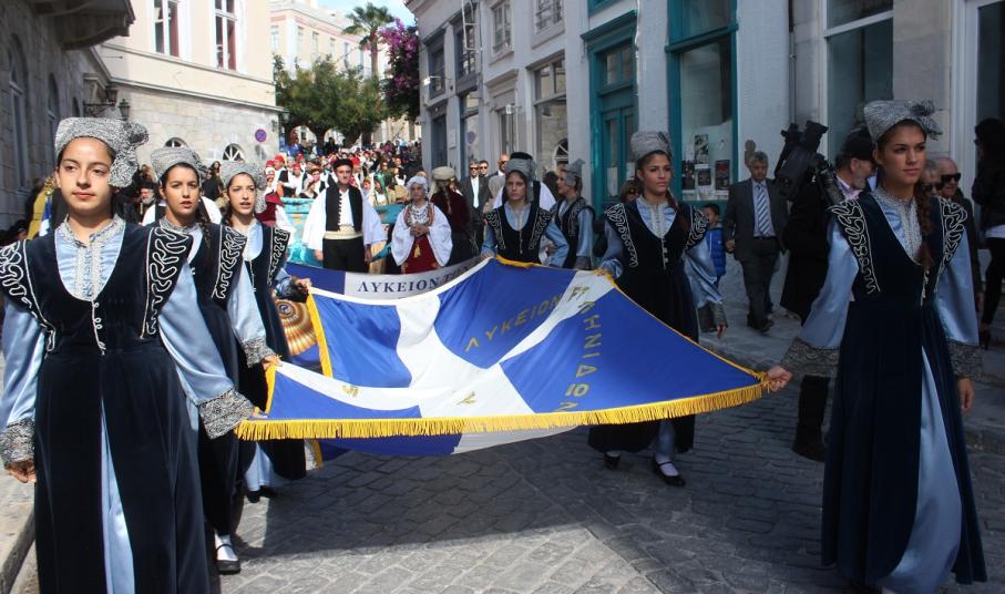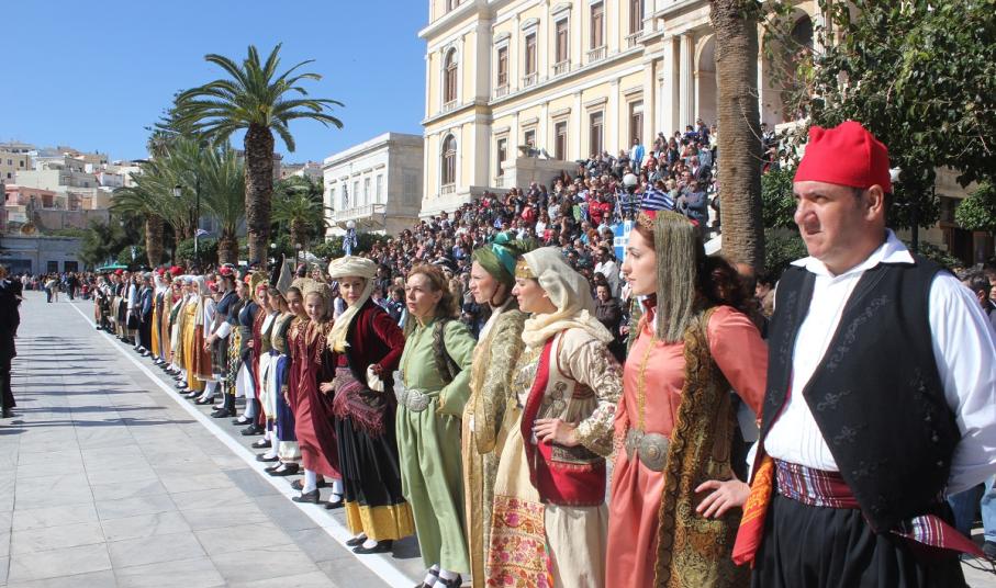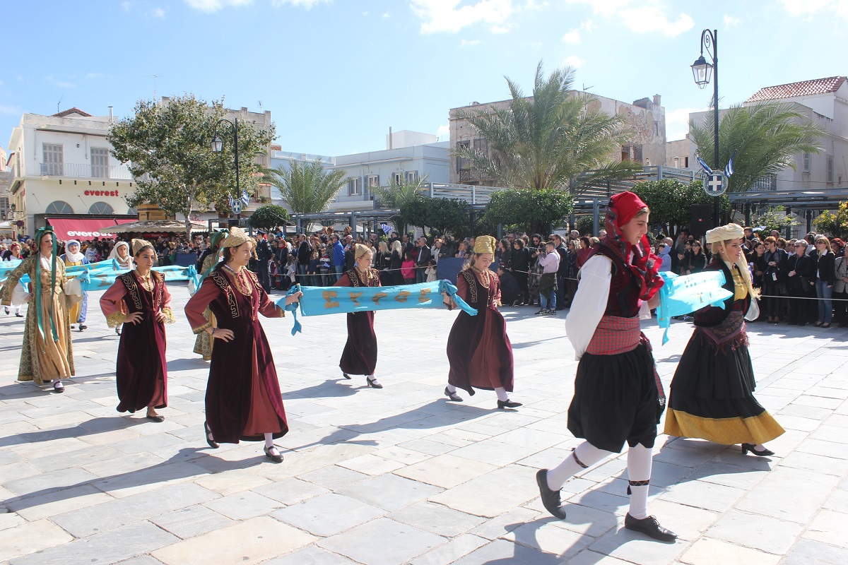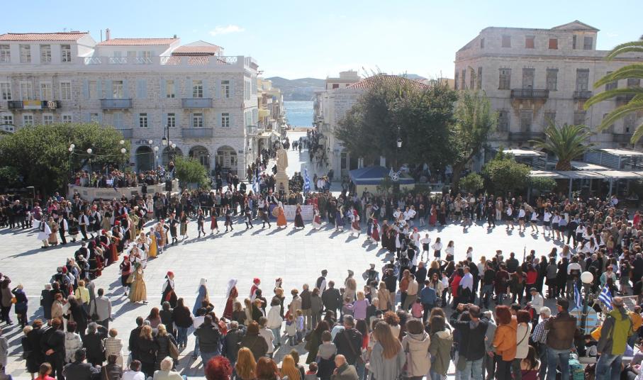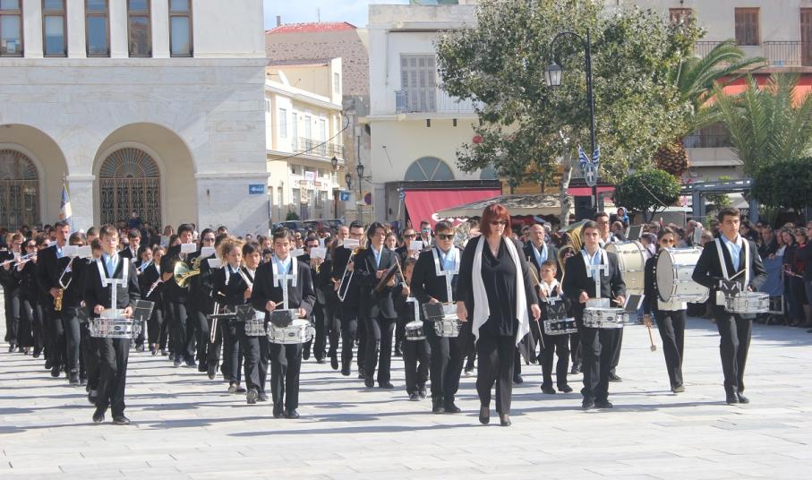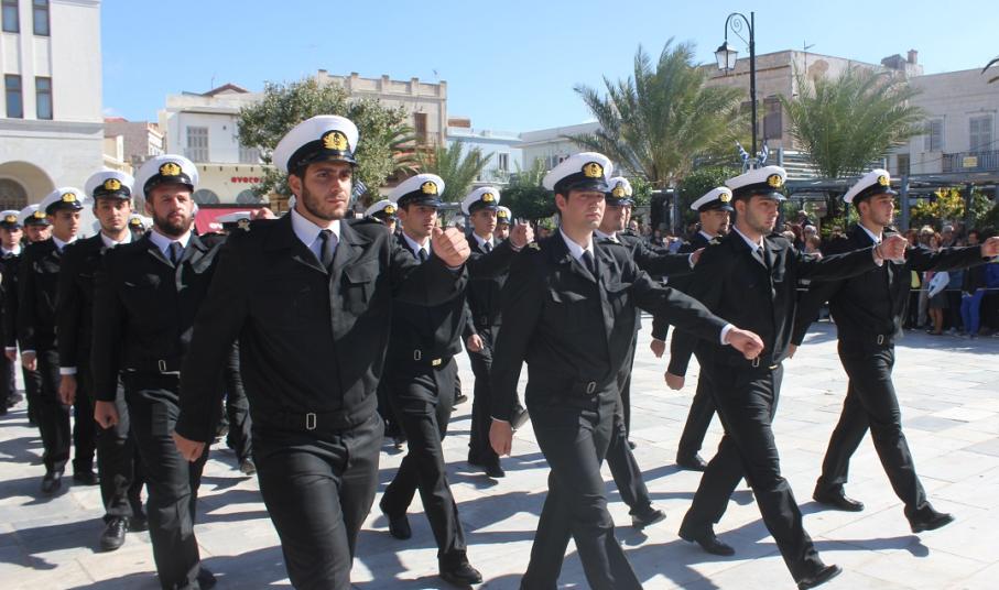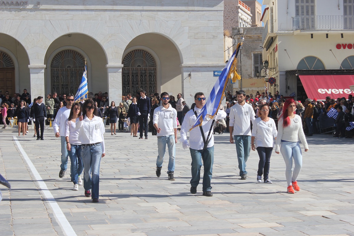 Στη συνέχεια πραγματοποιήθηκε η καθιερωμένη μαθητική παρέλαση στην πλατεία Μιαούλη, στην οποία συμμετείχαν επίσης η Φιλαρμονική του Δήμου Σύρου – Ερμούπολης, το Λύκειο Ελληνίδων Σύρου, ο Πολιτιστικός Σύλλογος Κρητών Σύρου, ο Σύλλογος Ποντίων και Βορειοελλαδιτών Σύρου ο Λαογραφικός Χορευτικός Όμιλος «η σοφία της παράδοσης», σπουδαστές της Ακαδημίας Εμπορικού Ναυτικού Σύρου, ο Ναυτικός Όμιλος Σύρου, ο Αθλητικός Σύλλογος Tae Kwon Do Ερμούπολης και το Σώμα Ελλήνων Προσκόπων.