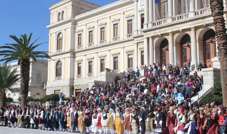 Οι εκδηλώσεις ολοκληρώθηκαν εντυπωσιακά με χορούς από τμήματα του Λυκείου Ελληνίδων Σύρου, οι οποίοι στο τέλος του προγράμματός τους σχημάτισαν τον αριθμό 100, τιμώντας την 100ετή προσφορά του Λυκείου στο πολιτιστικό και κοινωνικό γίγνεσθαι του νησιού.