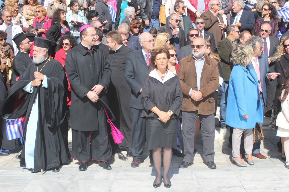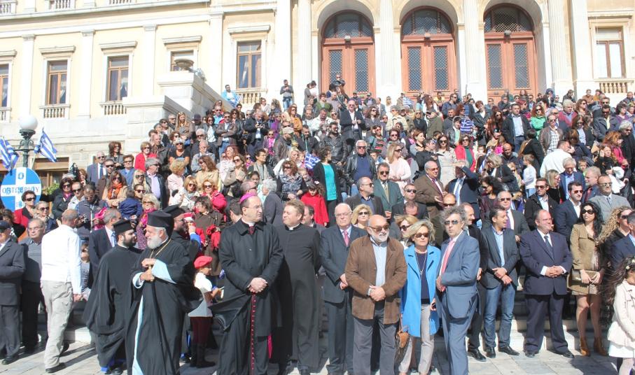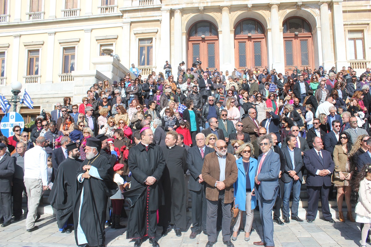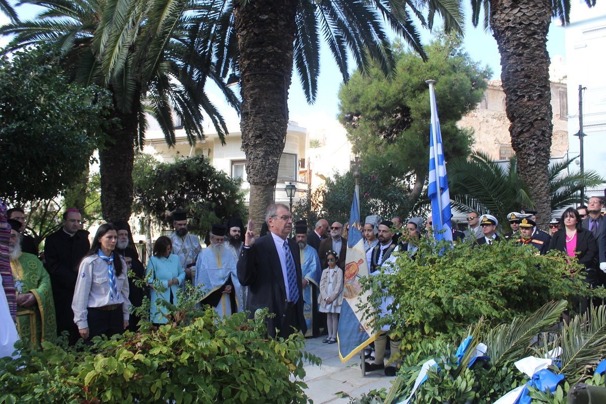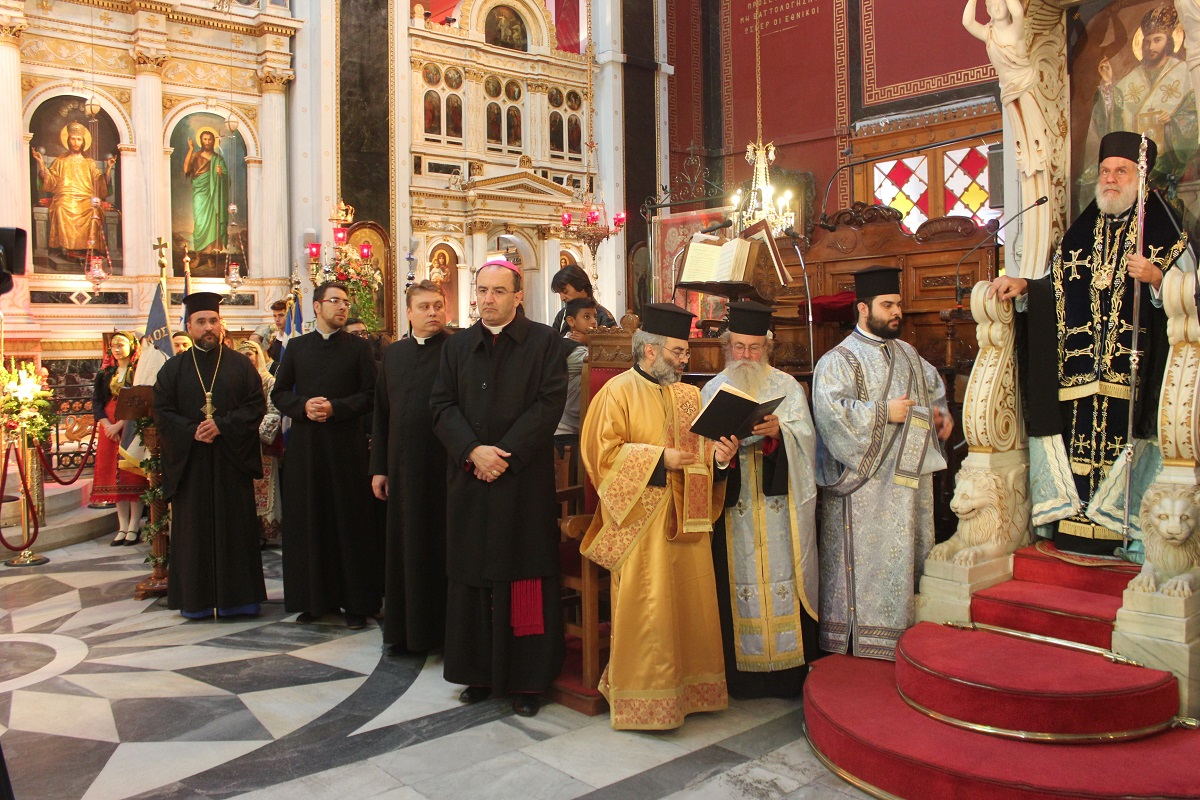 Παρουσία του Καθολικού Επισκόπου Σύρου Σεβ. π. Πέτρου Στεφάνου, της Υφυπουργού Εργασίας κ. Ράνιας Αντωνοπούλου, των Βουλευτών Κυκλάδων Αντώνη Συρίγου και Νίκου Συρμαλένιου, , του Δημάρχου Σύρου – Ερμούπολης Γιώργου Μαραγκού, εκπροσώπων της τοπικής αυτοδιοίκησης, της εκπαίδευσης, συλλόγων και σωματείων του νησιού, τελέστηκε σήμερα το πρωί επίσημη Δοξολογία στον Ιερό Ναό του Αγίου Νικολάου, χοροστατούντος του Σεβασμιωτάτου Μητροπολίτη Σύρου κ. Δωροθέου Β’.