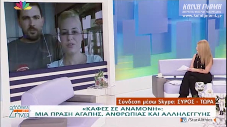Στη μεσημεριανή εκπομπή της Ζήνας Κουτσελίνη, “Αλήθειες με τη Ζήνα” οι ίδιοι αναφέρθηκαν στην ανάγκη που προβάλλει στη σημερινή εποχή εξαιτίας της βαθιάς οικονομικής κρίσης, να αναπτυχθούν δράσεις μέσω των οποίων θα ανακουφιστούν στην καθημερινότητά τους συνάνθρωποί μας που πραγματικά το χρειάζονται, έστω, και μέσα από απλές κινήσεις αγάπης και προσφοράς.