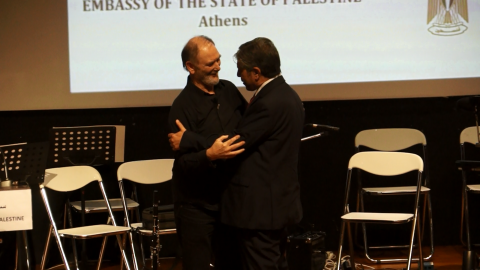 Με μια μαζική και ενθουσιώδη εκδήλωση οι Παλαιστίνιοι της Αθήνας και οι φίλοι τους γιόρτασαν τη ΔΙΕΘΝΗ ΗΜΕΡΑ ΑΛΛΗΛΕΓΓΥΗΣ ΠΡΟΣ ΤΟΝ ΠΑΛΑΙΣΤΙΝΙΑΚΟ ΛΑΟ στο Συνεδριακό Κέντρο ΔΑΙΣ στο Μαρούσι. Την εκδήλωση διοργάνωσε όπως κάθε χρόνο η Πρεσβεία της Παλαιστίνης στην Αθήνα και οι φίλοι του Παλαιστινιακού λαού. Ο πρέσβης της Παλαιστινιακής Αρχής στην Ελλάδα κ. Μαρουάν Εμίλ Τουμπάσι μίλησε στην κεντρική του ομιλία για την αγωνία των Παλαιστινίων για ένα αληθινά ανεξάρτητο, κυρίαρχο Παλαιστινιακό κράτος που θα πορεύεται και θα ευημερεί με ειρήνη και αξιοπρέπεια και θα έχει σχέσεις καλής γειτονίας και συνεργασίας με τους Ισραηλινούς και με όλες τις χώρες της γης. Αναφέρθηκε στις σχέσεις με την Ελλάδα και ευχαρίστησε τους Έλληνες για την υποστήριξή τους προς τον Παλαιστινιακό Λαό και τόνισε ότι αυτές θα ενδυναμωθούν περαιτέρω με την επίσκεψη του κ. Τσίπρα στην Παλαιστίνη και με την επικείμενη επίσκεψη του Προέδρου της Παλαιστίνης κ. Μαχμούτ Αμπάς στην Αθήνα στο τέλος του μήνα. Στην εκδήλωση εκπροσώπησε την Ελληνική Κυβέρνηση ο υπουργός Εσωτερικών και Διοικητικής Ανασυγκρότησης κ. Παναγιώτης Κουρουμπλής, ο οποίος στο χαιρετισμό του μετέφερε την υποστήριξη της Κυβέρνησης στην εδραίωση των κυριαρχικών δικαιωμάτων των Παλαιστινίων. Πριν από την έναρξη των καλλιτεχνικών εκδηλώσεων της βραδιάς ο Παλαιστίνιος Πρέσβης απένειμε τιμητικές διακρίσεις στο ΜΙΚΗ ΘΕΟΔΩΡΑΚΗ, στο ΜΑΝΩΛΗ ΓΛΕΖΟ και στο Συριανό φίλο των Παλαιστινίων ΜΠΑΜΠΗ ΚΟΥΛΟΥΡΑ για τη συμβολή τους στη διεκδίκηση των δικαίων των Παλαιστινίων. Ο ΜΙΚΗΣ ΘΕΟΔΩΡΑΚΗΣ και ο ΜΑΝΩΛΗΣ ΓΛΕΖΟΣ ανακηρύχθηκαν επίτιμοι πολίτες της Παλαιστίνης με απόφαση του ίδιου του Προέδρου ΜΑΧΜΟΥΤ ΑΜΠΑΣ, ενώ στο ΜΠΑΜΠΗ ΚΟΥΛΟΥΡΑ απονεμήθηκε από τον πρέσβη το μετάλλιο τιμής των Παλαιστινίων, που φέρει από τη μια πλευρά την ιστορική στιγμή της ύψωσης της Παλαιστινιακής σημαίας στον ΟΗΕ στις 30 Σεπτεμβρίου 2015 και από την άλλη την υπογραφή του ΜΑΧΜΟΥΤ ΑΜΠΑΣ. Στην απόφαση αναγνώρισης στην ουσία του Παλαιστινιακού κράτους από τη Γενική Συνέλευση του ΟΗΕ ψήφισαν 119 χώρες υπέρ, 8 κατά και 45 απείχαν από την ψηφοφορία. Θετικά ψήφισαν η Ρωσία, Κίνα, Ιταλία, Γαλλία, Ισπανία, Πολωνία, Σουηδία κ.α. και αρνητικά ψήφισαν οι ΗΠΑ, Ισραήλ, Καναδάς, Βουλγαρία κ.α. Ο ΜΑΝΩΛΗΣ ΓΛΕΖΟΣ παραλαμβάνοντας την τιμητική του διάκριση και χαιρετώντας στην εκδήλωση μίλησε για την αναγκαιότητα ύπαρξης ενός ανεξάρτητου Παλαιστινιακού Κράτους και δήλωσε ότι θα αναλωθεί μέχρι το τέλος της ζωής του γι αυτή την υπόθεση , ενώ κάλεσε την Ελληνική Κυβέρνηση ν’ αναγνωρίσει την ΠΑΛΑΙΣΤΙΝΗ επίσημα, πράγμα που δεν έχει κάνει μέχρι σήμερα και επιμερίσθηκε και το δικό του μερίδιο ευθύνης γι αυτό. Ο εκπρόσωπος του ΜΙΚΗ ΘΕΟΔΩΡΑΚΗ, ο οποίος δεν παραβρέθηκε για λόγους υγείας, παρέλαβε την τιμητική διάκριση και διάβασε μήνυμα του σπουδαίου μουσικοσυνθέτη και αντιστασιακού, όπου δήλωνε την αγωνία του για τη στερέωση της Ειρήνης στη μέση Ανατολή και τη σταθερή του αγωνιστική θέση στα δίκαια των Παλαιστινίων. Ο Παλαιστίνιος πρέσβης παρέδωσε το τιμητικό μετάλλιο στο ΜΠΑΜΠΗ ΚΟΥΛΟΥΡΑ ο οποίος συγκινημένος είπε ότι αισθάνεται υπερηφάνεια και συγκίνηση να τιμάται αυτή τη μέρα από τον υπερήφανο Παλαιστινιακό Λαό και δέος γιατί τιμάται την ίδια ιστορική μέρα με τους δύο εμβληματικούς γίγαντες της Πατρίδας μας. Δήλωσε δε, ότι με τις ταπεινές του δυνάμεις θα συνεχίσει 