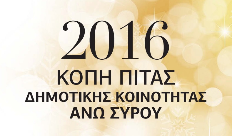 Την πρωτοχρονιάτικη πίτα της θα κόψη η Δημοτική Κοινότητα Άνω Σύρου, την Κυριακή 17 Ιανουαρίου και ώρα 18:00 το απόγευμα, στην αίθουσα του Δημοτικού Σχολείου Κινίου. Αμέσως μετά, θα ακολουθήσει μικρό κέρασμα.