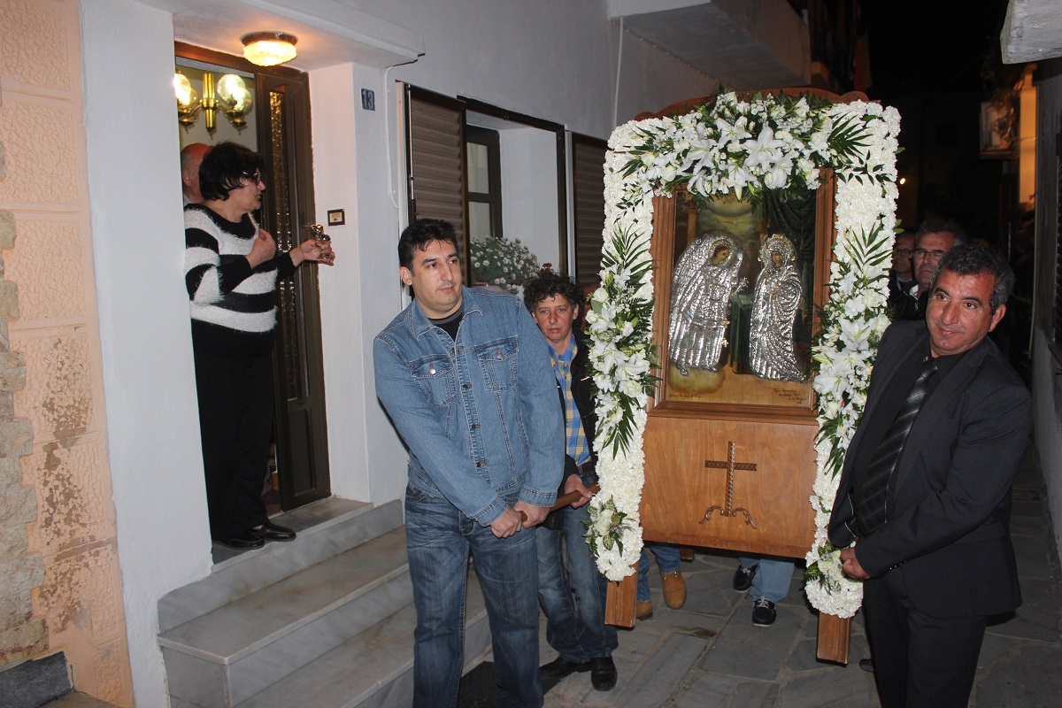 Άρωμα παλιάς Ελλάδας, τότε που οι γειτονιές έσφυζαν από ζωή και οι κάτοικοι τηρούσαν σαν μία μεγάλη οικογένεια, αγαπημένα ήθη και έθιμα, έφεραν οι εικόνες κατά της διάρκεια της περιφοράς της εικόνας στα σοκάκια των Καμινίων με τα φωταγωγημένα σπίτια, και τους κατοίκους στο κατώφλι και το δρόμο να ανταλλάζουν ευχές και χαμόγελα.