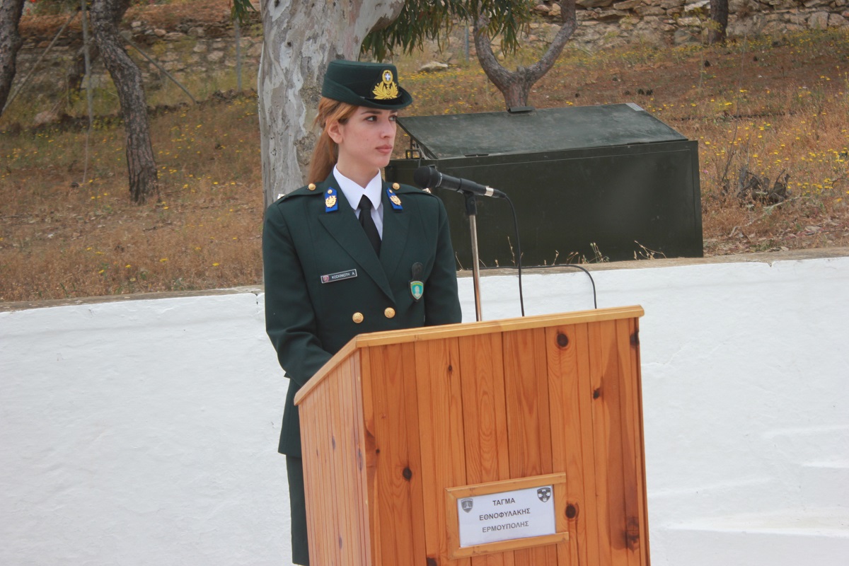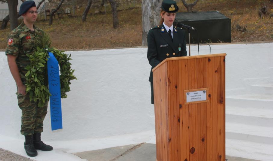 Η τελετή ολοκληρώθηκε με κατάθεση Στεφάνου από το Διοικητή του Τάγματος Εθνοφυλακής Ερμούπολης, σιγή ενός λεπτού και ανάκρουση του Εθνικού Ύμνου.