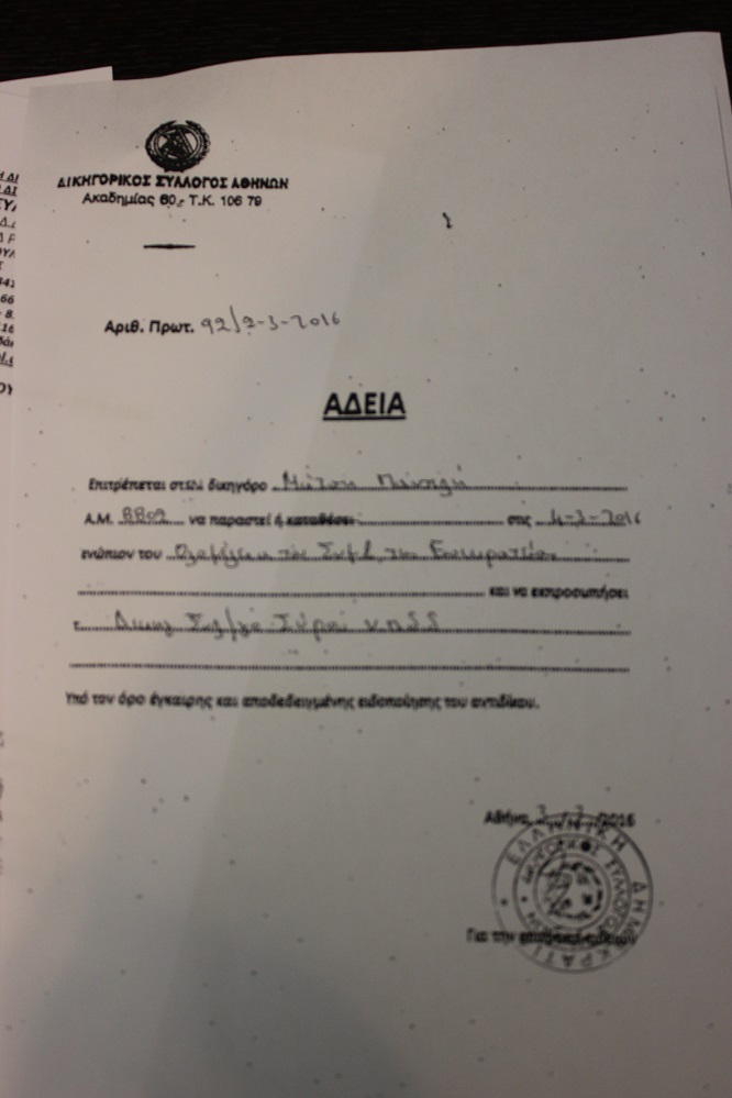 Γνωστοποιώντας δε, πως, ο Δικηγορικός Σύλλογος Σύρου, ο Δικηγορικός Σύλλογος Νάξου, ο Δήμος Πάρου, καθώς επίσης και το Επιμελητήριο Δωδεκανήσου που έχουν ασκήσει προσφυγή, “έχουν λάβει άδειες για τους πληρεξουσίους δικηγόρους τους από τους οικείους Δικηγορικούς Συλλόγους” και δη, από την πρώτη προγραμματισμένη ημερομηνία συζήτησης, κάλεσε την Περιφέρεια Νοτίου Αιγαίου και τον Δήμο Μυκόνου με σχετικές επιστολές που απεστάλησαν στις 25/5/2016 στον Περιφέρειάρχη, Γιώργο Χατζημάρκο και τον δήμαρχο, Κωνσταντίνο Κουκά να προβούν στις ανάλογες ενέργειες για τον πληρεξούσιο δικηγόρο τους καταθέτοντας σχετικό αίτημα στην Επιτροπή Αδειών της Αθήνας. Επαναλαμβάνοντας μάλιστα πως, ο Δικηγορικός Σύλλογος Σύρου έχει λάβει άδεια, όπως και οι προαναφερόμενοι προσφεύγοντες, επεσήμανε πως, χρήσιμο θα ήταν να ενεργήσουν άμεσα τόσο η Περιφέρεια, όσο και η πλευρά του Δήμου Μυκόνου.