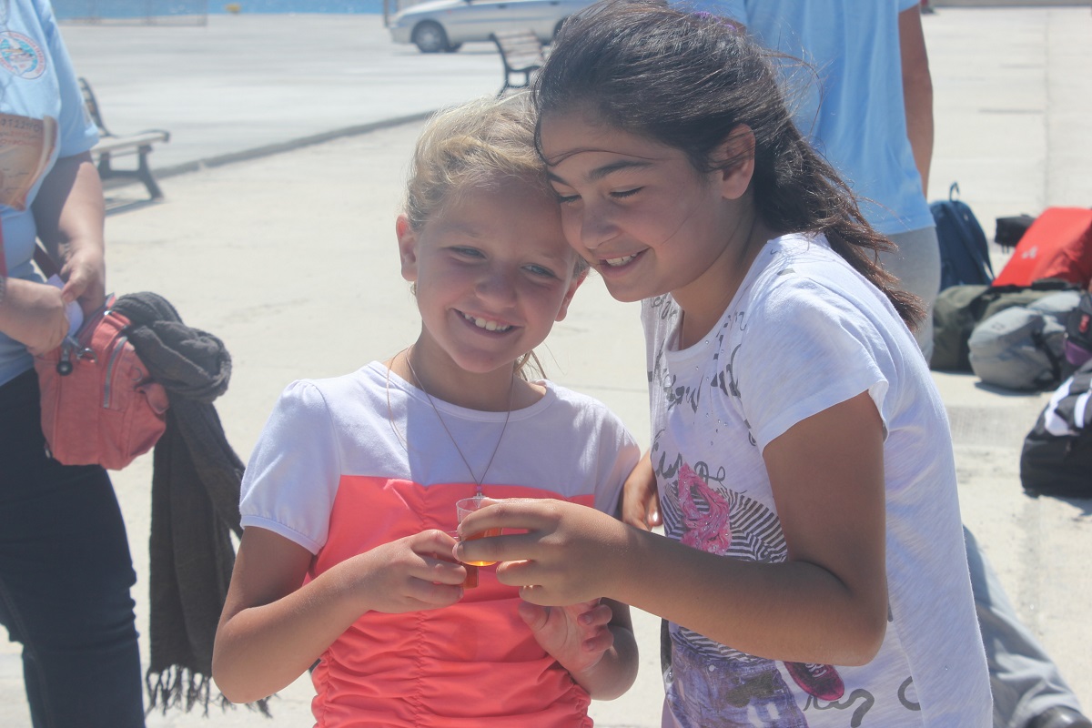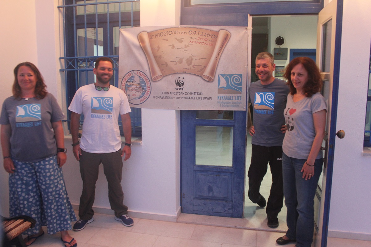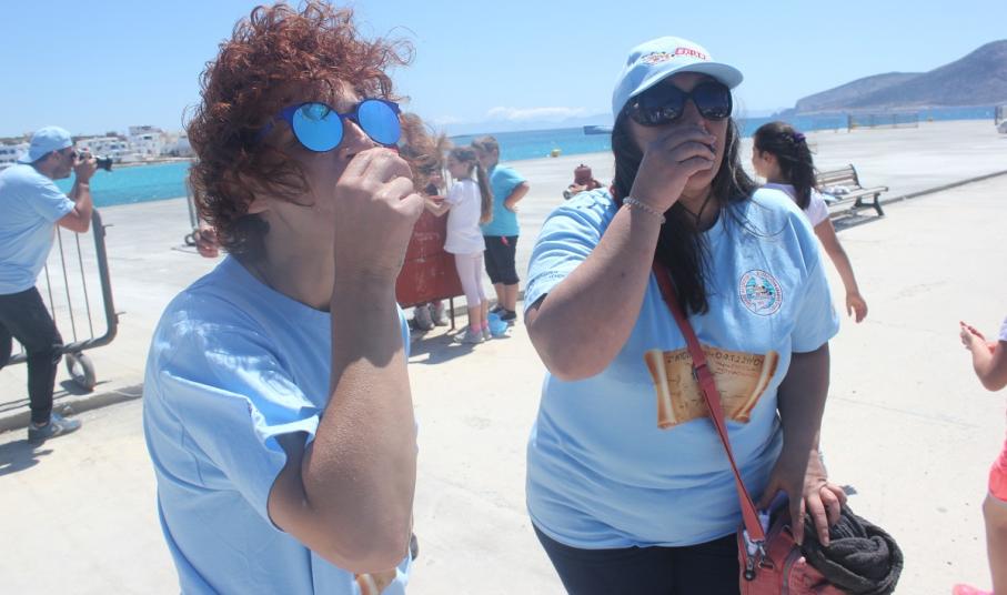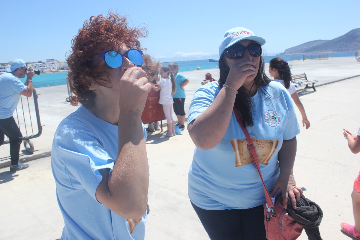 Ο πρόεδρος της Τοπικής Κοινότητας Αντώνης Κωβαίος, κάτοικοι και παιδιά του Νηπιαγωγείου και του Δημοτικού Σχολείου Κουφονησίου, συνοδευόμενα από τις εκπαιδευτικούς τους καλωσόρισαν χθες το πρωί στο λιμάνι τα μέλη του Ομίλου, καθώς και την ομάδα του προγράμματος Κυκλάδες Life της WWF, που συμμετέχει αυτόνομα με ενημερωτικές δράσεις και εκπαιδευτικά παιχνίδια.