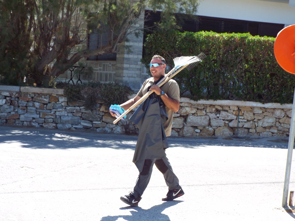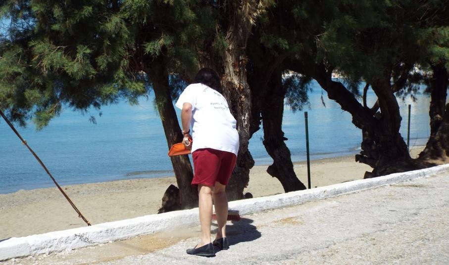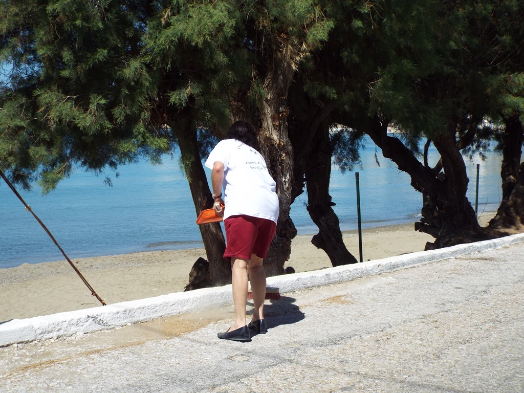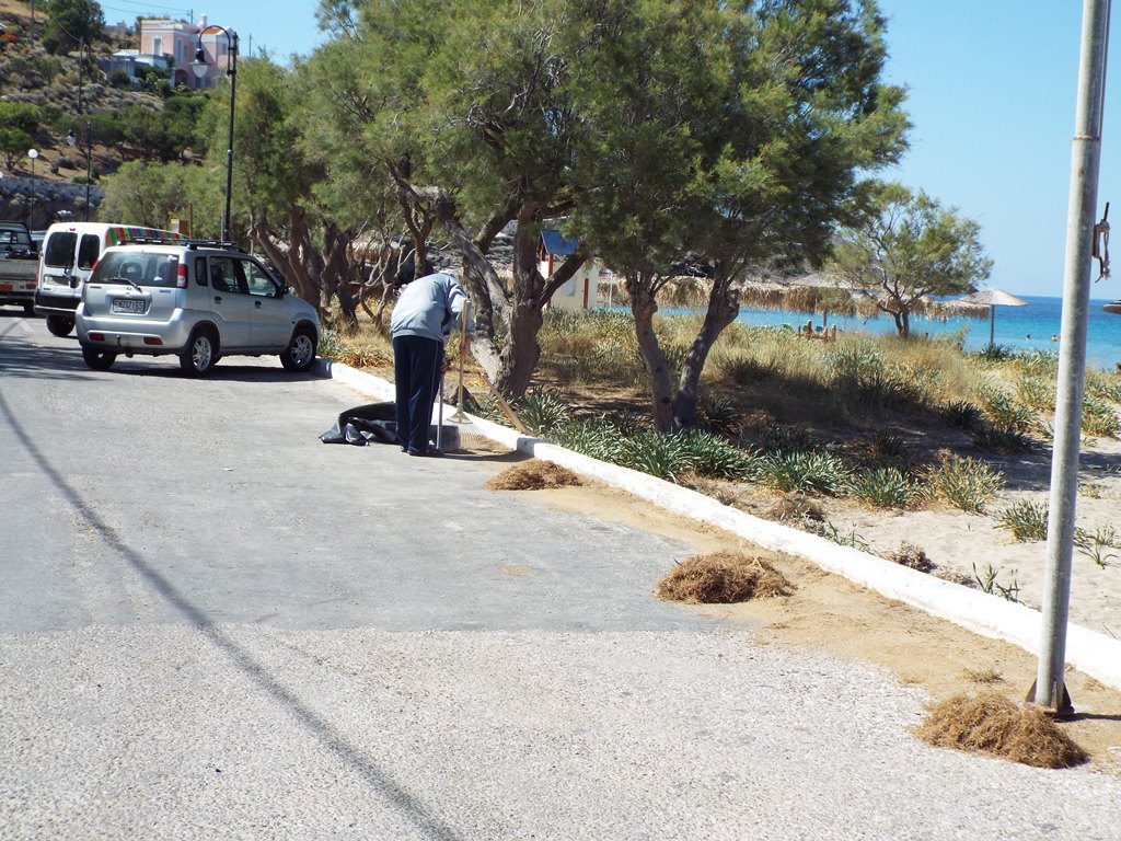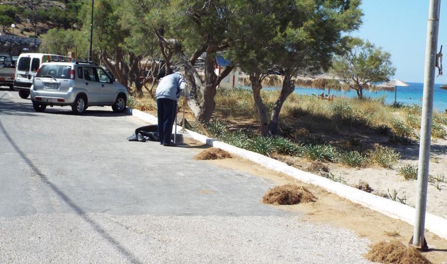 Επιπλέον, πραγματοποιήθηκε ενδελεχής καθαρισμός της άμμου της παραλίας, καθώς και του δρόμου, ο οποίος στις άκρες του συγκεντρώνει όγκο κλαδιών και φύλλων από τα αρμυρίκια, τα οποία παρασύρονται από τον άνεμο.