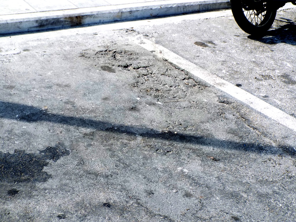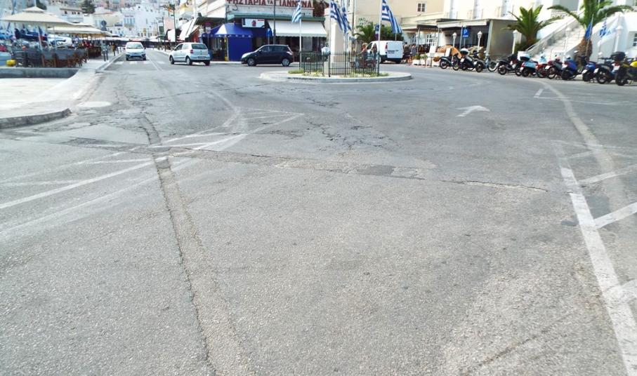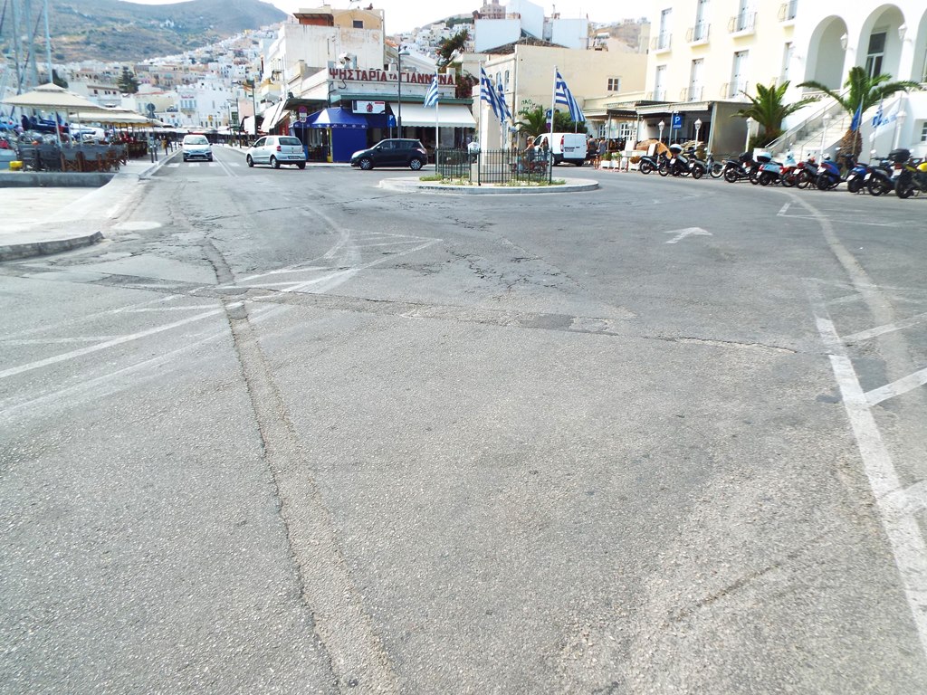 Παρά το γεγονός, ότι η παραλιακή οδός της Ερμούπολης, έχει πλέον ένα φρεσκοστρωμένο οδόστρωμα, ενώ παράλληλα και στο χώρο στάθμευσης στο «Νησάκι» είχαν πραγματοποιηθεί πρόσφατα αντίστοιχες εργασίες, προκειμένου να επαναχωροθετηθεί, το συγκεκριμένο σημείο, στην πλατεία Κανάρη, όπου βρίσκεται και ο κυκλοφοριακός κόμβος, φαίνεται να έχει αφεθεί στη μοίρα του.