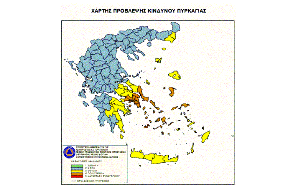 Η Αυτοτελής Διεύθυνση Πολιτικής Προστασίας της Περιφέρειας Νοτίου Αιγαίου ενημερώνει ότι, την Τετάρτη 22-6-2016 και σύμφωνα με τον Ημερήσιο Χάρτη Πρόβλεψης Κινδύνου Πυρκαγιάς που συντάσσει η Διεύθυνση Σχεδιασμού και Αντιμετώπισης Έκτακτων Αναγκών της Γενικής Γραμματείας Πολιτικής Προστασίας, που εκδόθηκε την Τρίτη 21-6-2016, ο κίνδυνος για την εκδήλωση πυρκαγιών στην Περιφέρεια Νοτίου Αιγαίου (Π.Ε. Κυκλάδων) είναι πολύ υψηλός (Κατηγορία κινδύνου 4) και όλες οι αρμόδιες υπηρεσίες βρίσκονται σε κατάσταση αυξημένης ετοιμότητας.