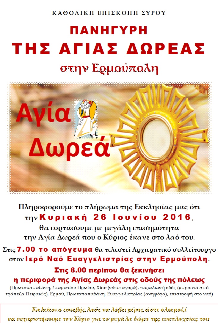Ενημερώνουμε τους δημότες και επισκέπτες του νησιού μας ότι, λόγω της περιφοράς της εικόνας της Αγίας Δωρεάς και, σύμφωνα με την υπ’ αριθμ. 2501/10/53-α’ απόφαση της Δ/νσης Αστυνομίας Κυκλάδων: