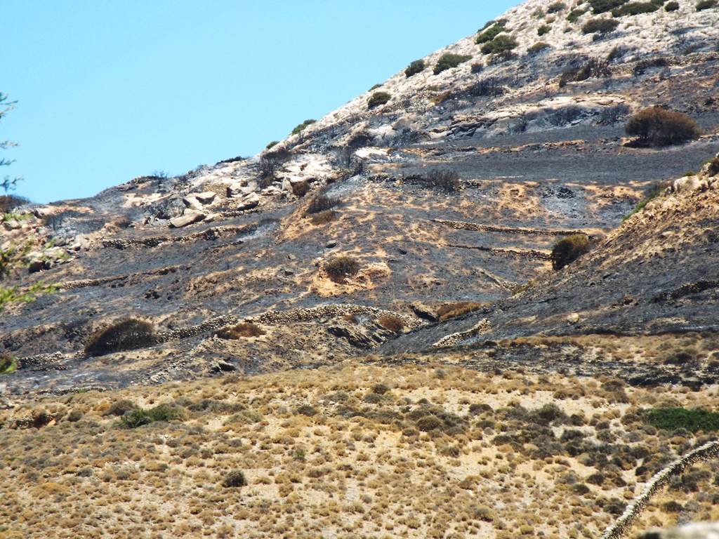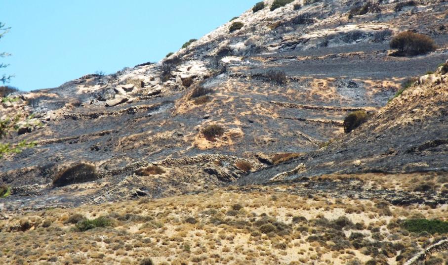 Μόλις μερικές ώρες, μετά την καταστροφική πυρκαγιά, που συνέχιζε να καίει επί τρεις ημέρες στις περιοχές από τον Βόλακα και την Αγ. Βαρβάρα, έως τον Πάγο και τον Δανακό, η Σύρος μετρά εκατοντάδες στρέμματα καμένες εκτάσεις, εντός των οποίων, ευτυχώς, δεν υπήρξε καμία κατοικία, ενώ επίσης δεν κινδύνευσαν ανθρώπινες ζωές.