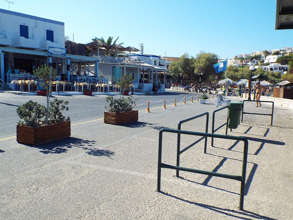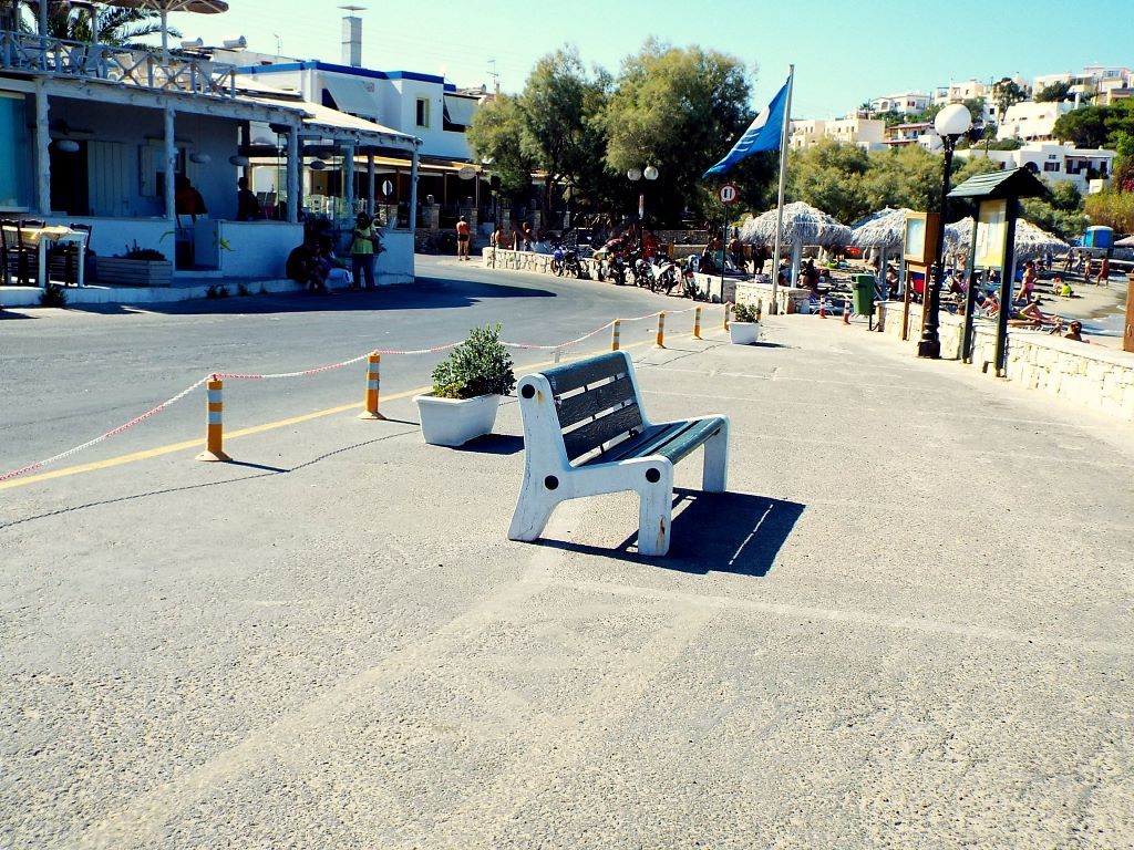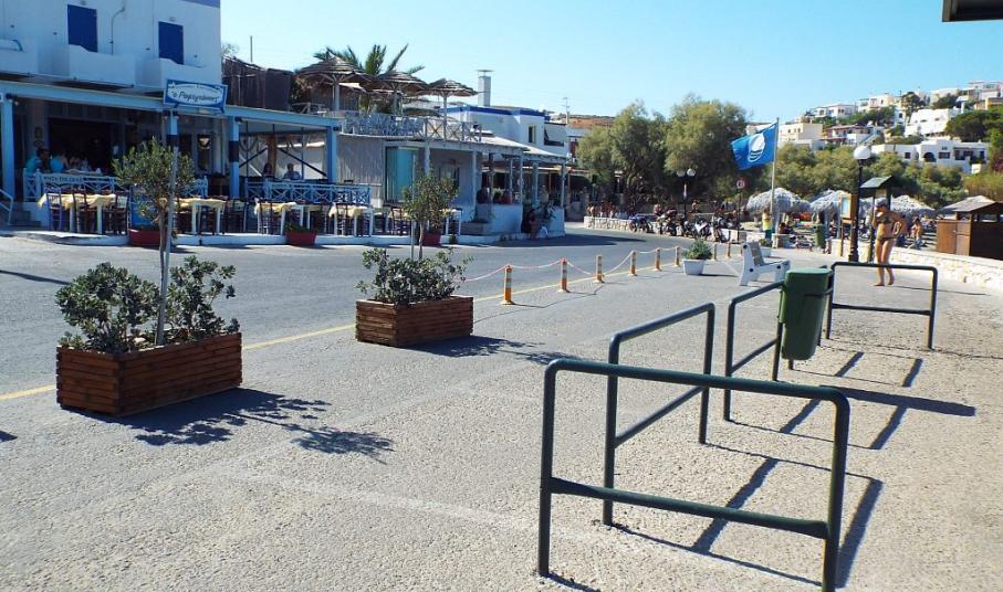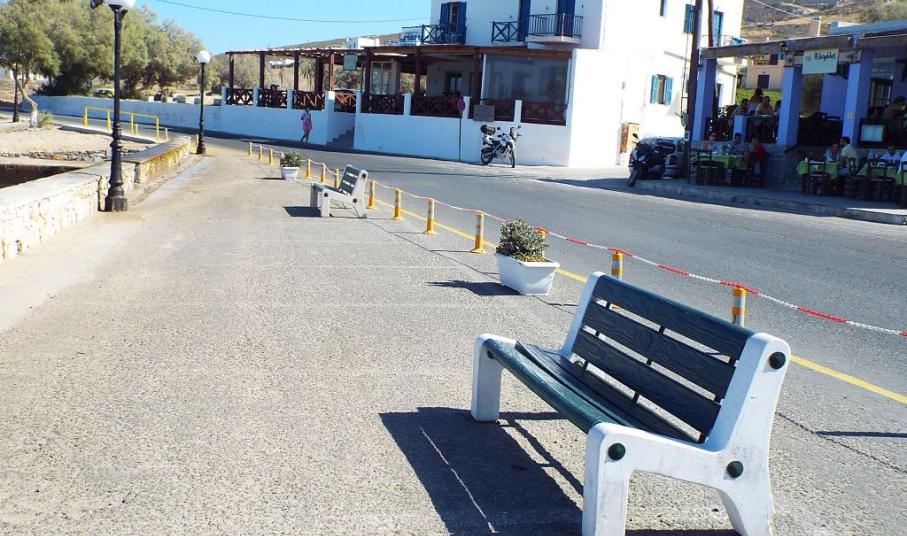 Έπειτα από την τοποθέτηση των κολονακίων, που απαγορεύουν τη στάθμευση των οχημάτων, κατά την καλοκαιρινή περίοδο, προκειμένου να εκτελούνται απρόσκοπτα οι στάσεις των ΜΜΜ και καθώς λειτουργεί μεγάλος χώρος στάθμευσης σε οικόπεδο πλησίον της παραλίας, προχώρησε και η τοποθέτηση για τα παγκάκια, έτσι ώστε να εξυπηρετούνται, τόσο οι επιβάτες, που περιμένουν στη στάση, όσο και οι επισκέπτες της παραλίας, όταν θελήσουν να απολαύσουν τη θέα.