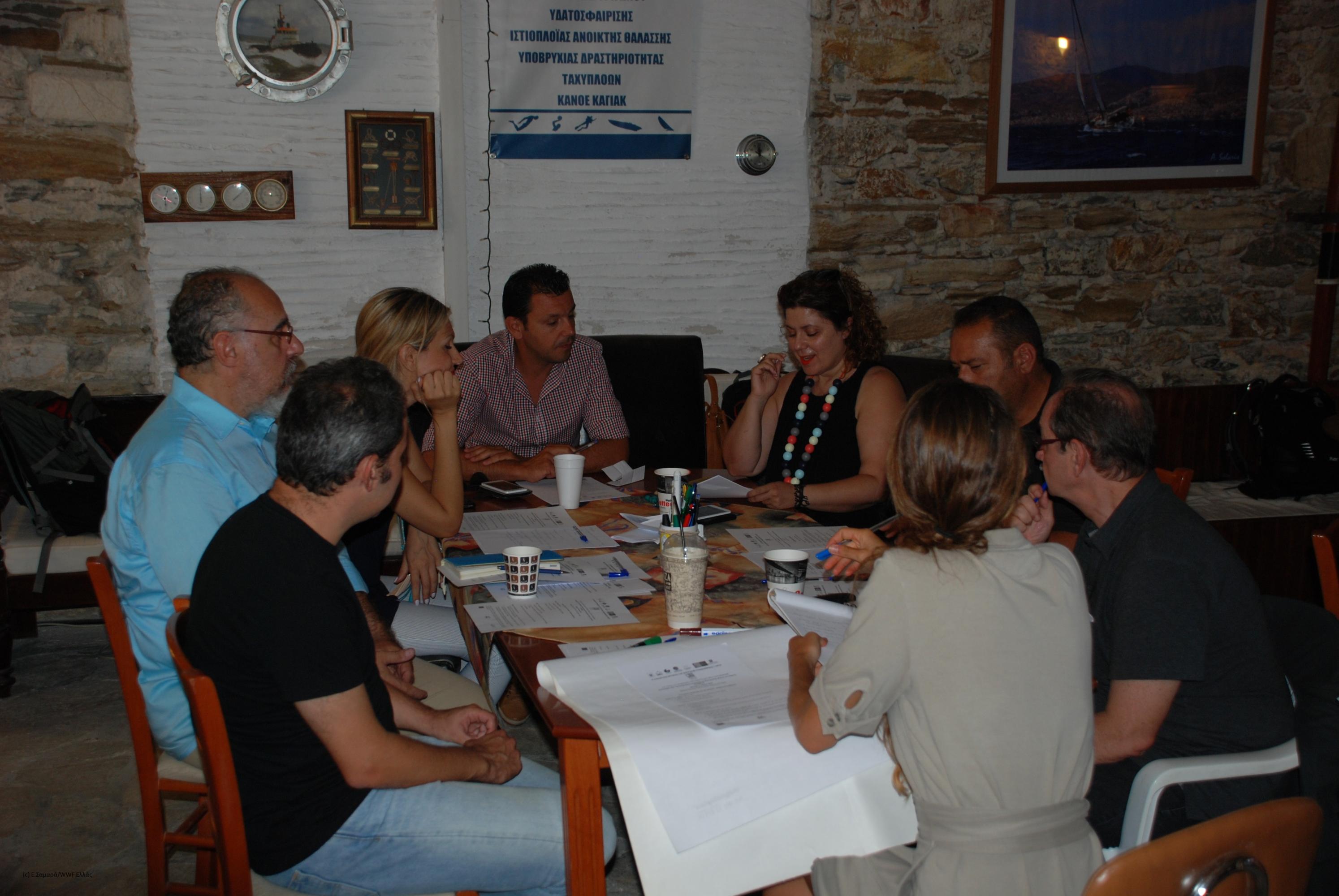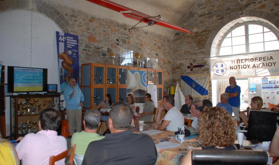 Τα μέλη της Επιτροπής, που αποτελείται από ψαράδες, φορείς που εκπροσωπούν την τοπική αυτοδιοίκηση, την πολιτεία, ερευνητικά ινστιτούτα, αναπτυξιακούς φορείς, πανεπιστήμια και ΜΚΟ έκαναν ερωτήσεις, χωρίστηκαν σε ομάδες εργασίας και δούλεψαν πάνω σε αυτά που έμαθαν, εξέφρασαν απορίες, σημείωσαν αυτά που τους έκαναν εντύπωση και συζήτησαν πώς θα μπορούσαν όλα τα παραπάνω δεδομένα να συμβάλουν στην προστασία και διαχείριση του νησιού. Επακολούθησε παρουσίαση των αποτελεσμάτων των ομάδων εργασίας στην Ολομέλεια οπότε και οι ερευνητές απάντησαν στα ερωτήματα που είχαν προκύψει.