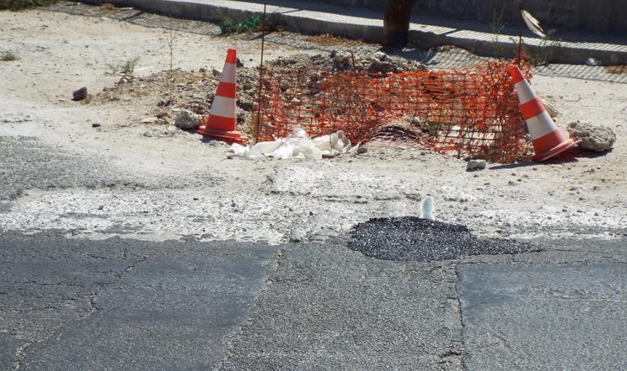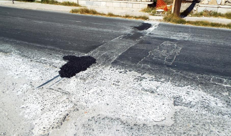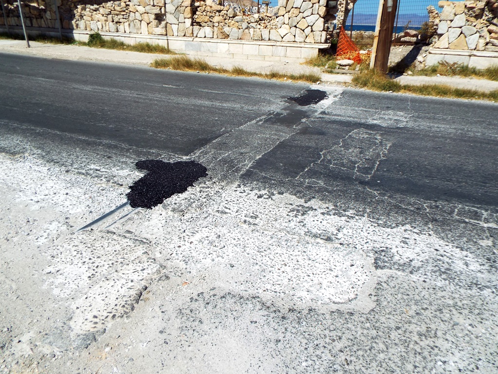 Ήδη από το πρώτο διάστημα έπειτα από τις εργασίες, που πραγματοποίησε με ευθύνη της η ΔΕΗ, για το πέρασμα αγωγών, προς τη θάλασσα, διαφάνηκε ξεκάθαρα, πως είχε διαπραχθεί σοβαρή κακοτεχνία, καθώς, αμέσως μετά τη ρίψη ασφάλτου πάνω από τις δύο λωρίδες, όπου είχε αφαιρεθεί τμήμα του οδοστρώματος, για τη διέλευση των αγωγών, στο συγκεκριμένο σημείο παρατηρήθηκε καθίζηση και «σπάσιμο» της ασφάλτου σε κομμάτια, τα οποία με τη χρήση του δρόμου, παρασύρονταν από τα οχήματα, με αποτέλεσμα να δημιουργούνται λακκούβες βαθιές και επικίνδυνες, τόσο για τα αυτοκίνητα, όσο κυρίως και για τα δίκυκλα.