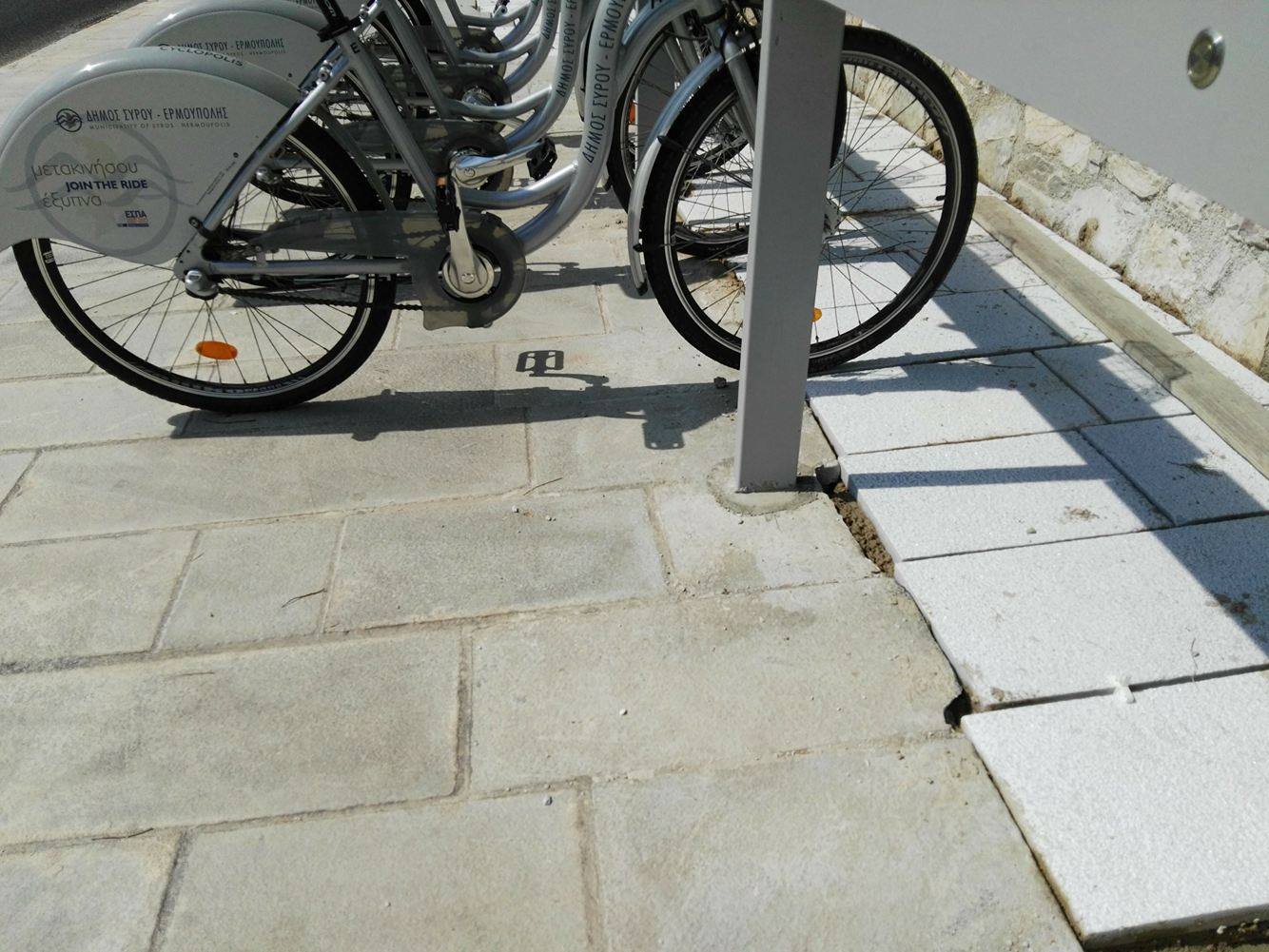 Στην τοποθέτηση μαρμάρινων πλακών που έλειπαν από μεγάλο τμήμα της επιφάνειας που δημιουργήθηκε ο ποδηλατικός σταθμός πλησίον του σούπερ μάρκετ “Μαρινόπουλος” και επί του πεζοδρομίου προχώρησε ο Δήμος Σύρου – Ερμούπολης, με τις σχετικές εργασίες να βρίσκονται σε εξέλιξη.