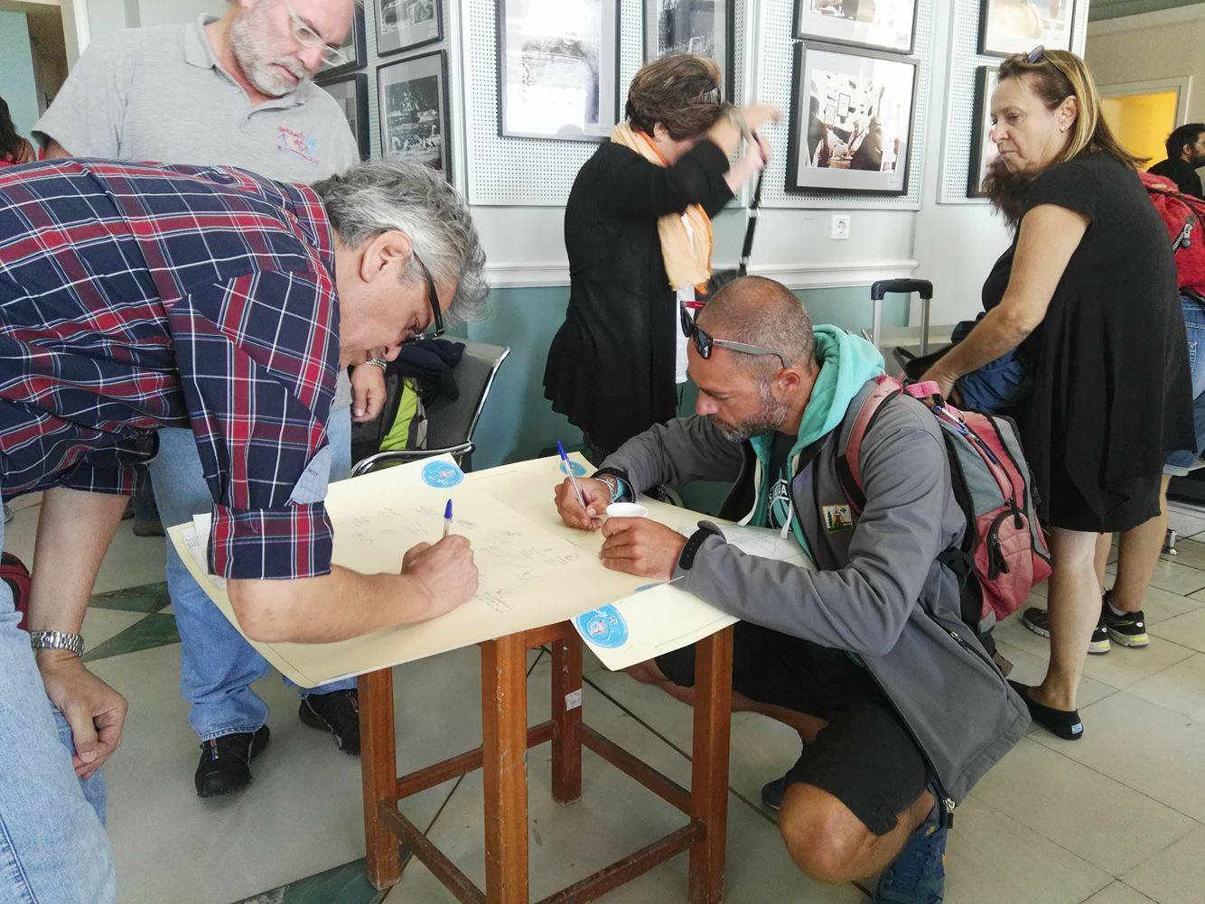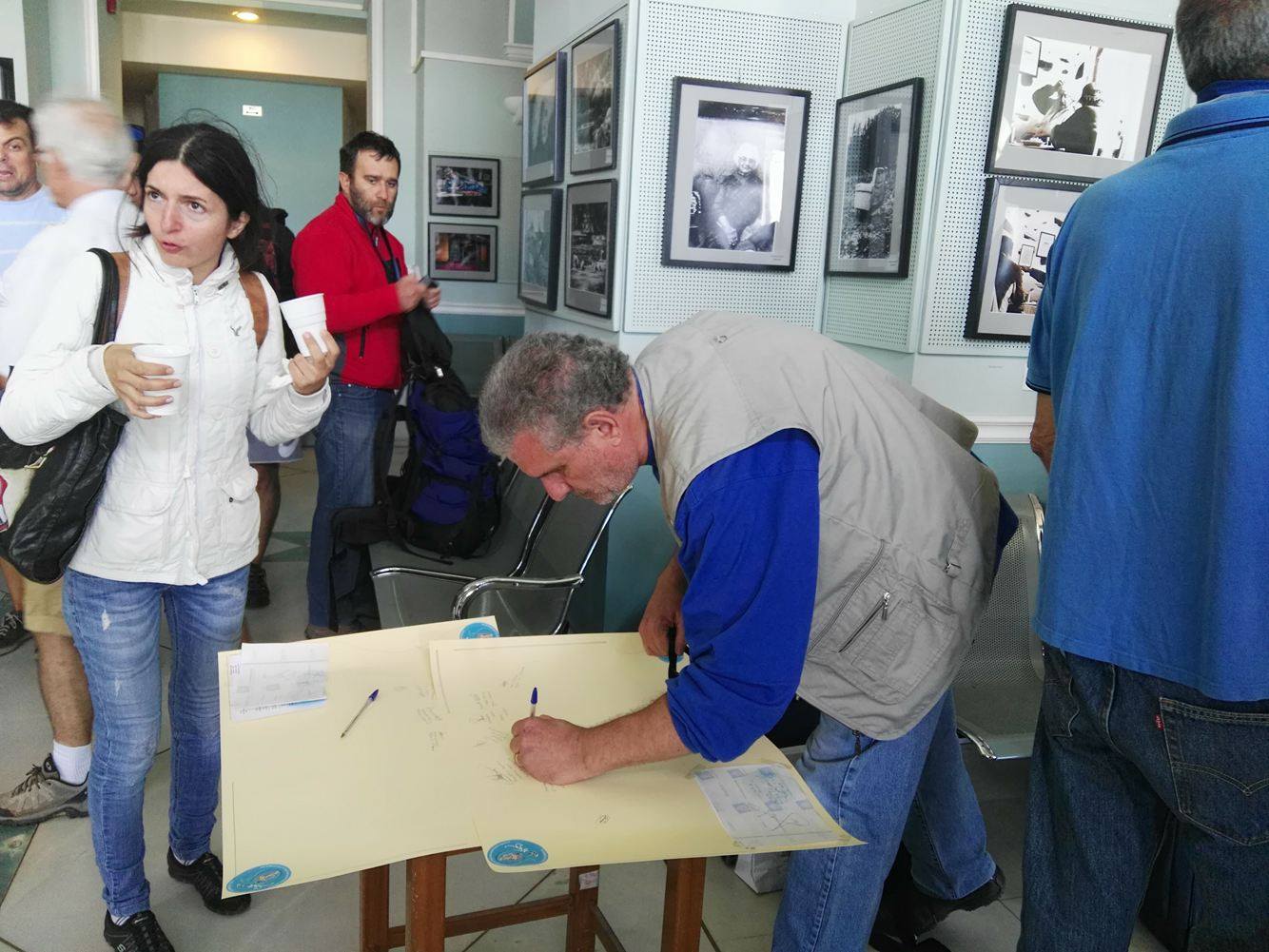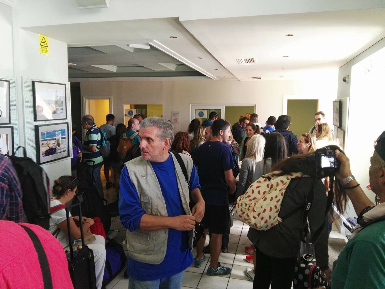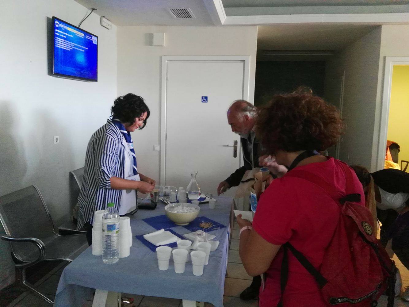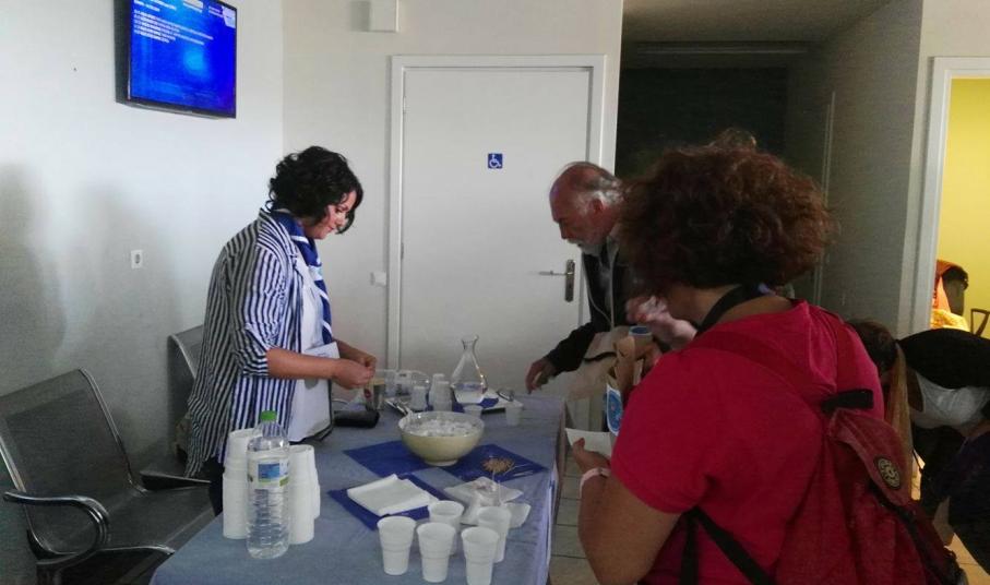 Μετά την άφιξη του πλοίου στο λιμάνι της Ερμούπολης και την αποβίβασή τους, μετακινήθηκαν στον Επιβατικό Σταθμό προκειμένου να απολαύσουν ένα λιτό κέρασμα, να πραγματοποιήσουν την εγγραφή τους και να πάρουν την απαραίτητη ενημέρωση σχετικά με την αγορά της Σύρου και τις επιλογές για την πραγματοποίηση του μεσημεριανού γεύματός τους, καθώς και για την αξιοποίηση του ελεύθερου χρόνου τους.