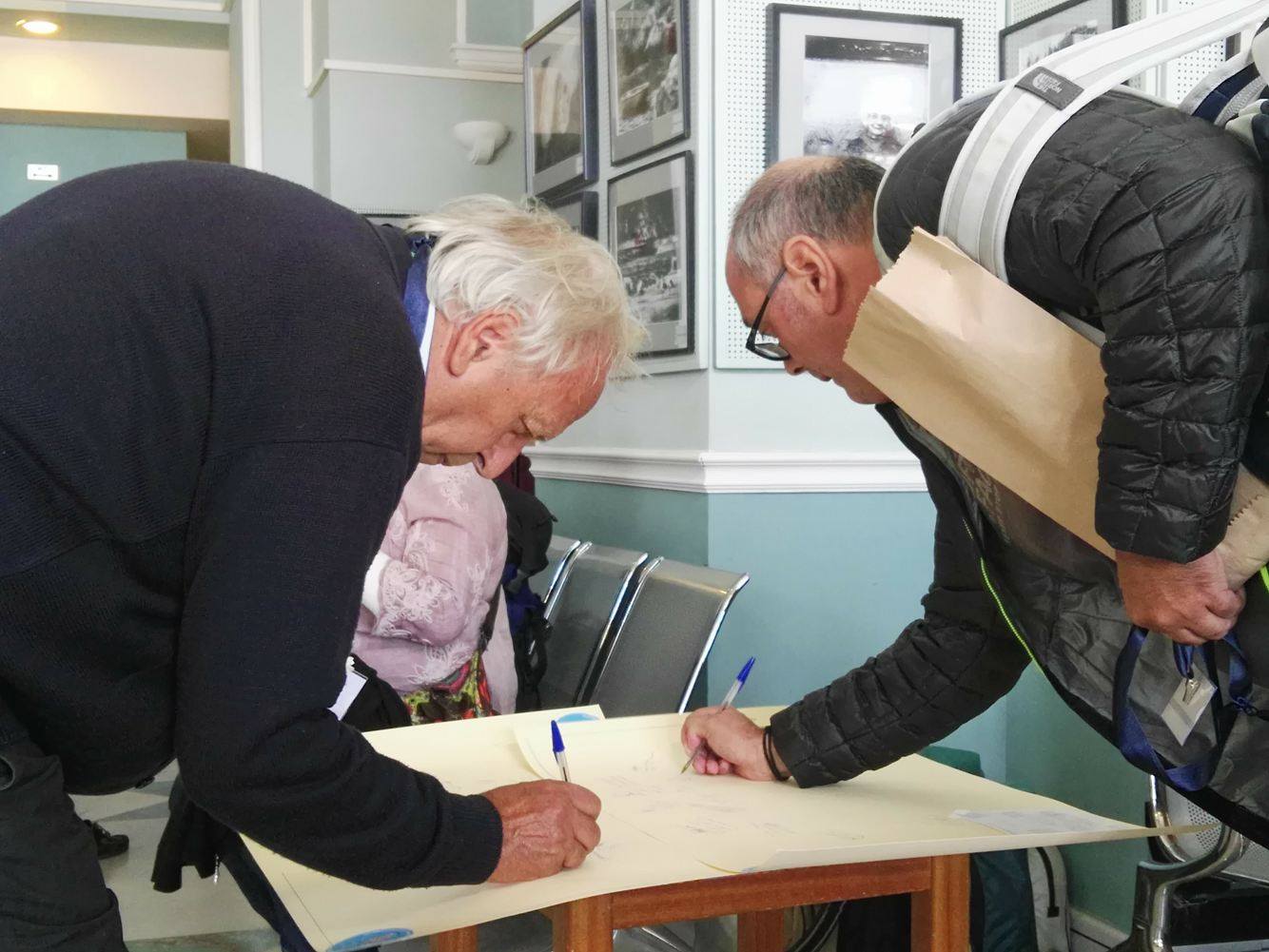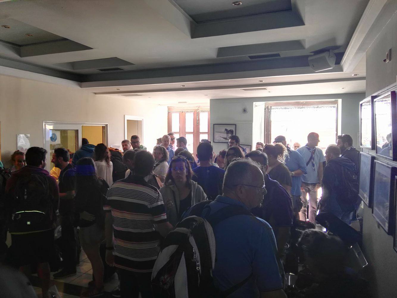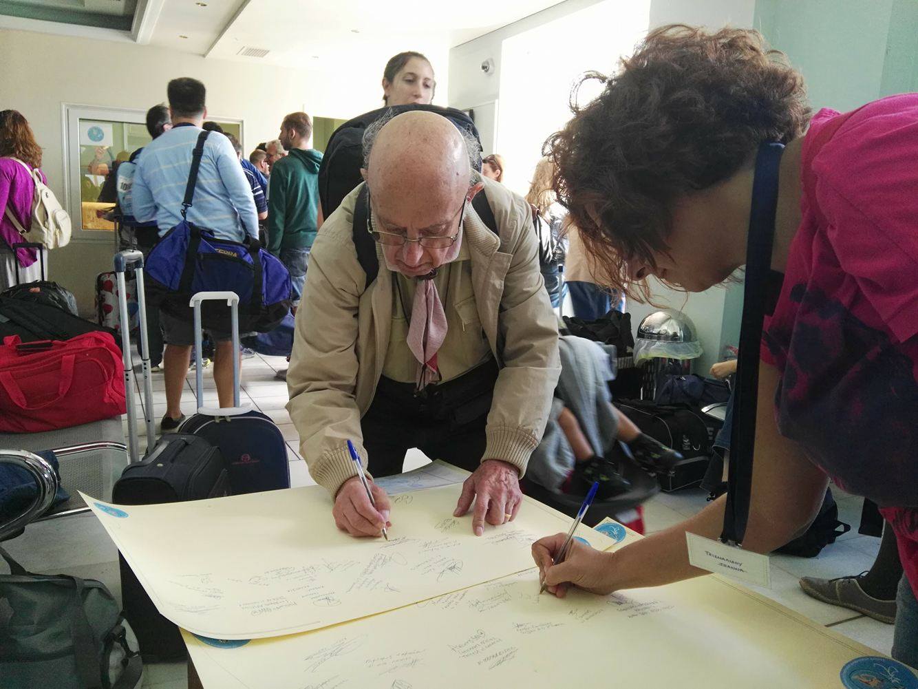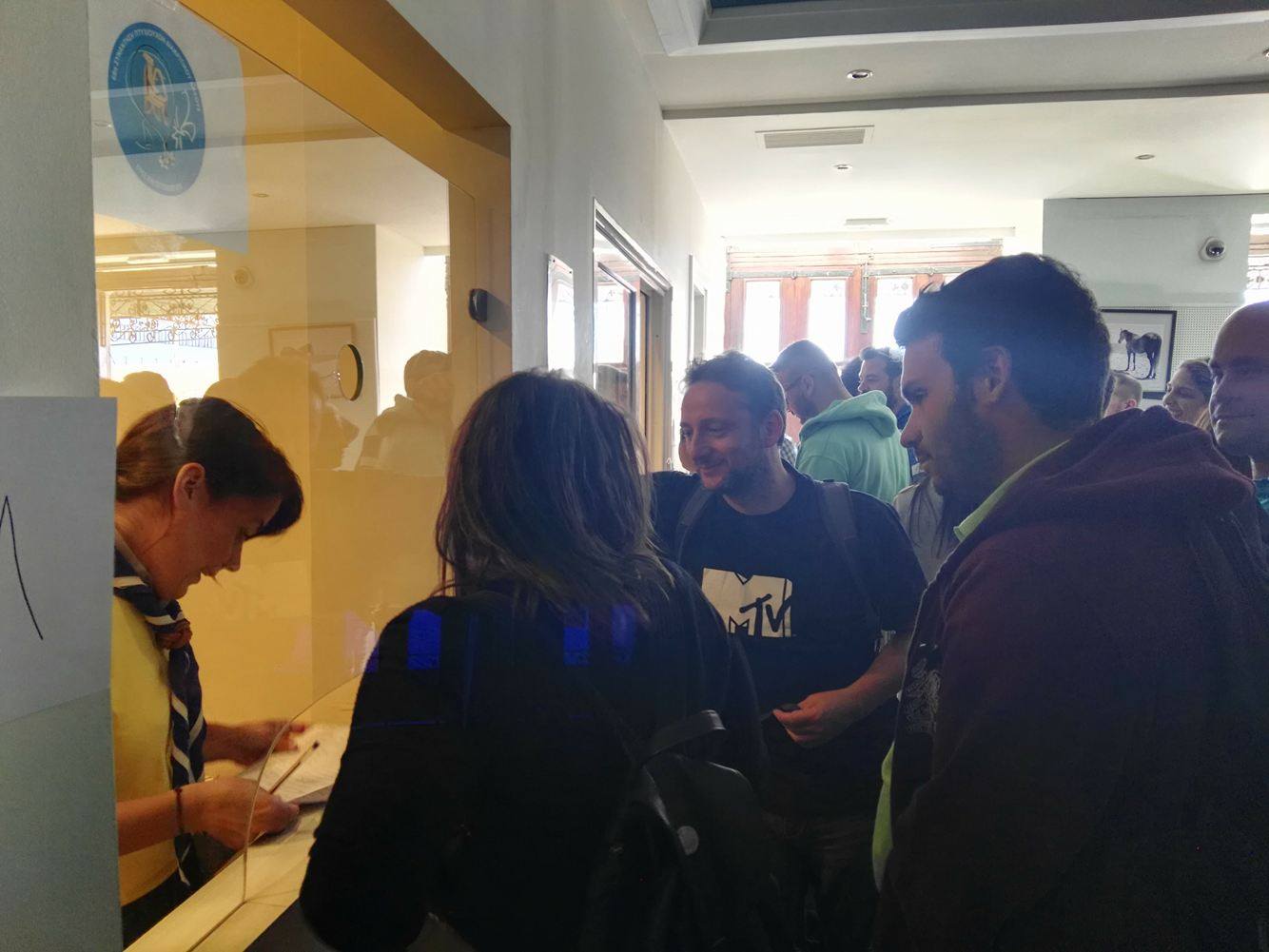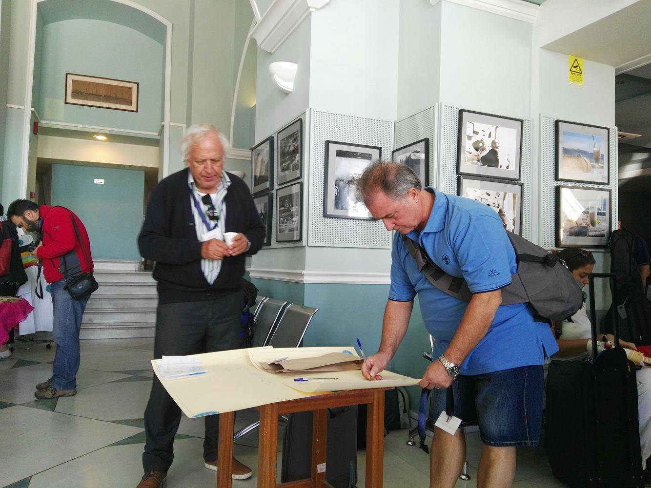 Μετά την άφιξη του πλοίου στο λιμάνι της Ερμούπολης και την αποβίβασή τους, μετακινήθηκαν στον Επιβατικό Σταθμό προκειμένου να απολαύσουν ένα λιτό κέρασμα, να πραγματοποιήσουν την εγγραφή τους και να πάρουν την απαραίτητη ενημέρωση σχετικά με την αγορά της Σύρου και τις επιλογές για την πραγματοποίηση του μεσημεριανού γεύματός τους, καθώς και για την αξιοποίηση του ελεύθερου χρόνου τους.