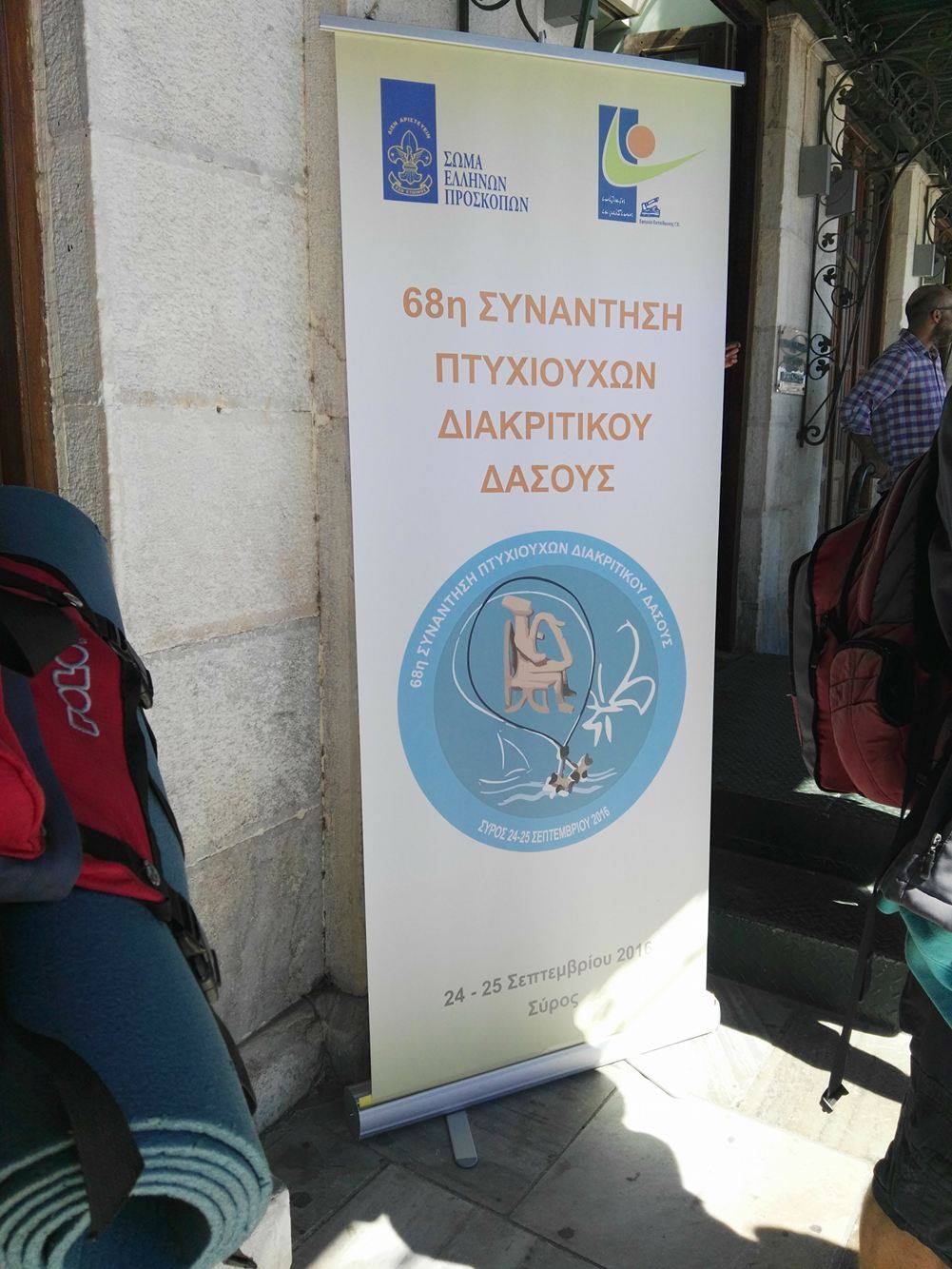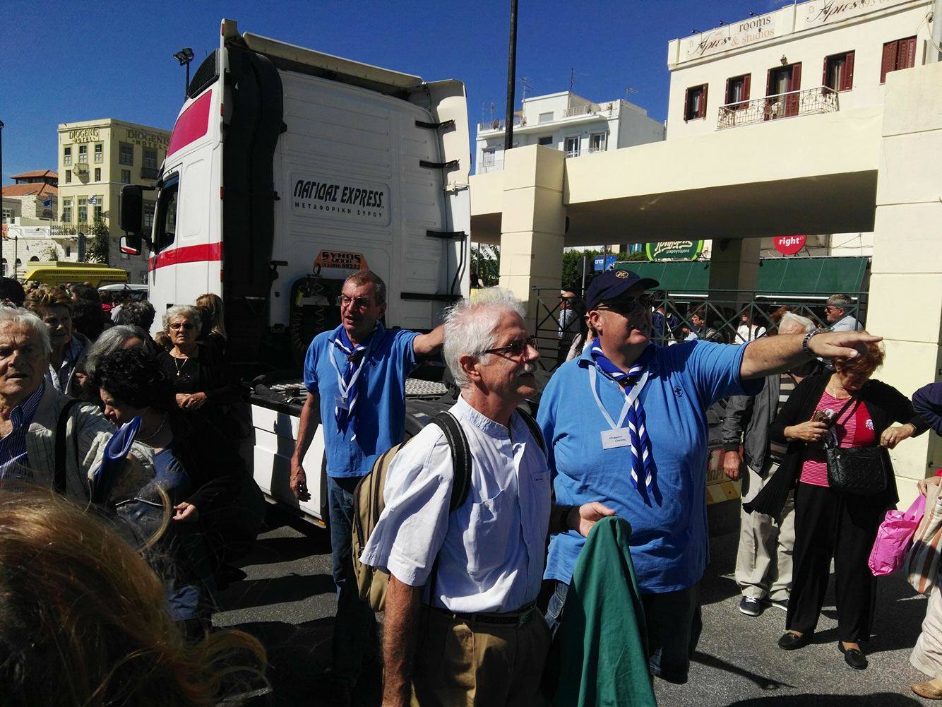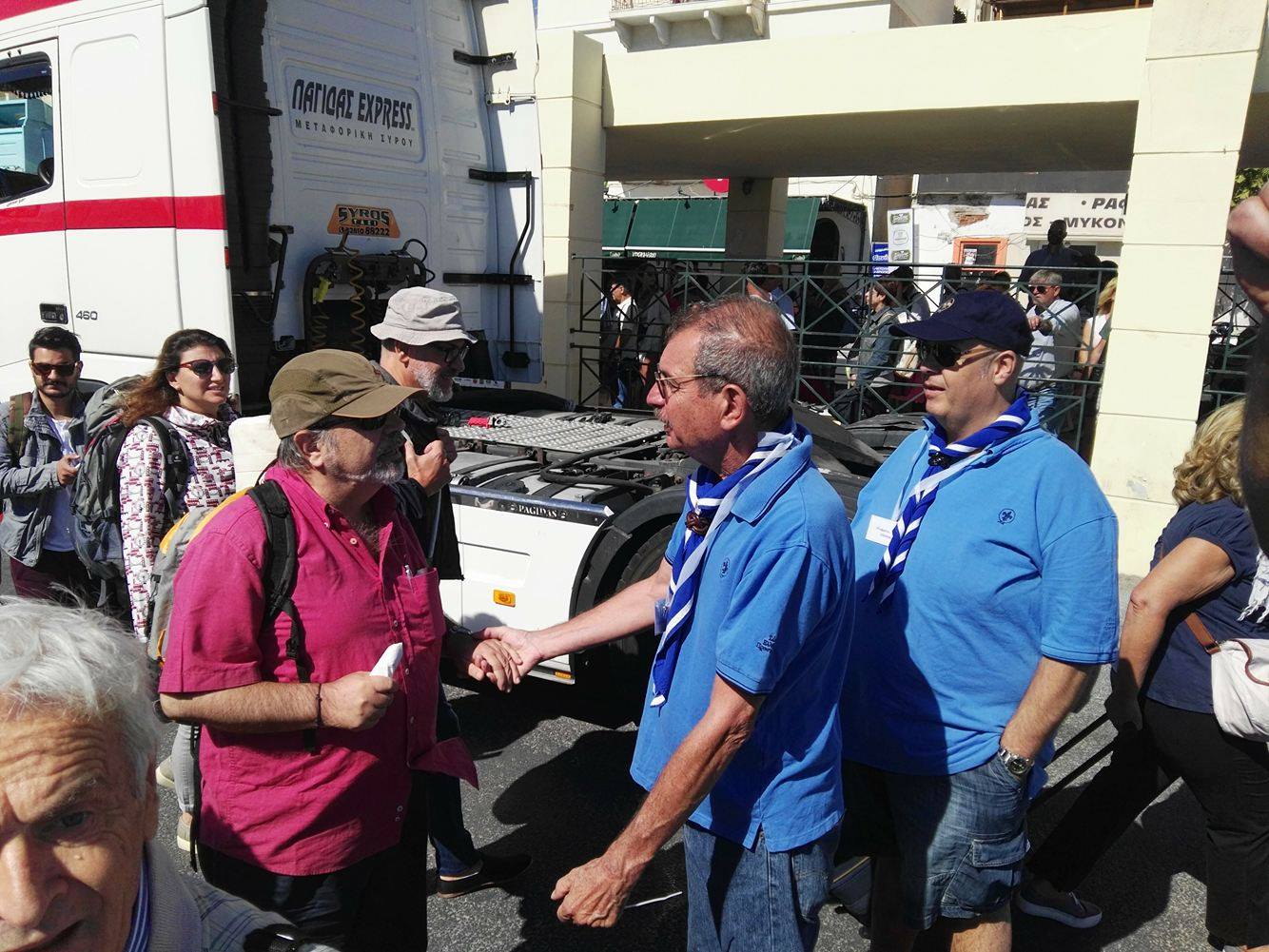 Εγκάρδιο κι αδελφικό καλωσόρισμα επεφύλαξε η ομάδα υποδοχής των Προσκόπων στη Σύρο με επικεφαλής τον Περιφερειακό Έφορο Προσκόπων Κυκλάδων, Σωτήριο Φραγκίδη προς το σύνολο των μελών της Προσκοπικής “οικογένειας” που αφίχθησαν σήμερα το πρωί στο νησί, από όλη την Ελλάδα, στο πλαίσιο της πραγματοποίηση της 68ης Συνάντησης Πτυχιούχων Διακριτικού Δάσους.