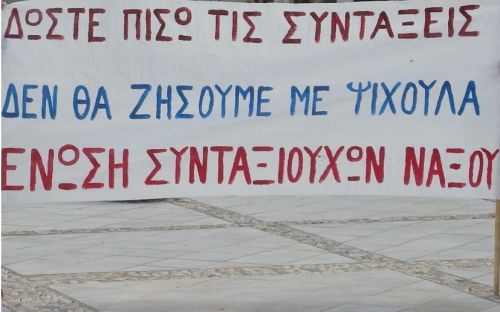 Καλούμε τους συνταξιούχους της Νάξου να οργανωθούν στο Ένωσή μας, για να συνεχίσουμε πιο αποφασιστικά, πιο μαζικά τον αγώνα μας, να αντιπαλέψουμε την κατάσταση που μας έχουν φέρει. Θα συνεχίσουμε να αγωνιζόμαστε για την αναπλήρωση των απωλειών μας την ανάκτηση όλων όσων μας αφαίρεσαν . Όσο κι αν είναι δύσκολη η κατάσταση, πολλά μπορούν να γίνουν, αν αποφασίσουμε να δείξουμε την πραγματική δύναμή μας.