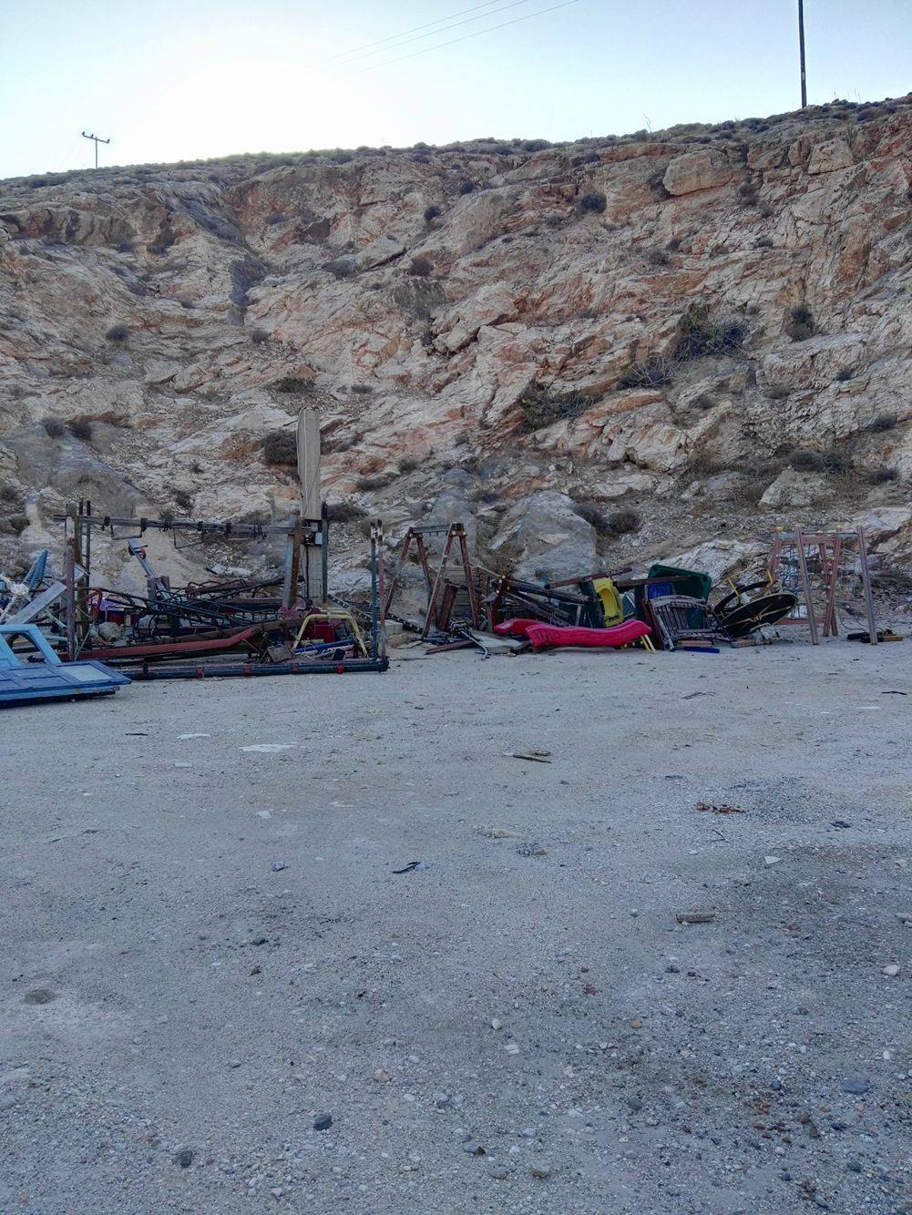 Την ίδια στιγμή που οι περισσότερες παιδικές χαρές της Σύρου έχουν “αδειάσει” από παιχνίδια και κατάλληλο εξοπλισμό με δημοτική απόφαση προκειμένου σταδιακά να βελτιωθούν και να αποκτήσουν τη λειτουργία που επιβάλλεται βάσει ευρωπαϊκών οδηγιών, ο εξοπλισμός που έχει αφαιρεθεί, έχει αφεθεί εκτεθειμένος σε ανοικτό χώρο πλησίον του πολιτιστικού χώρου “Μάνος Ελευθερίου”.