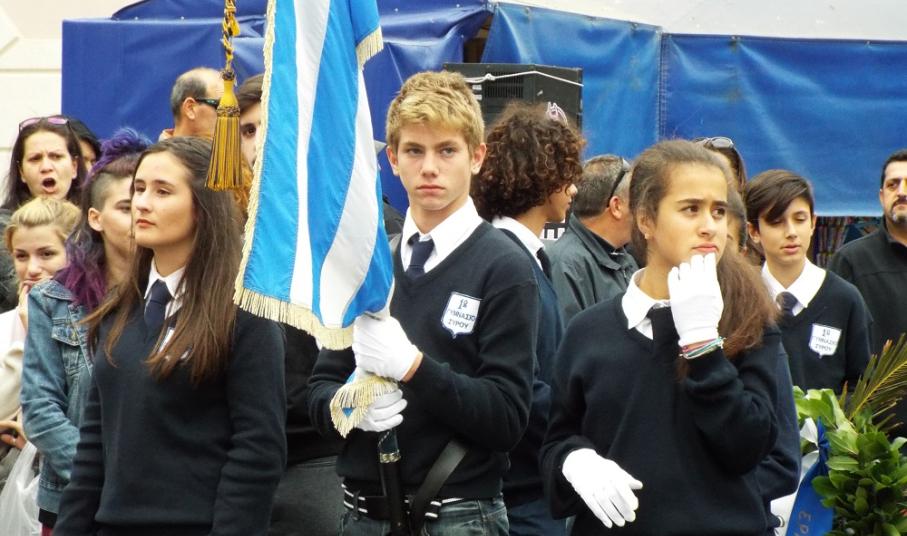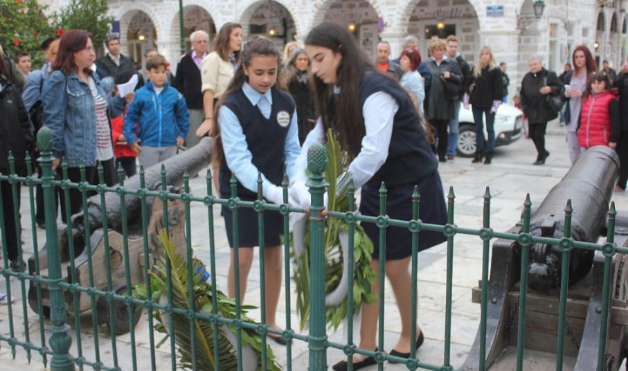 Υπερήφανα και διατηρώντας υψηλό το αίσθημα σεβασμού προς την ηρωική αντίσταση των Ελλήνων που αγωνίσθηκαν το 1940, προχώρησαν στην καθιερωμένη στεφάνωση οι μαθητές όλων των βαθμίδων της Πρωτοβάθμιας και Δευτεροβάθμιας Εκπαίδευσης, το Σώμα Ελλήνων Προσκόπων, σπουδαστές της ΑΕΝ Σύρου καθώς και εκπρόσωποι του Ναυτικού Ομίλου Σύρου.