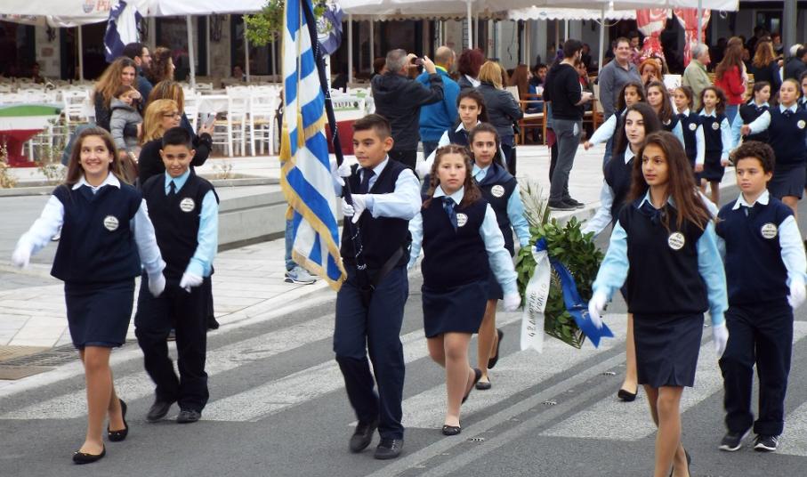 Ενόψει της αυριανής κορύφωσης των επετειακών εκδηλώσεων και της παρέλασης για την εθνική εορτή της 28ης Οκτωβρίου, σήμερα, το σύνολο των συμμετεχόντων κατέθεσε στεφάνια στα μνημεία της πόλης, αποσπώντας το θερμό χειροκρότημα των πολιτών, γονέων και φίλων τους, που παρά τη βαριά συννεφιά παρακολούθησαν απρόσκοπτα την παρέλαση των μαθητών.