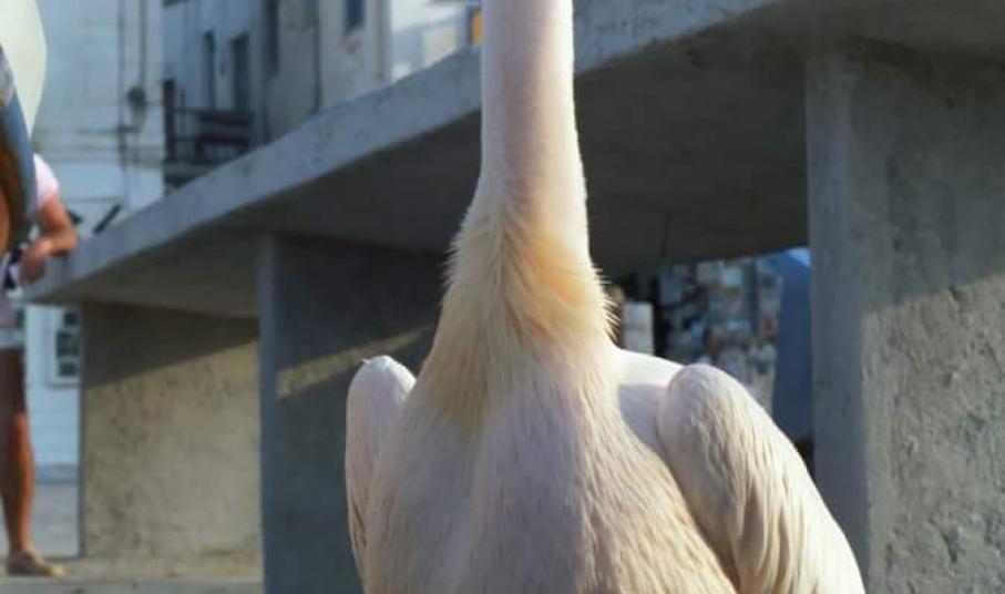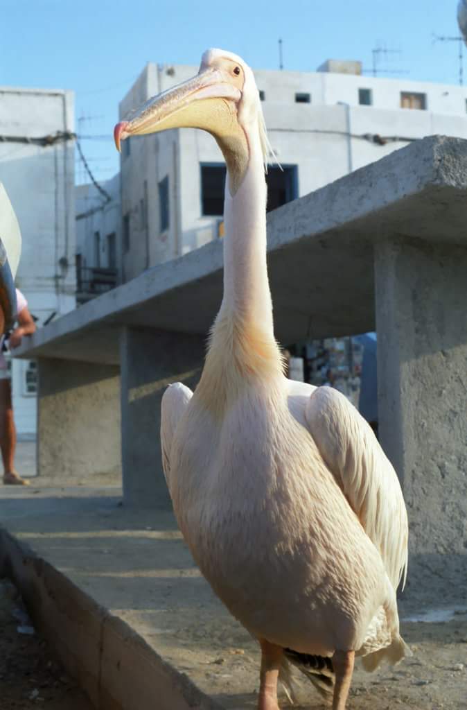 Ο πολυφωτογραφισμένος ροζ πελεκάνος η μασκότ της Μυκόνου ο οποίος περιφέρεται αμέριμνος στην χώρα της Μυκόνου ανάμεσα σε χιλιάδες τουρίστες.