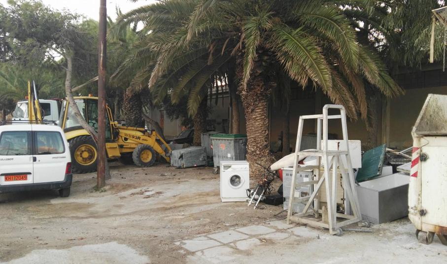 Σε χώρο εναπόθεσης κατεστραμμένων ηλεκτρικών συσκευών καθώς και άχρηστου εξοπλισμού εσωτερικού χώρου έχει μετατραπεί τμήμα πλησίον της εισόδου του χώρου στάθμευσης των δημοτικών οχημάτων στη θέση “Ταρσανάς”.