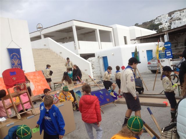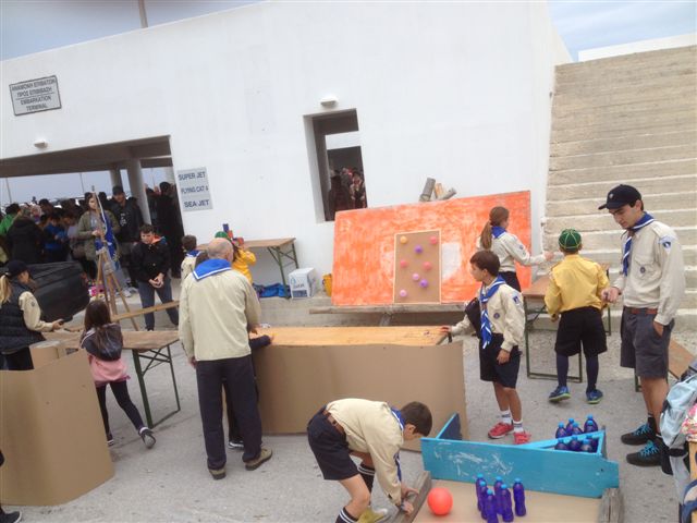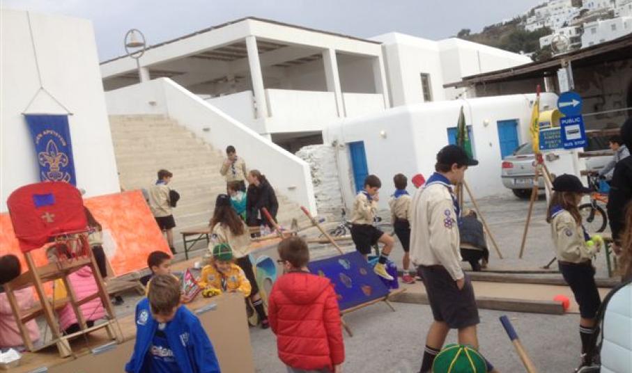 Με μεγάλη επιτυχία λειτούργησε το «Πρόσκοπο-Λούνα Παρκ» στα πλαίσια του Χριστουγεννιάτικου Παζαριού της Φιλοζωικής Μυκόνου. Οι Ναυτοπρόσκοποι και τα Λυκόπουλα έφεραν στο χώρο παιχνίδια που κατασκεύασαν μόνοι τους από ανακυκλωμένα υλικά και παιχνίδια που κατασκευάστηκαν στην Εστία. Τα άδεια μπουκάλια απέκτησαν χρώμα κι έγιναν κορύνες του μπόουλινγκ. Ένα πεταμένο κομμάτι κόντρα-πλακέ απέκτησε χρώμα, τρύπες, διχτάκια από πατάτες κι έγινε ταμπλό ρίψεων. Ντενεκεδάκια βάφτηκαν, τοποθετήθηκαν σε πυραμίδες κι έγιναν στόχος για τα αυτοσχέδια μπαλάκια που οι Πρόσκοποι κατασκεύασαν από μπαλόνια που παραγέμισαν με ρύζι.