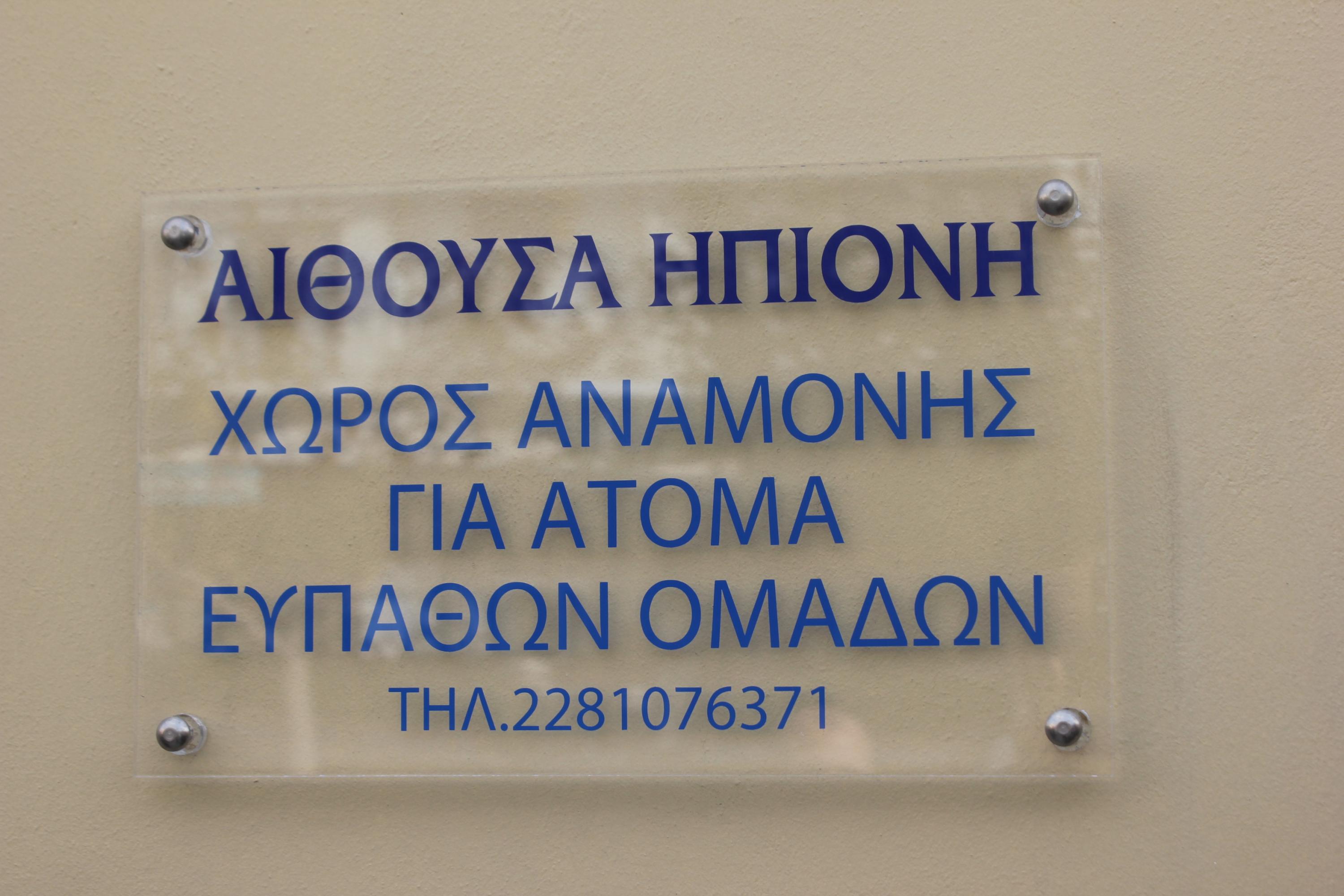 Η αίθουσα αναμονής για άτομα ευπαθών ομάδων με το όνομα «Ηπιόνη» -σύζυγος του Θεού της Ιατρικής, Ασκληπιού- εγκαινιάστηκε χθες το πρωί από το Λιμενικό Ταμείο Σύρου, παρουσία του Δημάρχου Σύρου Γιώργου Μαραγκού, του Αντιπεριφερειάρχη Κυκλάδων Γιώργου Λεονταρίτη και εκπροσώπων της τοπικής αυτοδιοίκησης.
