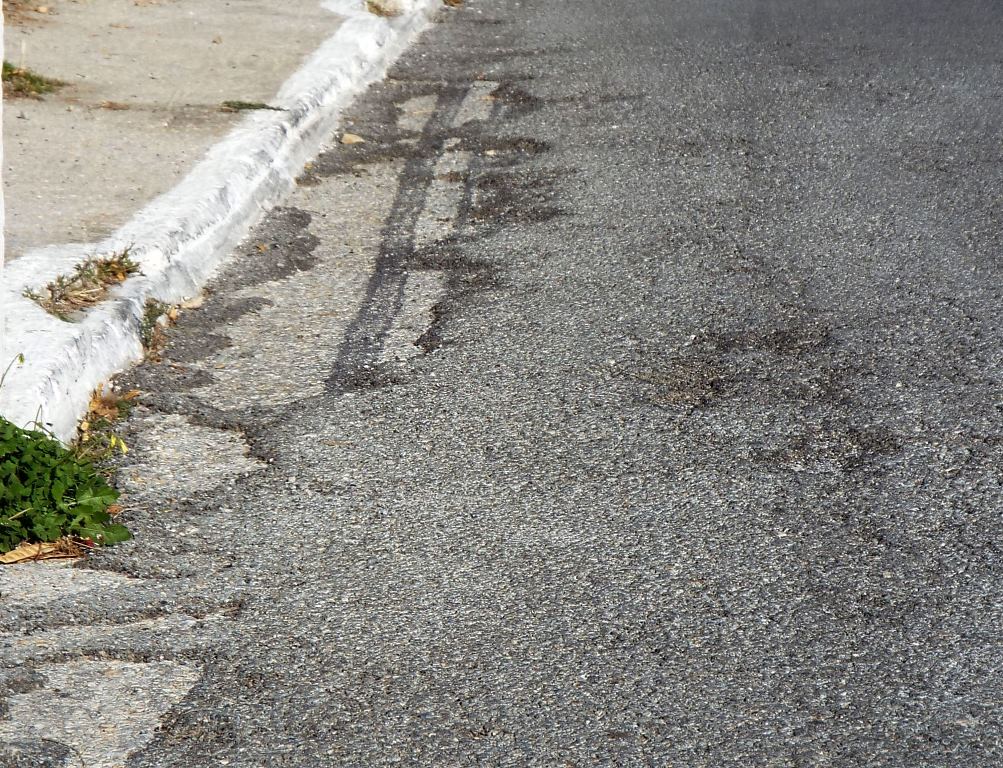 Παρά το γεγονός, πως ασφαλτόστρωση στην οδό Εθν. Αντιστάσεως είχε πραγματοποιηθεί στο πρόσφατο σχετικά παρελθόν, ενδεχομένως λόγω κακών καιρικών συνθηκών κατά τη διάρκεια υλοποίησης, ή άλλων τεχνικών ζητημάτων, όπως φαίνεται και στο φωτογραφικό υλικό, το οδόστρωμα σε αρκετά σημεία έχει σπάσει ή έχει αποκολληθεί εντελώς, δημιουργώντας επικίνδυνες λακκούβες, ιδιαίτερα για τα δίκυκλα.