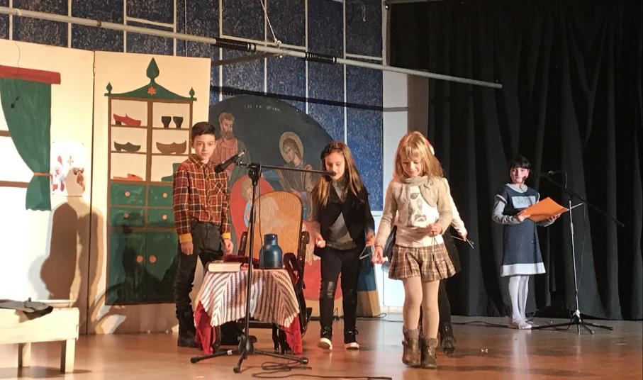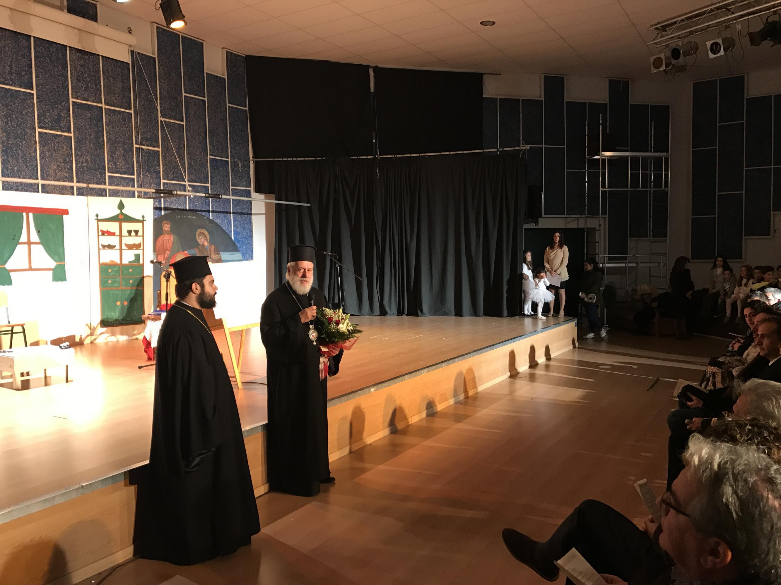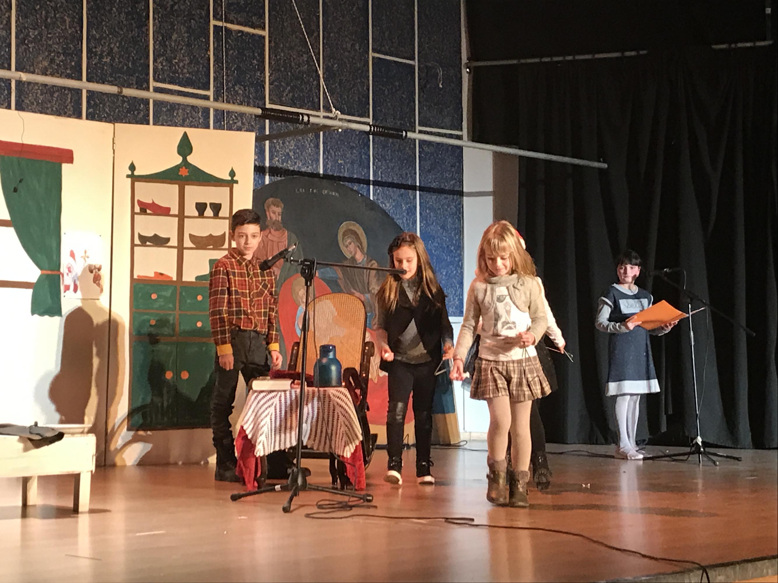 Τα παιδιά των Κατηχητικών Σχολείων παρουσίασαν θεατρικό δρώμενο, υπό την καθοδήγηση της Κατηχήτριας Ειρήνης Ξαγοράρη και τραγούδησαν ύμνους, κάλαντα και ευχές για τα παιδιά όλου του κόσμου, με την καθοδήγηση της κατηχήτριας Μάρσας Μιχαλακέα - Δαφερέρα και με τη συνοδεία μουσικών οργάνων, υπό τη διεύθυνση του Διακόνου Βασιλείου Φραντσίσκου.