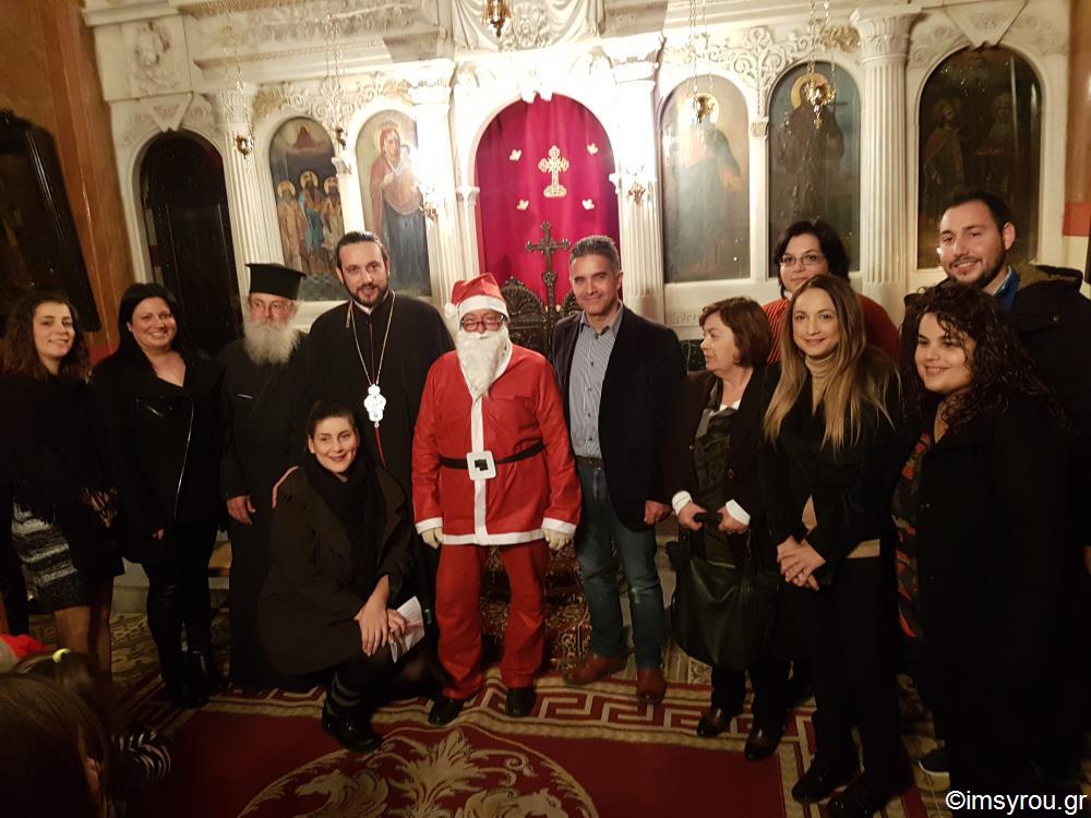 Στο σύντομο χαιρετισμό του, ο κ. Μαραγκός συνεχάρη τα παιδιά και τους κατηχητές, υπογραμμίζοντας ότι θα συνεχίσει να στηρίζει τον Ιερό Ναό του Πολιούχου της Σύρου Αγίου Νικολάου. Η γιορτή ολοκληρώθηκε με την προσφορά δώρων στα παιδιά.