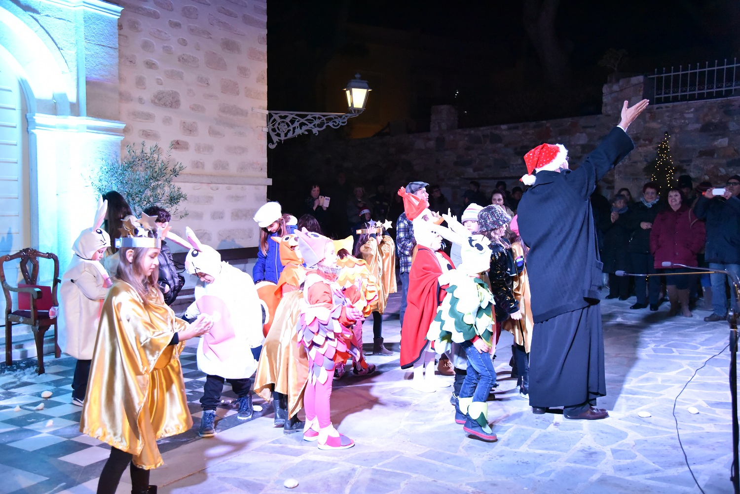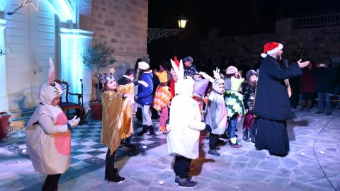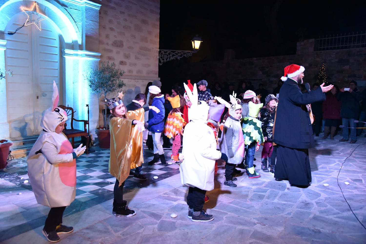 Παρά τη χαμηλή θερμοκρασία, ο προαύλιος χώρος της Παναγίτσας στα Χρούσσα ζεστάθηκε το απόγευμα της Δευτέρας με τις παιδικές φωνές και τους χορούς των παιδιών του Κατηχητικού της Ενορίας, κατά τη διάρκεια της φετινής Χριστουγεννιάτικης γιορτής του.