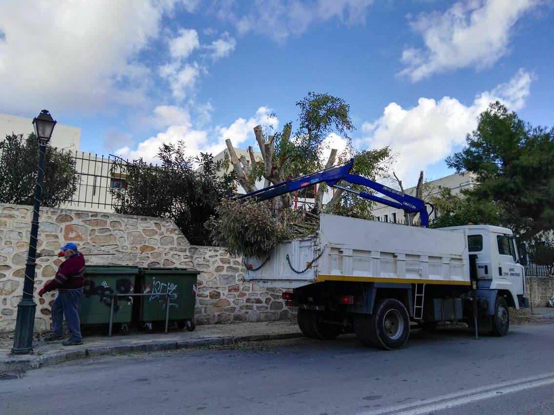 Συγκεκριμένα, εργάτες από το αρμόδιο τμήμα μικρών έργων προχώρησαν σε κλάδεμα των μεγάλων δέντρων που βρίσκονται στον αύλειο χώρο που γειτνιάζει με τον χώρο αναψυχής και την αυλή του Παιδικού Σταθμού, προκειμένου αφενός, να καθαριστεί το εν λόγω τμήμα κι αφετέρου, να αποφευχθεί ενδεχόμενο ατύχημα, από την πτώση κλαδιών, εξαιτίας των έντονων καιρικών φαινομένων.