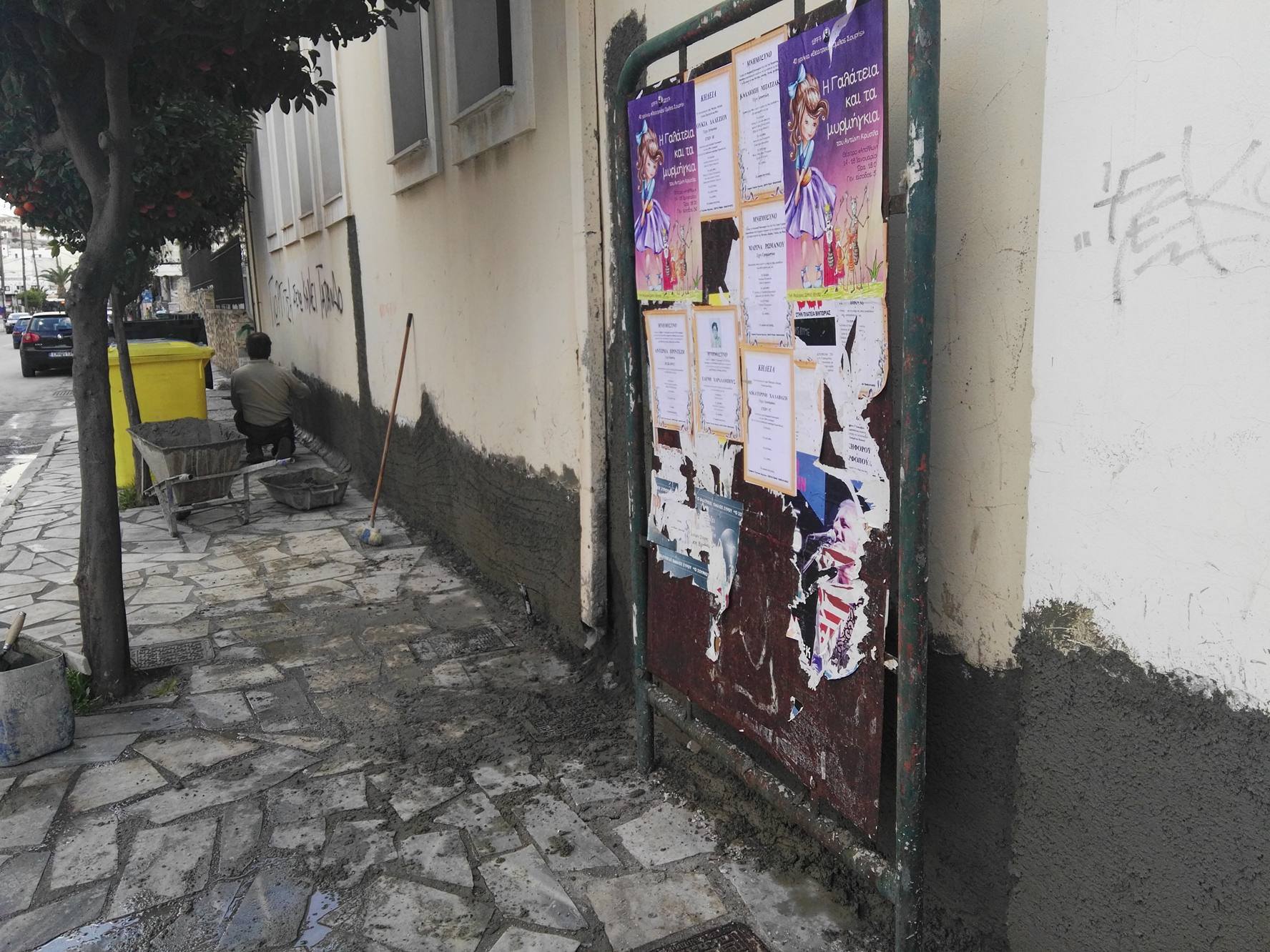 Ήδη, από το πρωί της Δευτέρας, εργάτες του Δήμου βρέθηκαν στις σχολικές εγκαταστάσεις, ώστε να προχωρήσουν σε παρεμβάσεις αναβάθμισης της πρόσοψης του σχολείου και να κάνουν διορθωτικές εργασίες στους τοίχους, αποκαθιστώντας τους σοβάδες στις εξωτερικές επιφάνειες, λαμβάνοντας παράλληλα, το σύνολο των απαιτούμενων μέτρων για την ασφάλεια των μαθητών. Καθ΄ όλη τη διάρκεια των πρωινών ωρών, οι ίδιοι προχώρησαν σε σημαντικό βαθμό τις προγραμματισμένες εργασίες, προκειμένου εντός των επόμενων 24ωρων να έχουν ολοκληρώσει τις παρεμβάσεις τους. Σύμφωνα με όσα τόνισε ο πρόεδρος της Δημοτικής Επιτροπής Παιδείας, Φραγκίσκος Βακόνδιος, οι δαπάνες καλύπτονται από κονδύλι που είχε προβλέψει ο Δήμος για την κάλυψη μέρους των αναγκών σε σχολικά κτίρια της Σύρου, με τον προγραμματισμό της Δημοτικής Αρχής να θέλει τις επόμενες ημέρες, ανάπτυξη παρόμοιων, αλλά και διαφορετικών εργασιών στο 2ο Γυμνάσιο Ερμούπολης καθώς και στο Νηπιαγωγείο της ΆνωΣύρου.