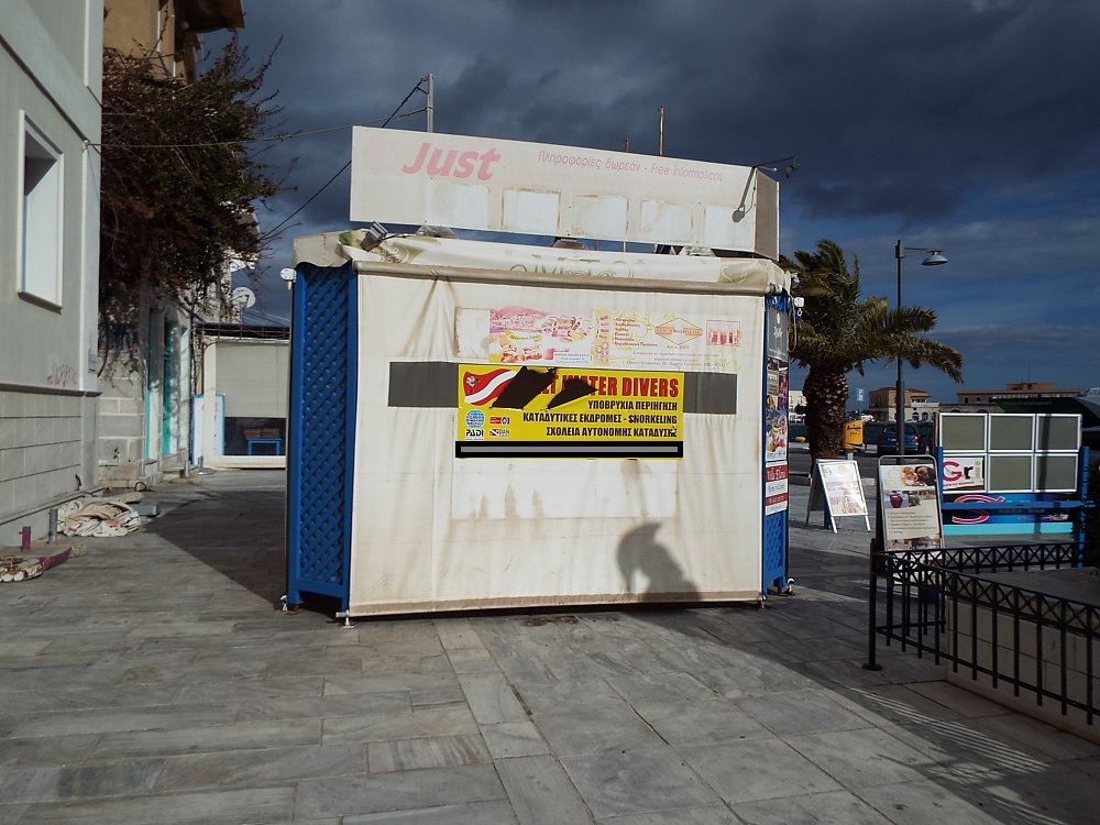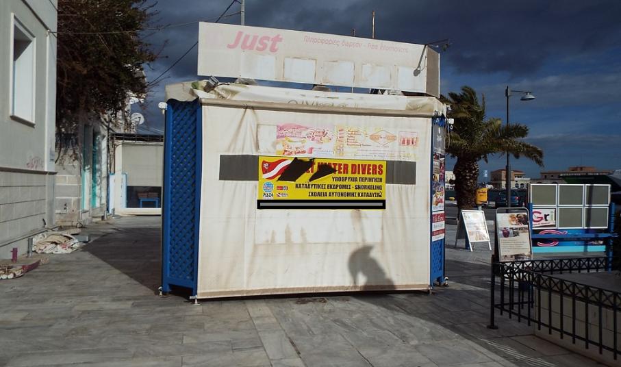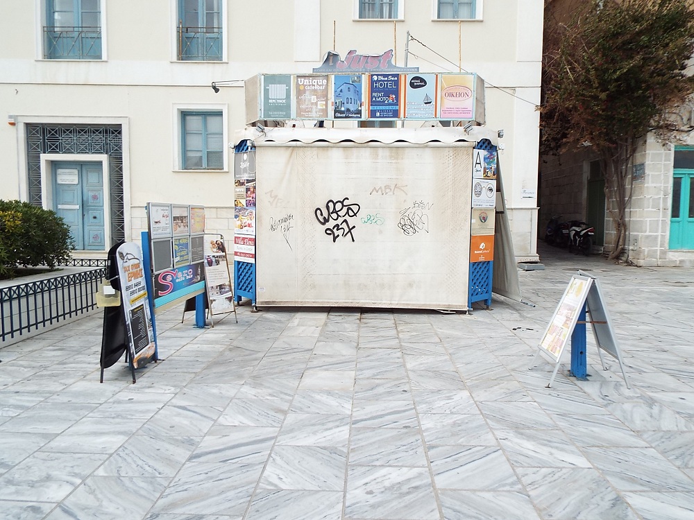 Την γενικότερη εικόνα της “πρόσοψης” της Ερμούπολης, φαίνεται να υποβαθμίζει η παρούσα κατάσταση στην οποία βρίσκεται αυτή τη στιγμή το περίπτερο πληροφοριών, ιδιοκτησίας του Δημοτικού Λιμενικού Ταμείου.