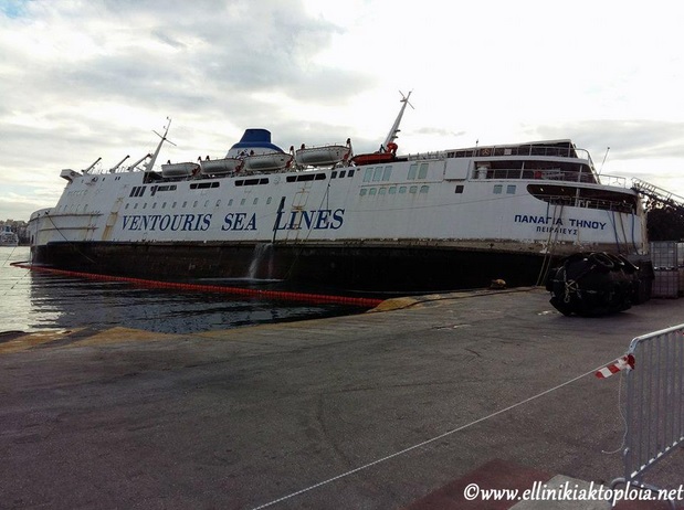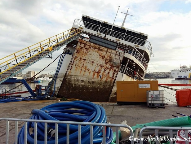 Εντατικά συνεχίζονται οι εργασίες απάντλησης των υδάτων από το πλοίο “Παναγία Τήνου” στο λιμάνι του Πειραιά, οι οποίες όπως φαίνεται στο φωτογραφικό υλικό άρχισαν να αποδίδουν και να επαναφέρουν σταδιακά το πλοίο σε θέση πλεύσης. Πρέπει να σημειωθεί πως, για την υλοποίηση της προσπάθειας έχει “επιστρατευθεί” η Antipollution.