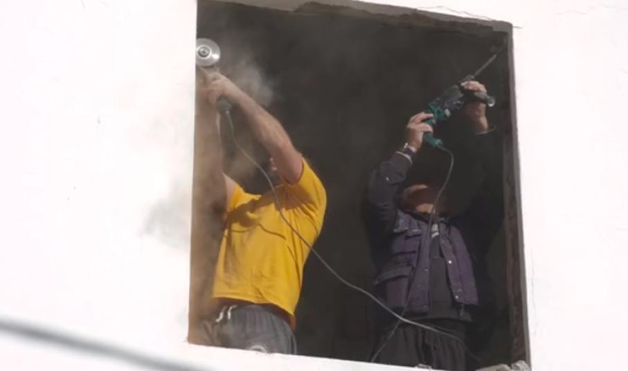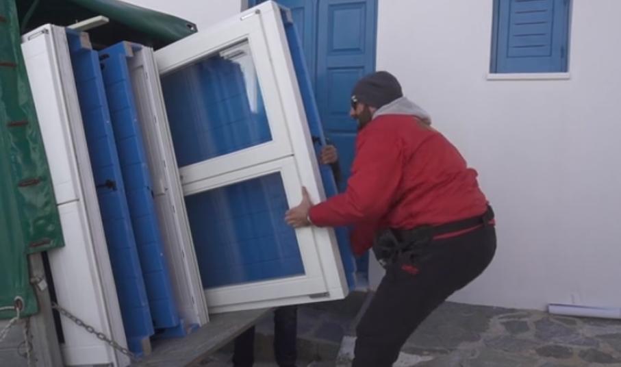 Μέσα σε μία ημέρα, η ομάδα κατάφερε να αντικαταστήσει τα παλιά κουφώματα με καινούρια τα οποία είχαν κατασκευάσει και προσφέρει δωρεάν χορηγοί από τη Σύρο. (Ξυλοτεχνική Σύρου, Στιλβωτήριο Αντώνη Συριανού, χρώματα Vernilac).