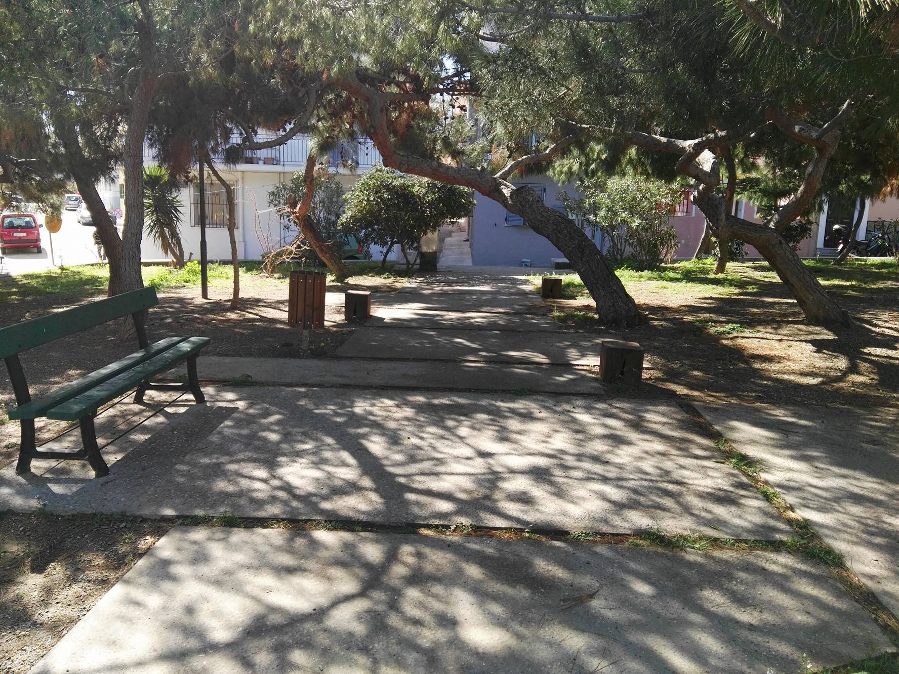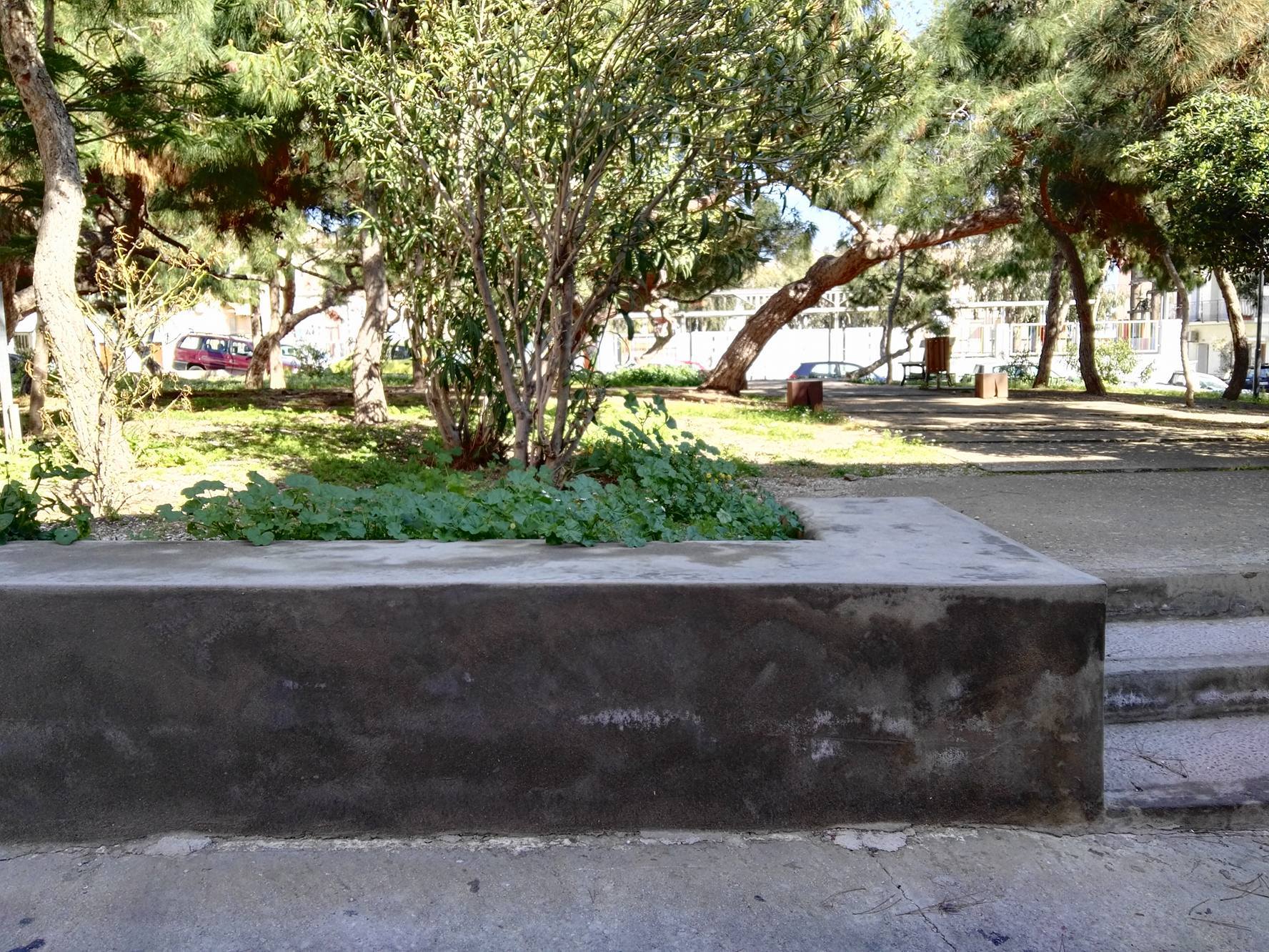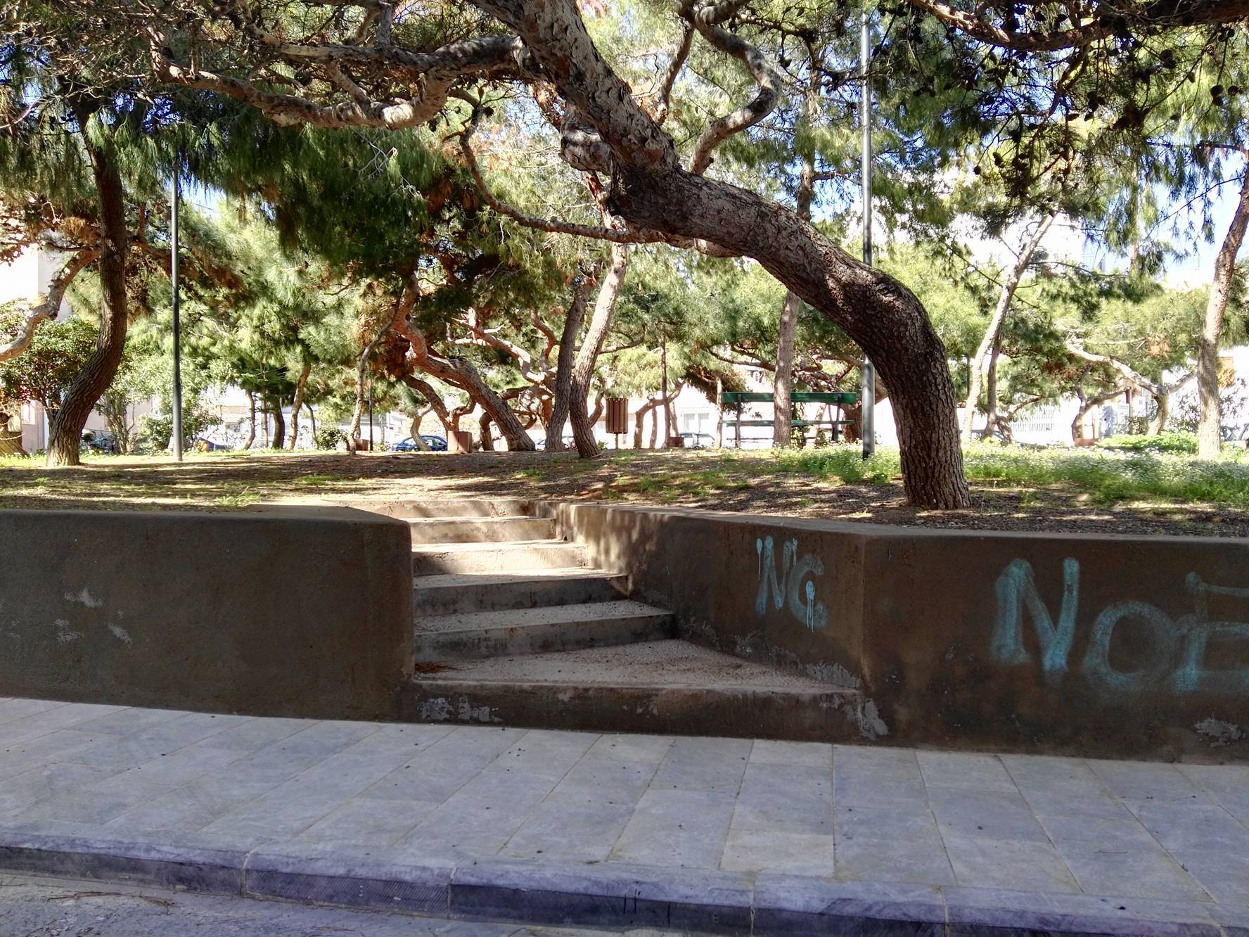 Ο χώρος αρκετών τετραγωνικών μέτρων που συνορεύει σχεδόν με την παιδική χαρά, βελτιώθηκε αρκετά, καθώς δημιουργήθηκε περιμετρικά τοιχίο, διαμορφώθηκαν τα σκαλοπάτια εισόδου κι εξόδου προς και από αυτό, ενώ επιπλέον, ένα σημαντικό τμήμα του, το οποίο διαθέτει καναπεδάκια, απέκτησε το κατάλληλο “έδαφος” για την παραμονή των επισκεπτών.