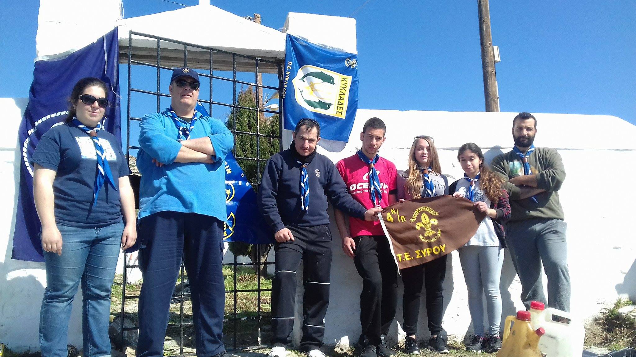 Σημαντική ήταν η συμμετοχή των Προσκόπων Σύρου, οι οποίοι ανέλαβαν τον καθαρισμό τριών περιοχών της Σύρου, τηρώντας μία από τις βασικές αρχές του προσκοπισμού, που δεν είναι άλλη από την προστασία του περιβάλλοντος. Στο πλαίσιο αυτό, ο Περιφερειακός Έφορος Νεκτάριος Αλυφαντής, έφοροι από την ΠΕ Κυκλάδων, Βαθμοφόροι του 4ου Συστήματος Ναυτοπροσκόπων και η 4η Κοινότητα Ανιχνευτών, φρόντισαν, καλλώπισαν και περιποιήθηκαν το Κοιμητήριο των Αγγέλων στην Άνω Σύρο, ιδιοκτησία της Καθολικής Επισκοπής Σύρου. Σημειώνεται μάλιστα πως στο συγκεκριμένο σημείο πραγματοποιούνται καθαρισμοί και άλλες εποχές του χρόνου. «Ήταν ένα μνημείο ξεχασμένο και η αλήθεια είναι πως, από το 2011 που ξεκίνησε αυτή η ιστορία με τους προσκόπους, έχει πάρει μια μορφή και έχει γίνει πιο γνωστό» δήλωσε στην «Κοινή Γνώμη» ο κ. Αλυφαντής.