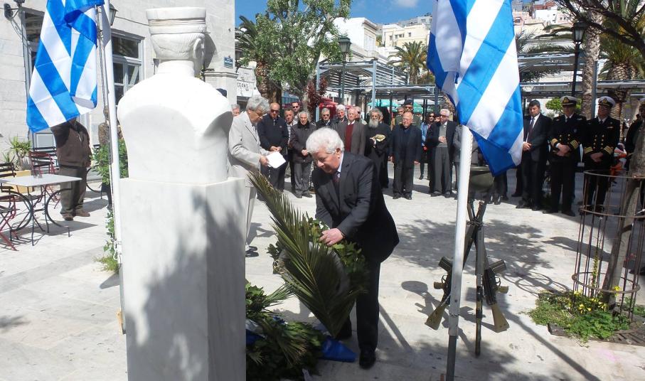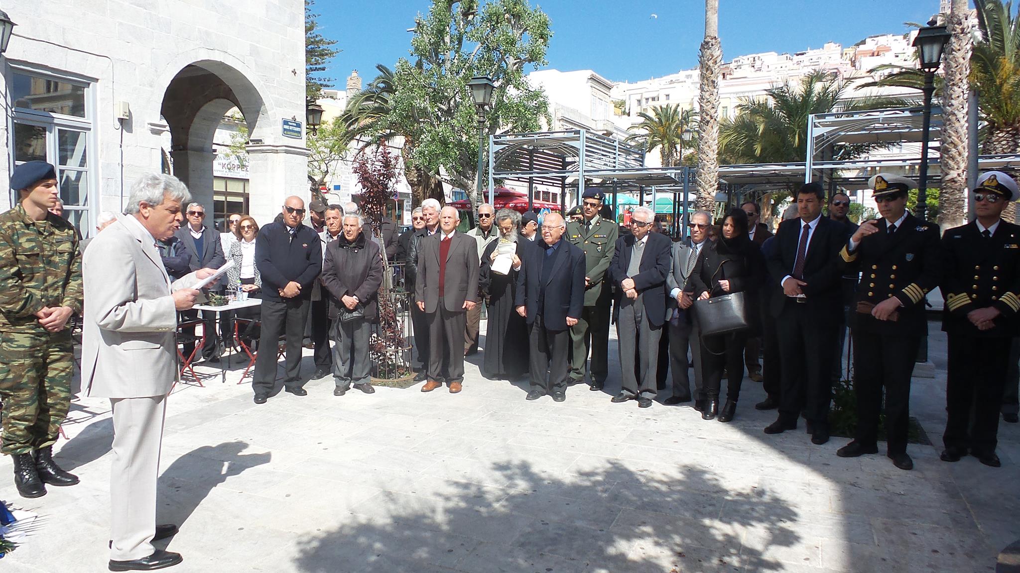 Όπως τόνισε, η συγκεκριμένη επέτειος αποτελεί συνειδητή υποχρέωση απότισης του πρέποντος φόρου τιμής στους συντελεστές της ανεξαρτησίας του έθνους, η οποία αποδεικνύει το ανεπτυγμένο ηθικό του λαού και την ύπαρξη αισθήματος ευγνωμοσύνης διαπαιδαγωγώντας ταυτόχρονα τους νέους να διατηρήσουν άσβεστη τη φλόγα της αγάπης μας για την πατρίδα. Ωστόσο, υποστήριξε πως πολλοί απόγονοι αυτών των ηρώων, μέσα στο γενικό και νοσηρό πλαίσιο της επιχειρούμενης παγκοσμιοποίησης και διαγραφής της ιστορικής και εθνικής μνήμης ξεχνούν και δεν τους τιμούν, ενώ μερικοί αδαείς και ανιστόρητοι χαρακτηρίζουν εθνικά κατορθώματα παγκόσμιας ακτινοβολίας ως αντικείμενα άνευ σημασίας και καθημερινής ρουτίνας.