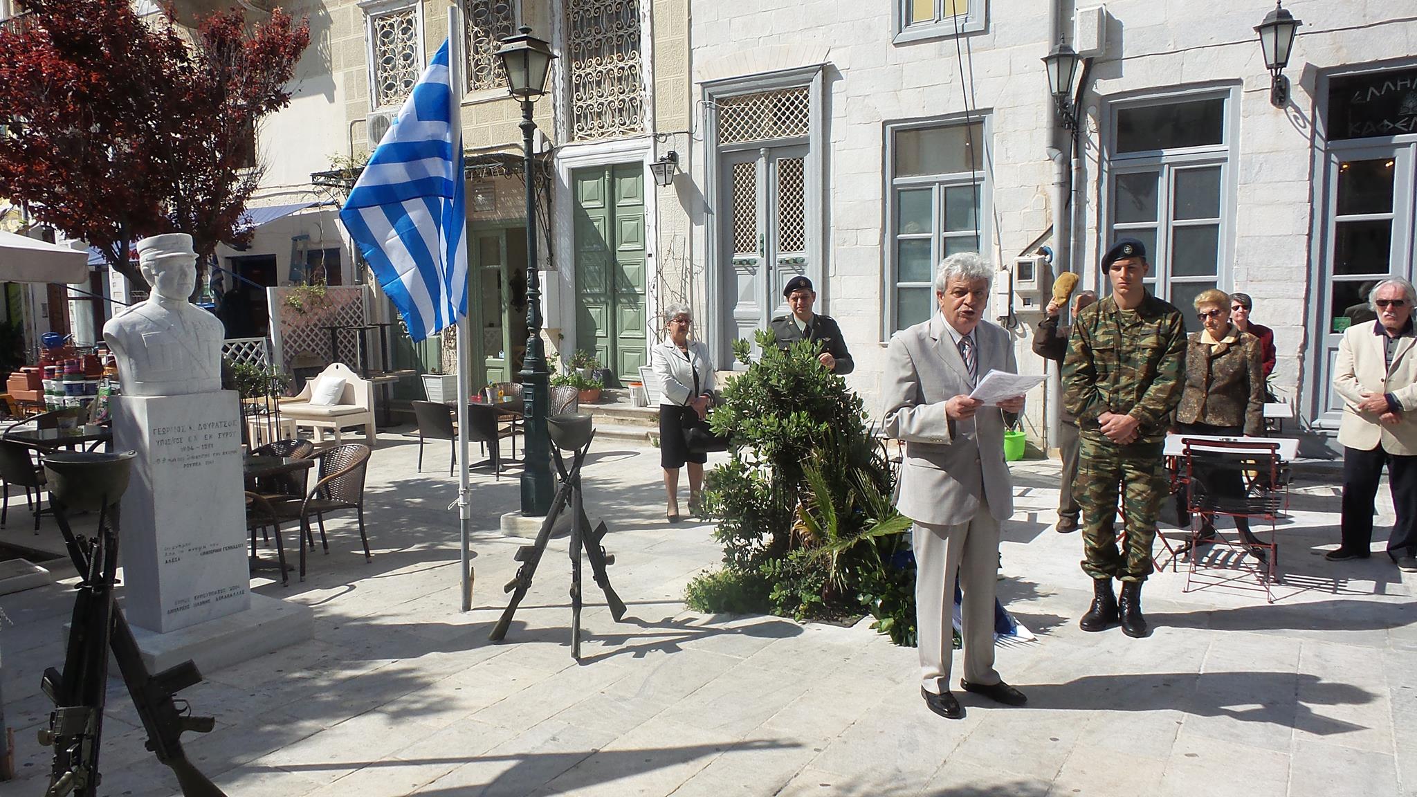Στη σημασία της επετείου, καθώς και στους αγώνες όλων αυτών των ηρώων, που με αυτοθυσία και αυταπάρνηση έχασαν τη ζωή τους στη μάχη, αλλά κέρδισαν την αθανασία για να ζούμε σήμερα ελεύθερα, υπερήφανα και δημοκρατικά μίλησε ο ε.α. αντισυνταγματάρχης κ. Δημήτρης Μαϊτός, μετά το πέρας της επιμνημόσυνης δέησης.