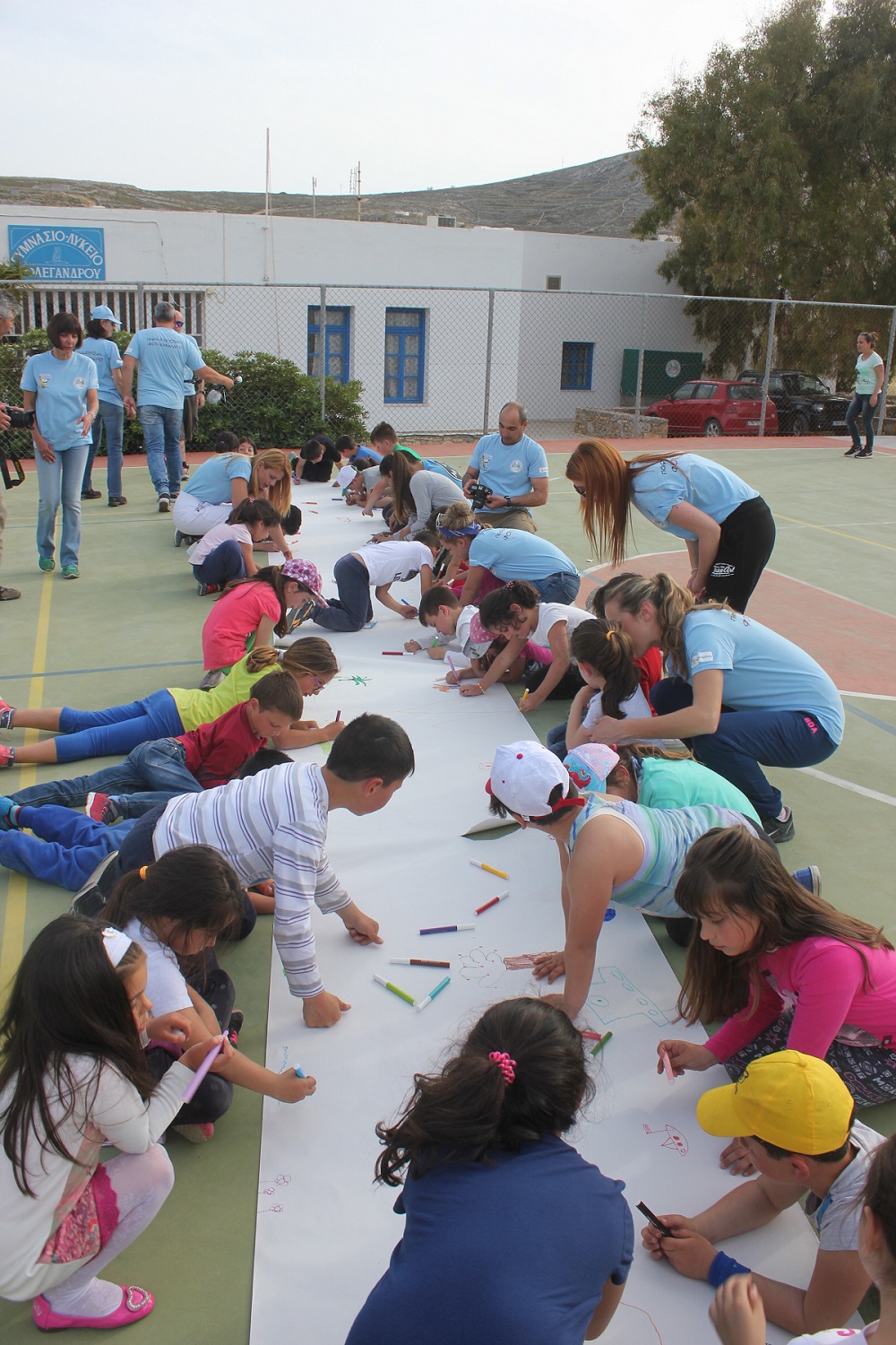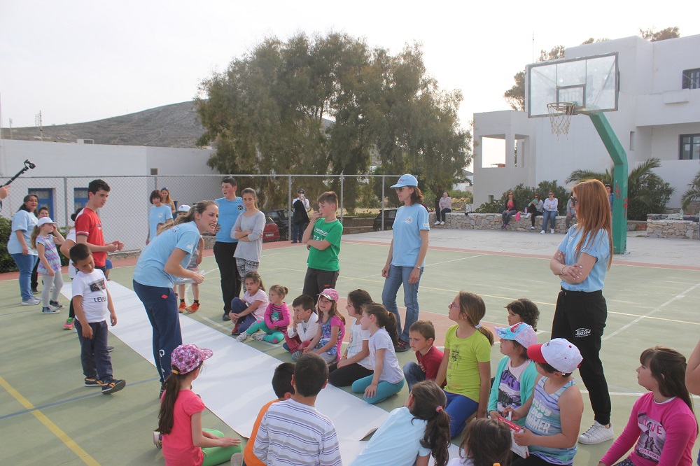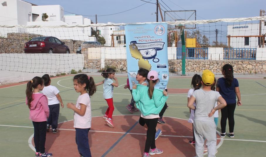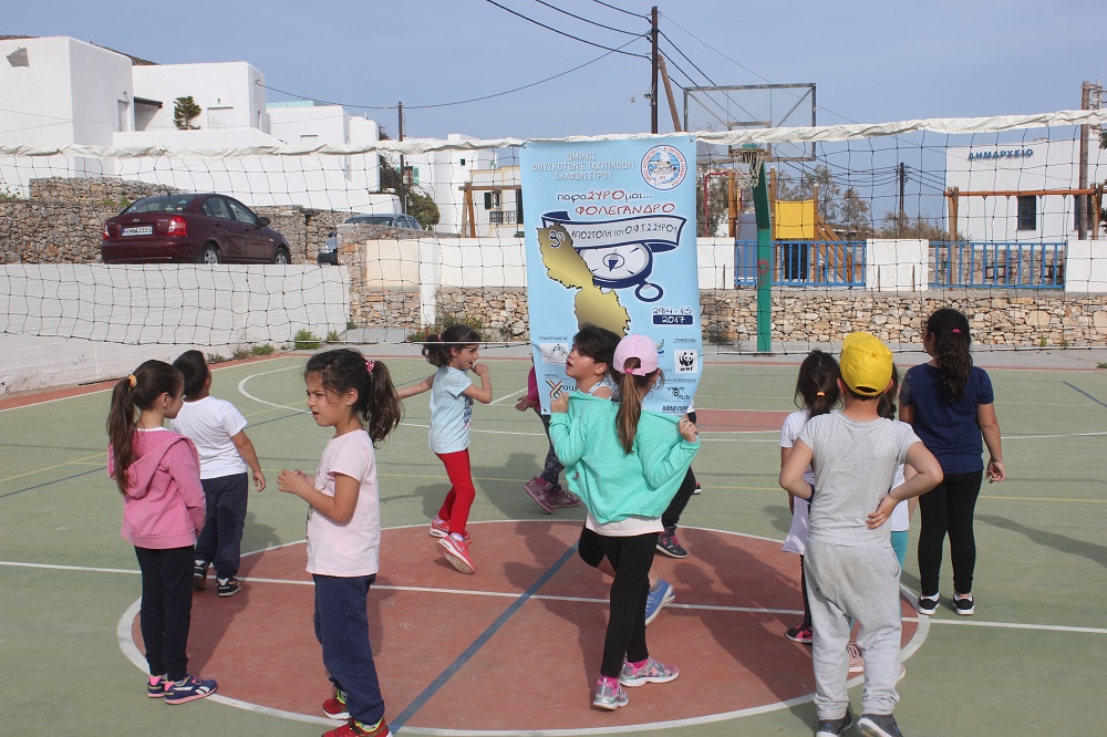 Λίγο αργότερα, στο Γήπεδο μπάσκετ, στο προαύλιο Γυμνασίου – Λυκείου Φολεγάνδρου πραγματοποιήθηκε η παιδαγωγική δράση «Το παράσημο της αγάπης» με υπεύθυνη την Χριστίνα Πρίντεζη. Περισσότερα από 35 παιδιά παρακολούθησαν μία θαλασσινή, διαδραστική ιστορία, βασισμένη στην προστασία της θάλασσας και τη σημασία της προσφοράς και της ομαδικότητας.