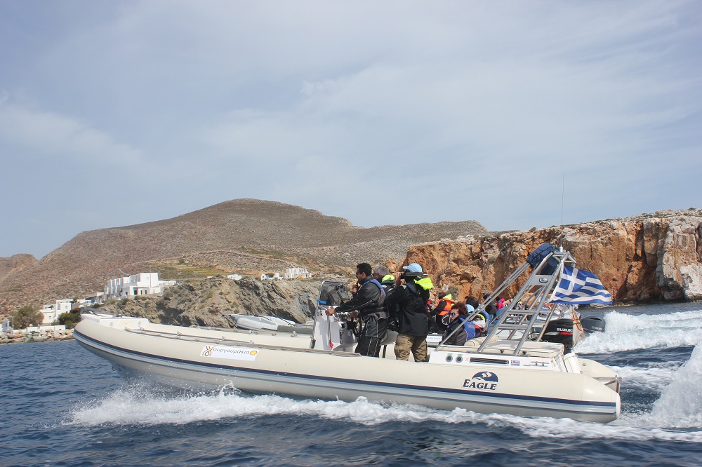 Θερμή υποδοχή επεφύλαξαν μικροί και μεγάλοι κάτοικοι της Φολεγάνδρου στα μέλη του Ομίλου Φουσκωτών και Ταχυπλόων Σκαφών Σύρου, που το πρωί του Σαββάτου «άναψε» τις μηχανές του για την καθιερωμένη ανοιξιάτικη αποστολή του στα καταγάλανα νερά του Αιγαίου.