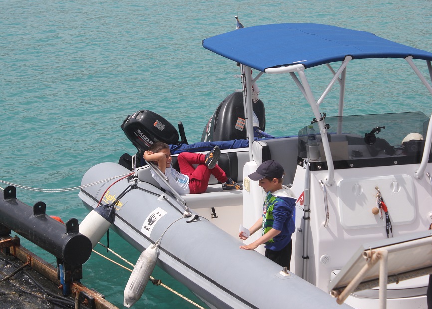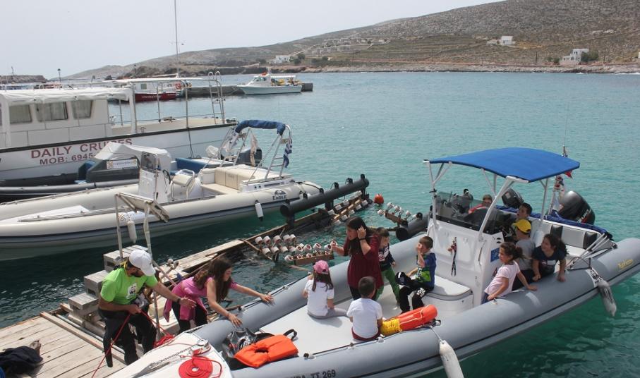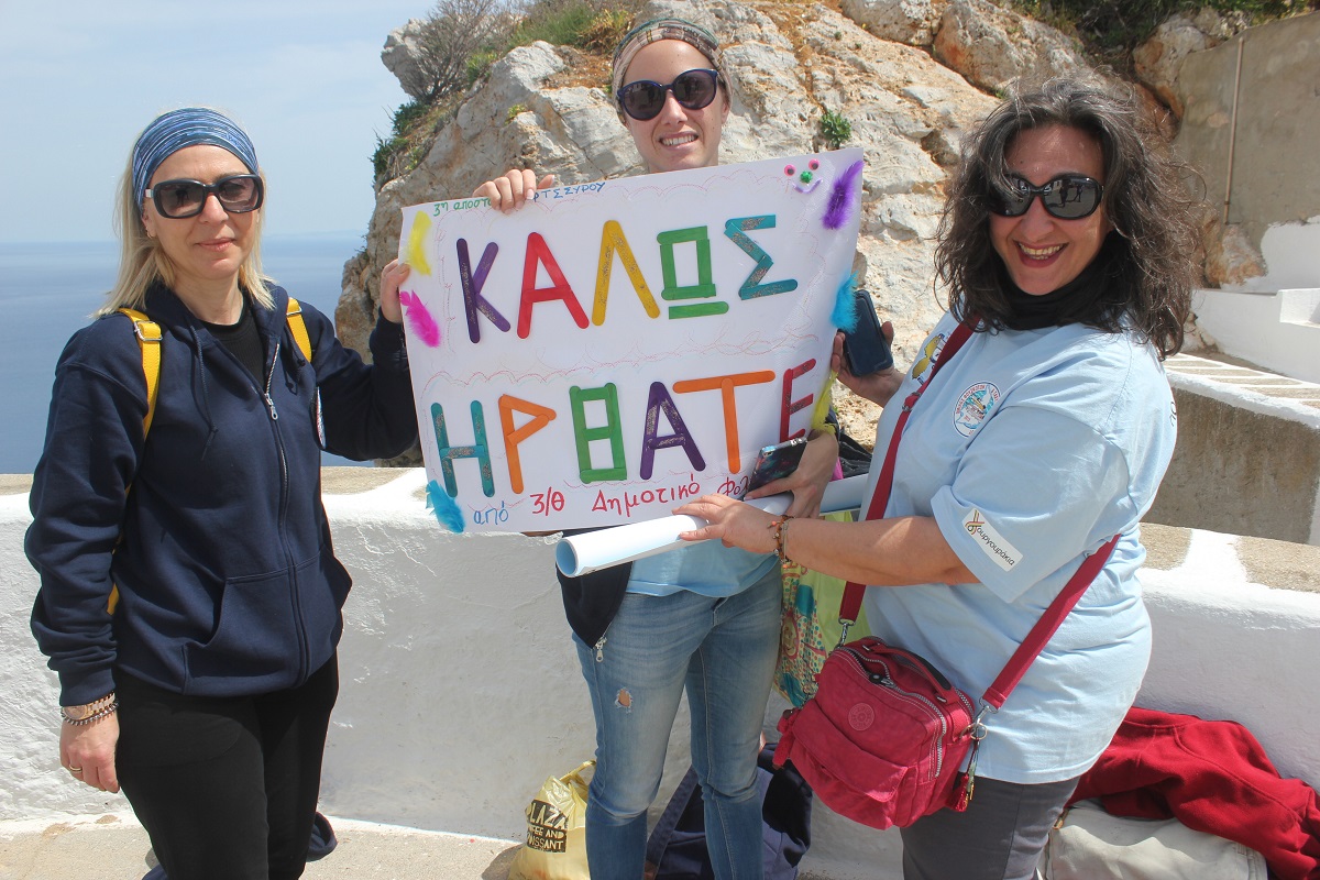 Λίγο πριν τις 11, μαθητές του τριθέσιου Δημοτικού Σχολείου Φολεγάνδρου, συνοδευόμενοι από εκπαιδευτικούς και γονείς, καλωσόρισαν τα πληρώματα στο λιμάνι του νησιού, χαρίζοντας τους απλόχερα χαμόγελα, αγκαλιές και ένα όμορφο πανό, το οποίο παρέλαβε η υπεύθυνη των παιδαγωγικών δράσεων, Χριστίνα Πρίντεζη.